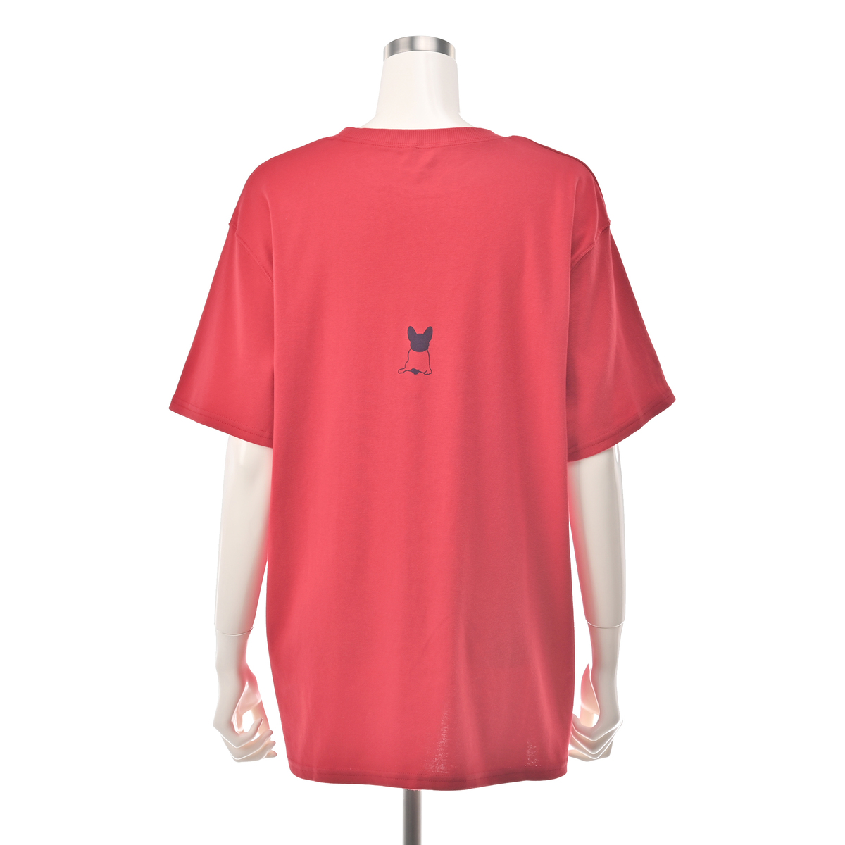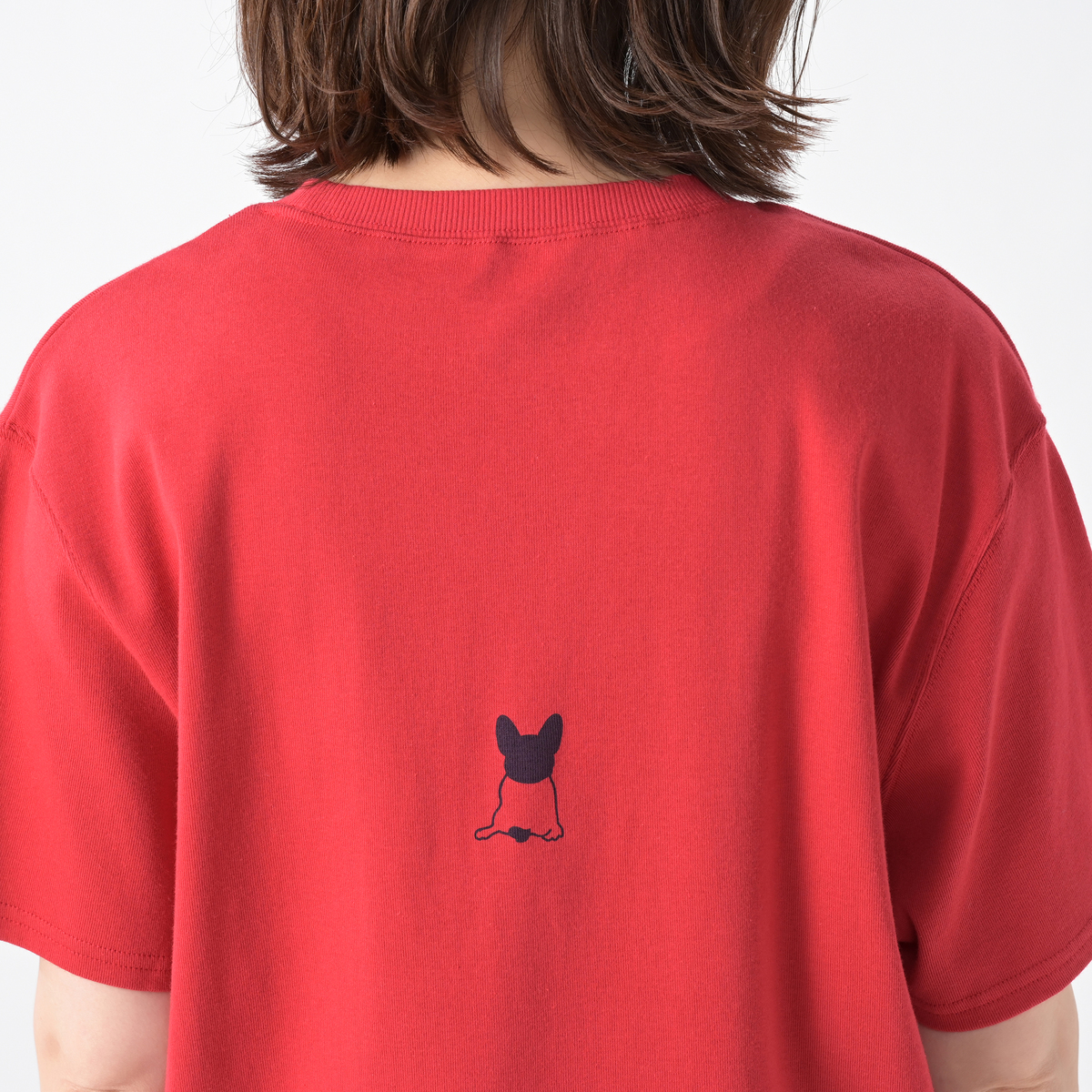 ちょこんとお座りしているホット君のプリントTシャツ。後ろ身頃にもホット君の哀愁のある背中プリントを入れたデザインです。着丈が長めでユニセックス使いもできるベーシックなクルーネック半袖Tシャツです