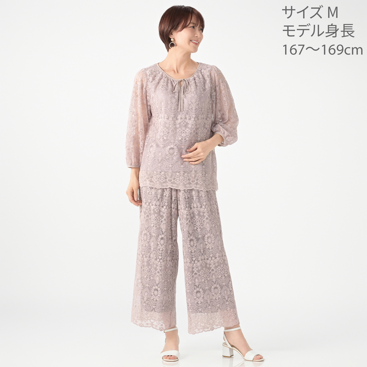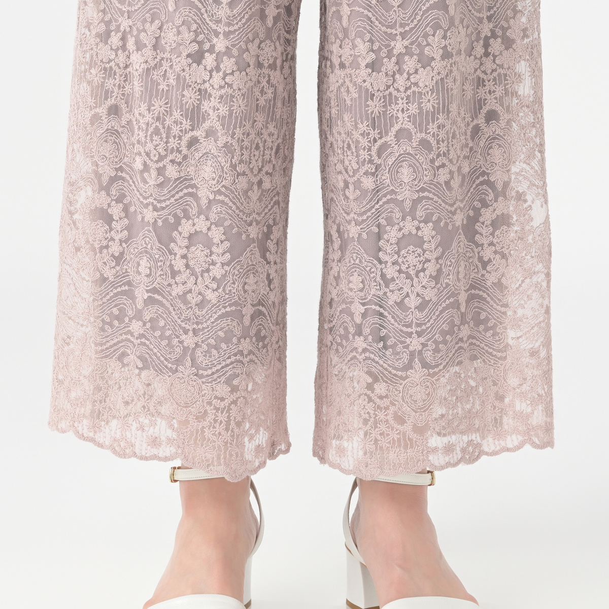 刺繍の立体感が高見えするレース素材を使用したセミワイドパンツです。小花柄のエンブロイダリーレースが華やかさを引き立て、派手すぎない上品な大人の可愛さを演出。程よい落ち感で脚のラインを拾いにくく、脚長効果が期待できます