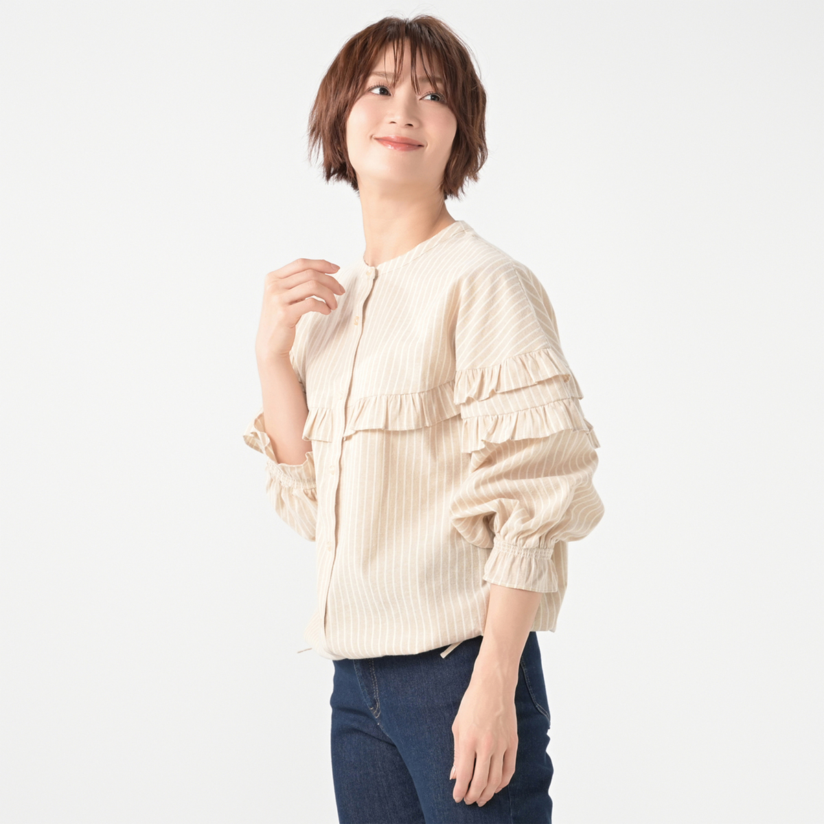 No. 741558 &LOVE 甘フェミニンなストライプふりるシャツブラウス