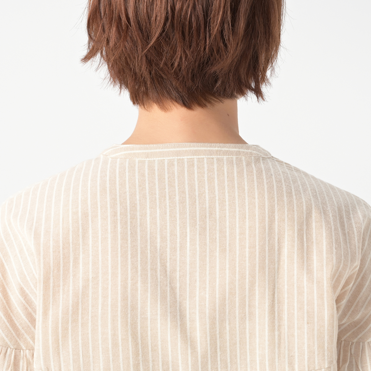 待ってました こういうの 先染めの糸 ストライプ 綿織 大人の上品漂うお洒落 &LOVEは綿があまりないし普段プリントのPUで体が痛い のに対し こちらは&LOVEのフリルやリボン を上手に取り入れながらもカラーは押さえ目で ブラウスにも羽織りにも 腕まくりをするとポワン袖が女子力アップする一着 綿織は体に優しい T-SHIRT プルオーバーとか綿織で沢山だして欲しいです