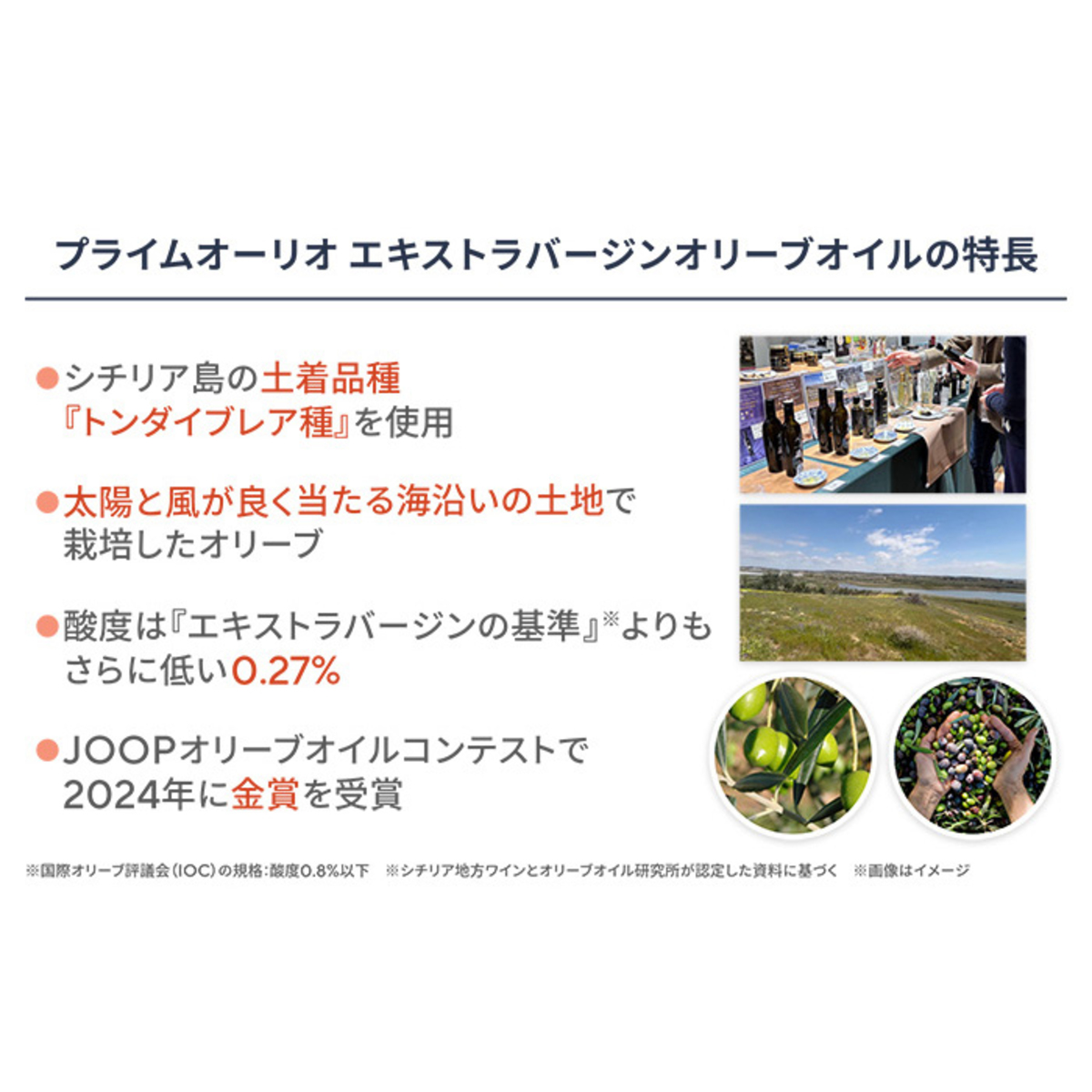2024年JOOPオリーブオイルコンテスト*で金賞を受賞。イタリア料理店のピッツェリア&バール リオーネでも使用されています