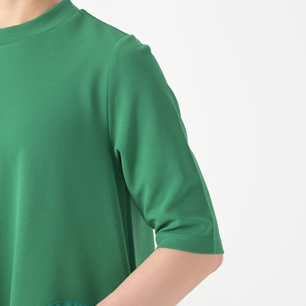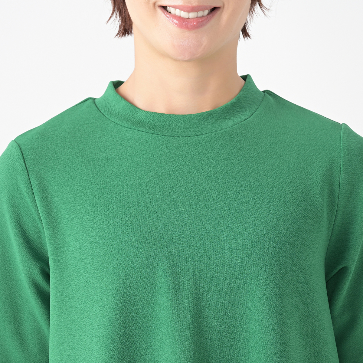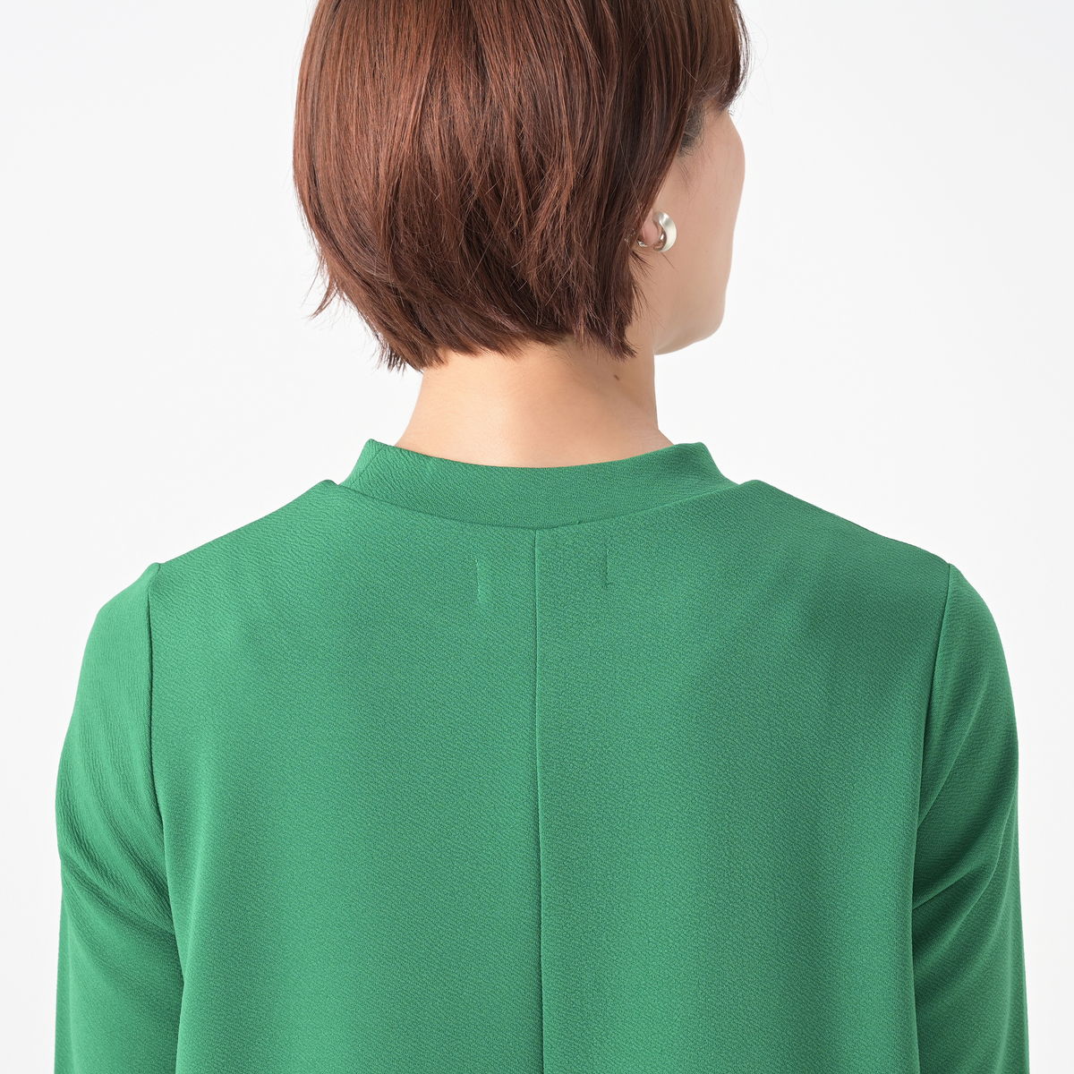 [商品寸法(ヌード)cm] サイズ バスト 着丈 S: 95(73〜81) 103.5 M: 100(79〜87) 105 L: 106(85〜93) 106.5 LL: 112(91〜99) 108 3L: 118(97〜105) 109.5 サイズ 肩幅 袖丈 ウエスト ヒップ S: 35 31.5 (62〜68) (81〜87) M: 36 32 (66〜72) (85〜91) L: 37 32.5 (70〜76) (89〜95) LL: 38 33 (74〜80) (93〜99) 3L: 39 33.5 (78〜84) (97〜103) [素材] 本体:ポリエステル99% ポリウレタン1% 別布:レーヨン45% ナイロン45% ポリウレタン10% [お手入れ] 洗濯機洗い可 [注意事項] ※商品寸法の誤差は多少発生します。ご了承下さい ※洗濯後は重ね置きしないで下さい ※洗濯後はすぐに脱水し、形を整えて干して下さい。長時間、水につけたままにしないで下さい ※素材の特性上、着用や洗濯・クリーニング時の摩擦により毛羽立ち、毛玉が発生します。その際はお早めに毛玉取り器等で手入れをして下さい ※直射日光や蛍光灯の影響で変色することがありますのでご了承下さい ※濃色製品は着用中の摩擦により色移りすることがあります。また、雨や汗等で濡れた状態で着用すると色移りすることがあります。その際はお早めに洗濯をして下さい ※洗濯やクリーニングにより徐々に色あせします。また、色落ちすることがありますので、他の物と分けて洗って下さい ※洗濯の際は裏返しにし、洗濯ネットを使用して下さい 【中国製】