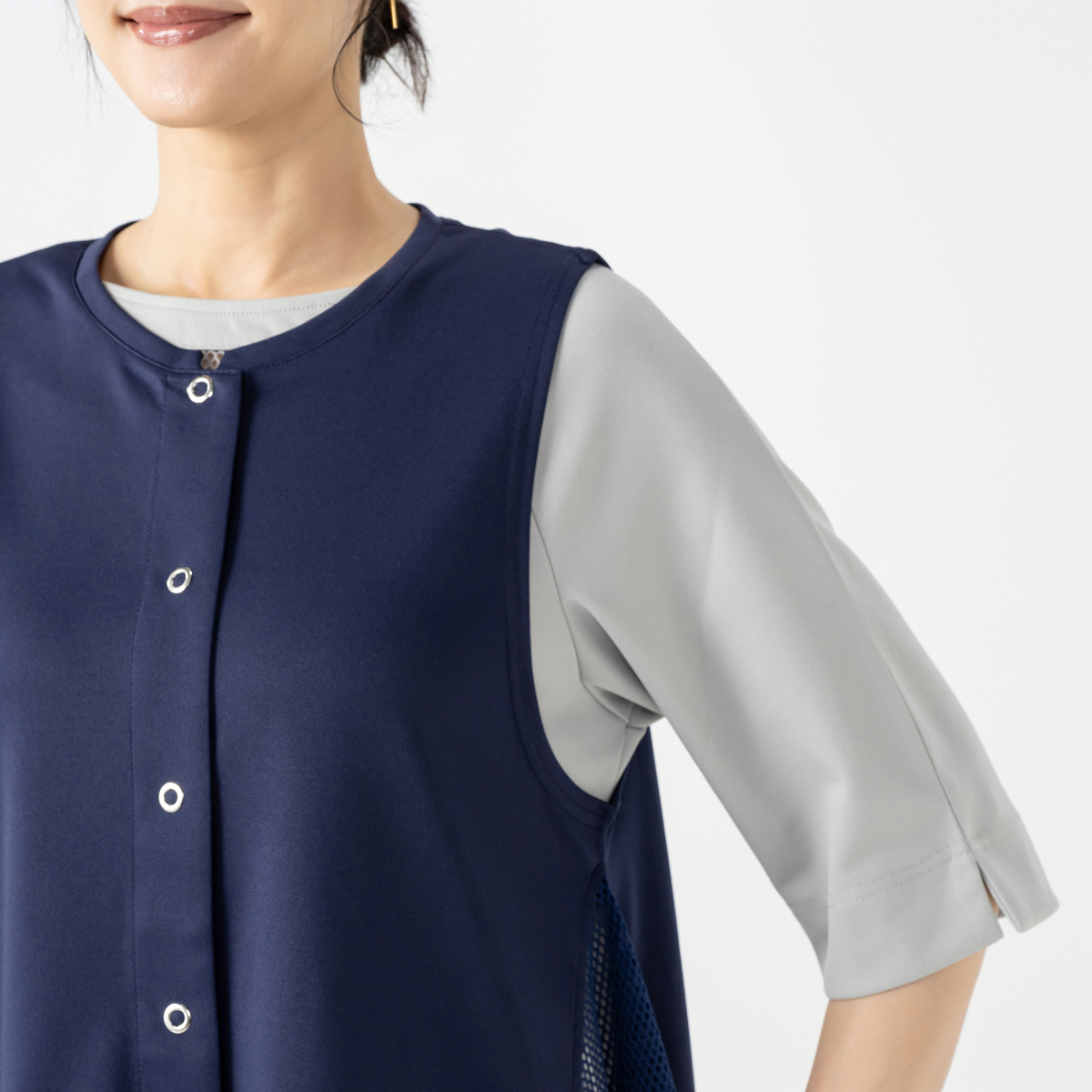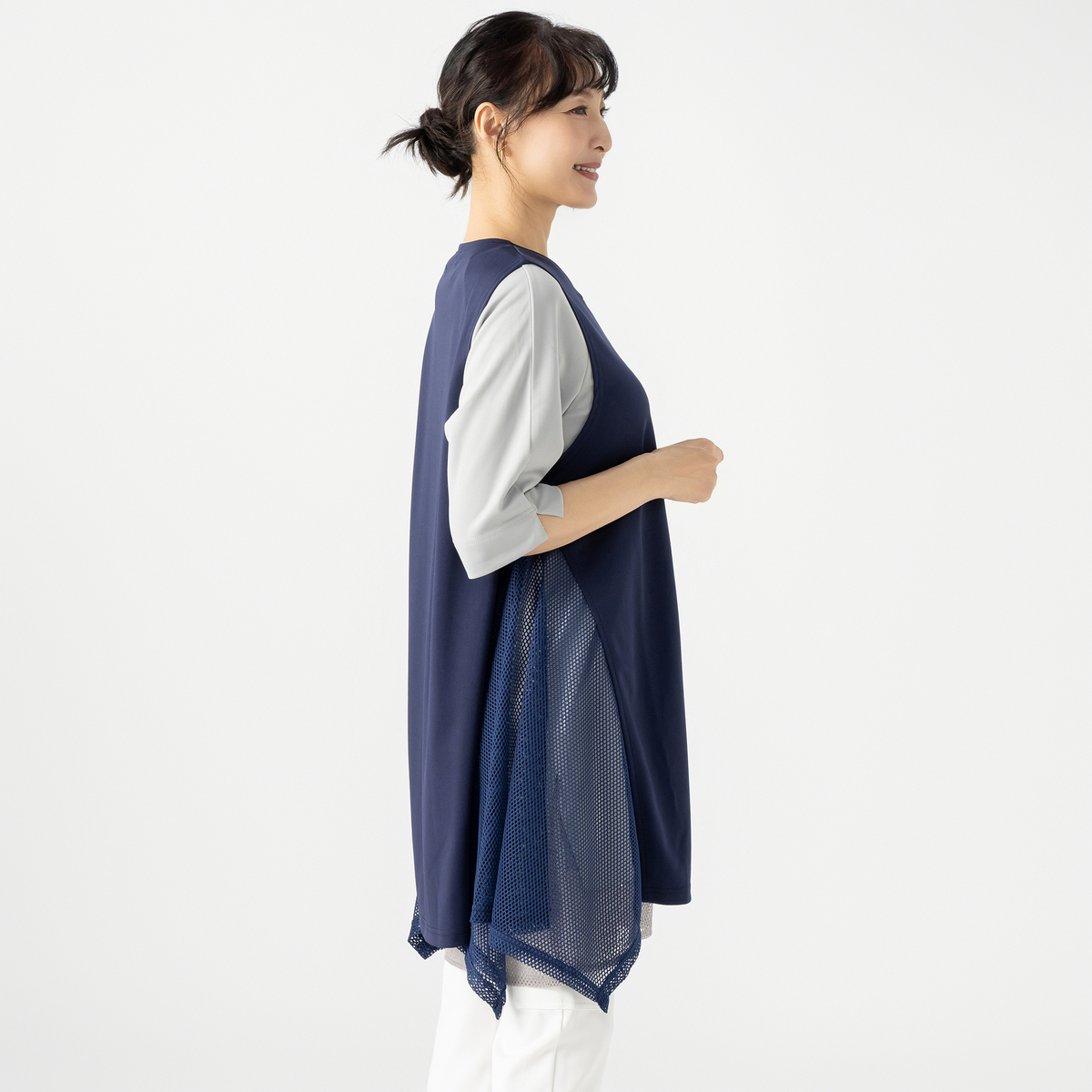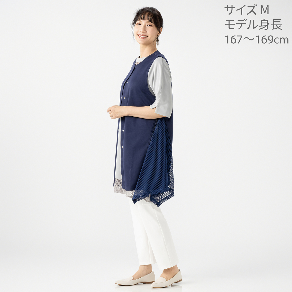 No. 741629 day to day イレギュラーヘムメッシュ切替ジレ