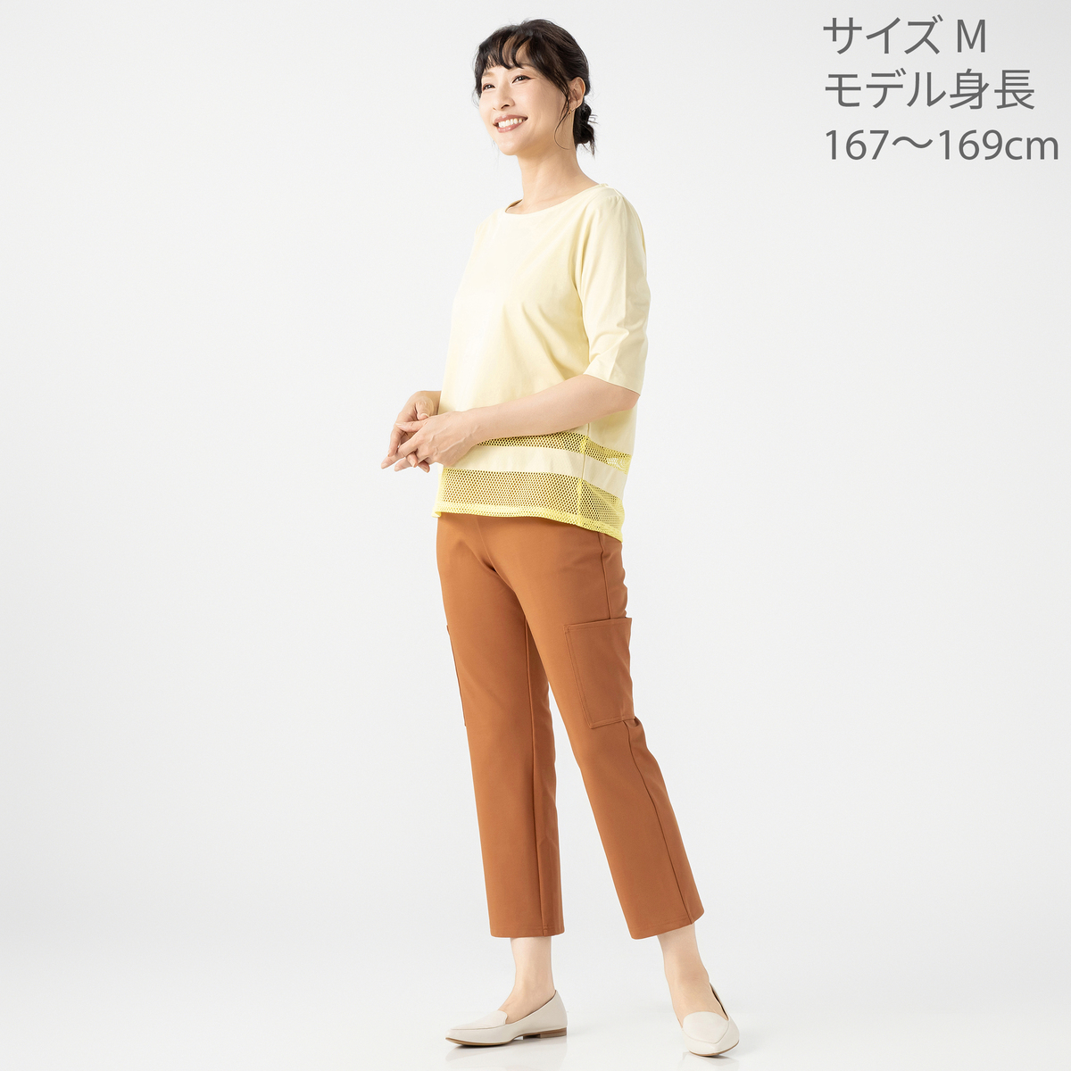 大人仕様のカーゴ風ストレートパンツ。すっきりしたシルエットで洗練された印象に仕上げました。カジュアルな装いにも、きれいめなコーディネートにも活躍してくれます
