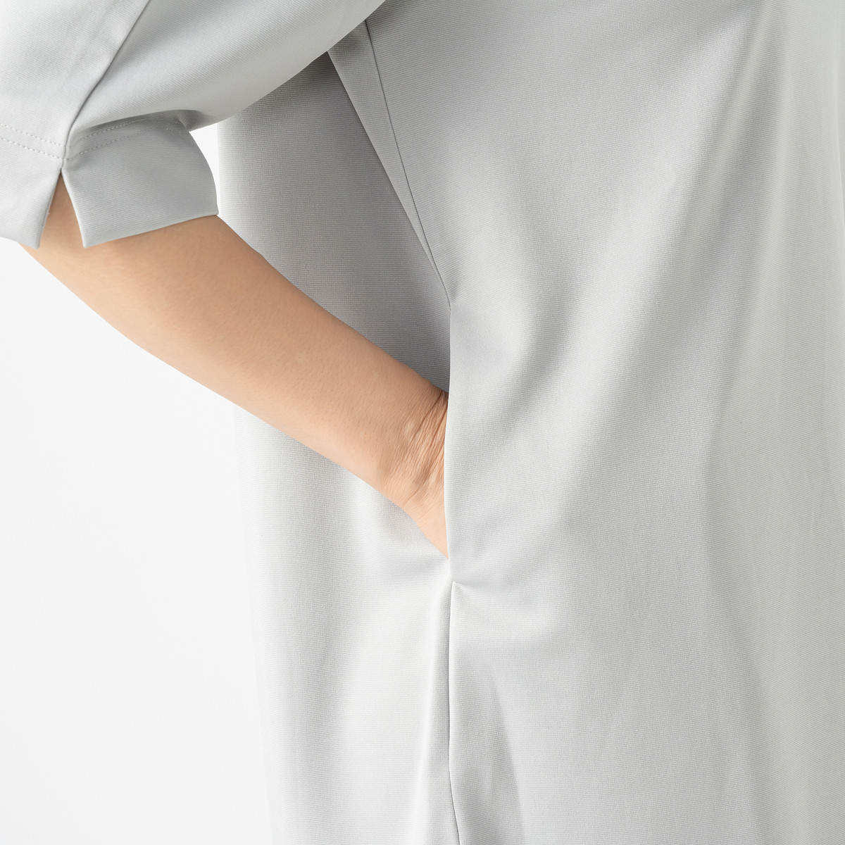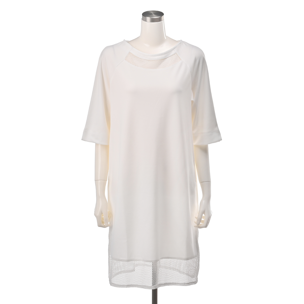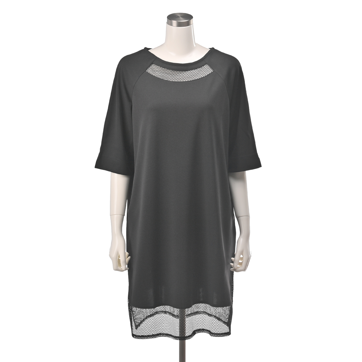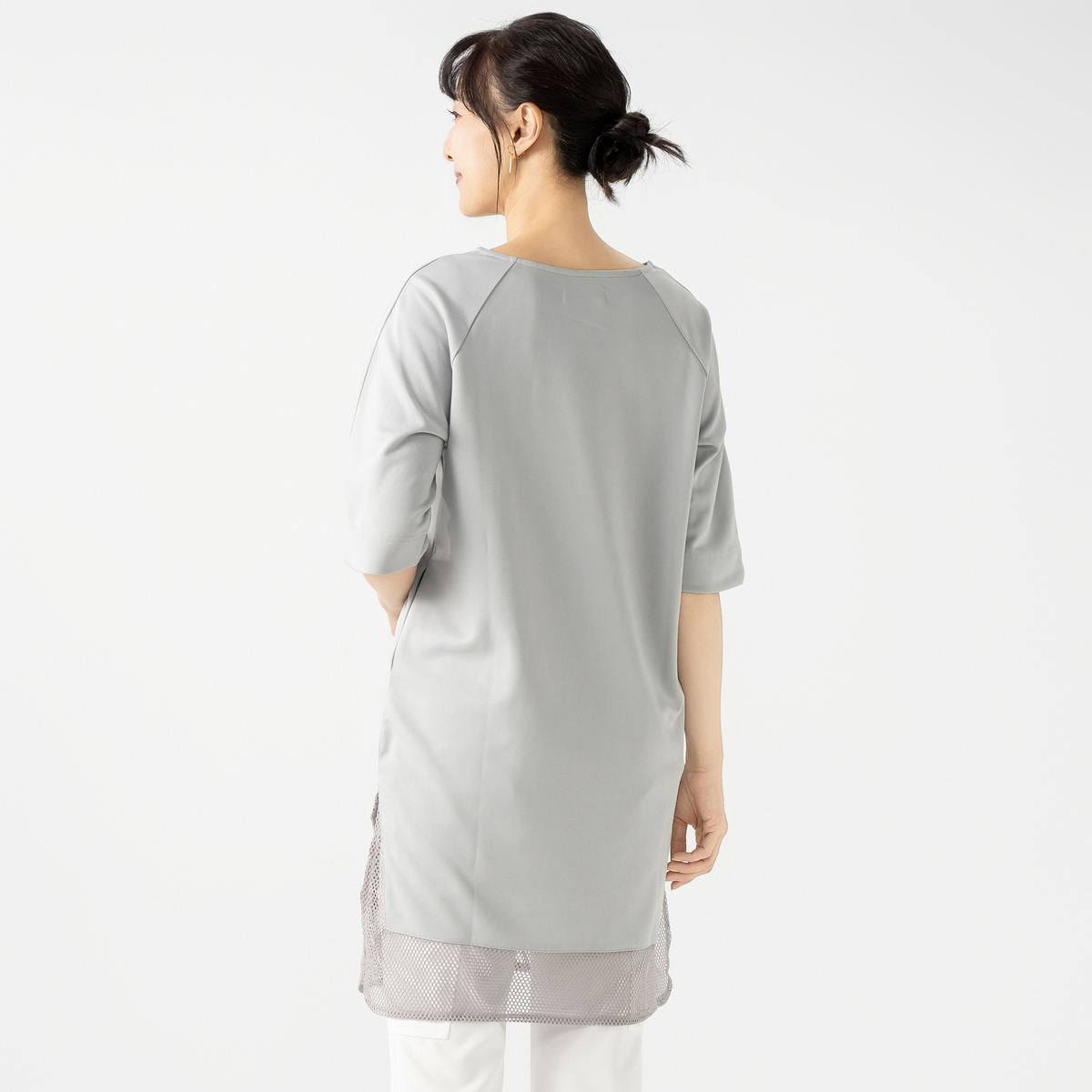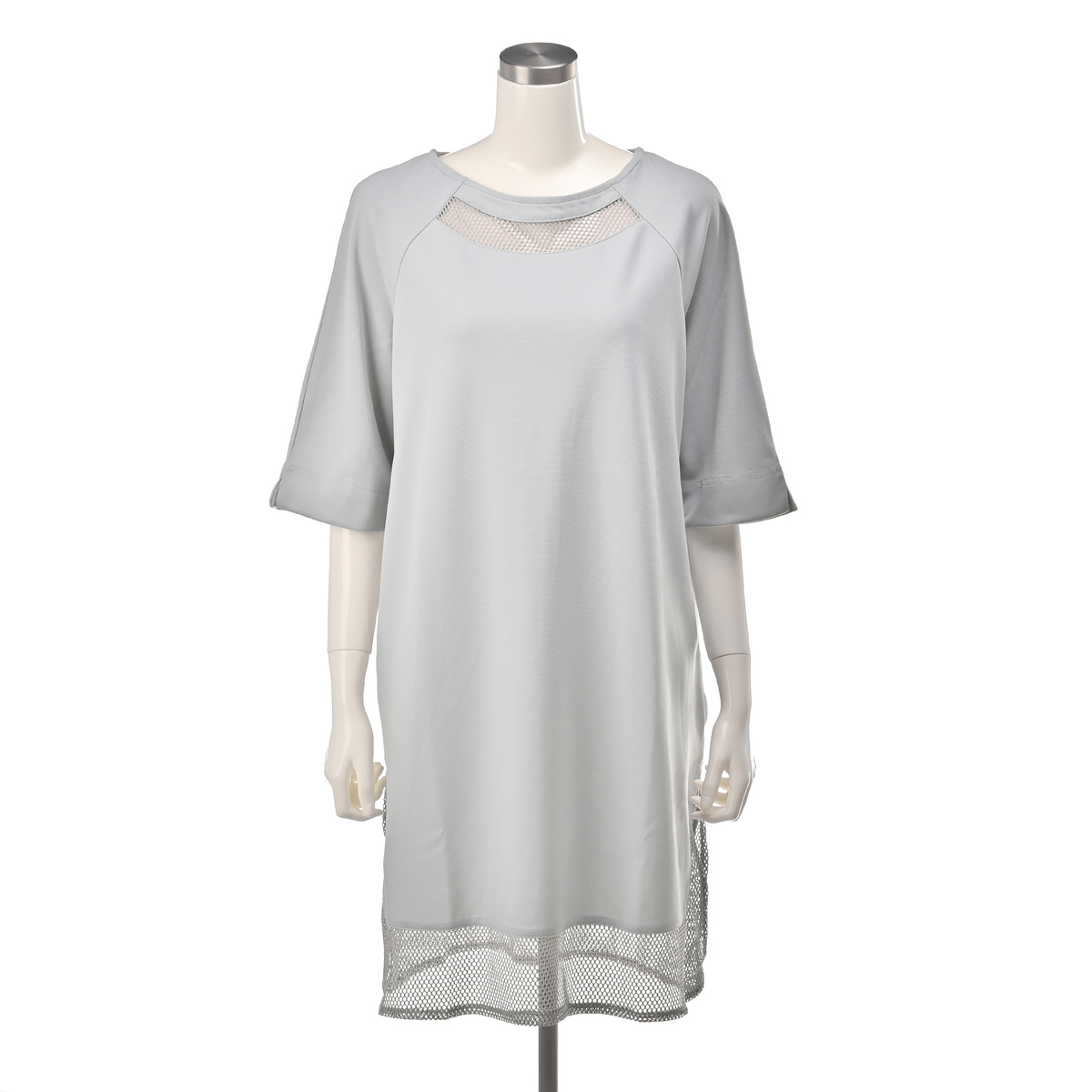衿ぐり部分、裾をメッシュで切替えた、チュニックワンピース。スポーティーな素材をエレガントに仕上げました