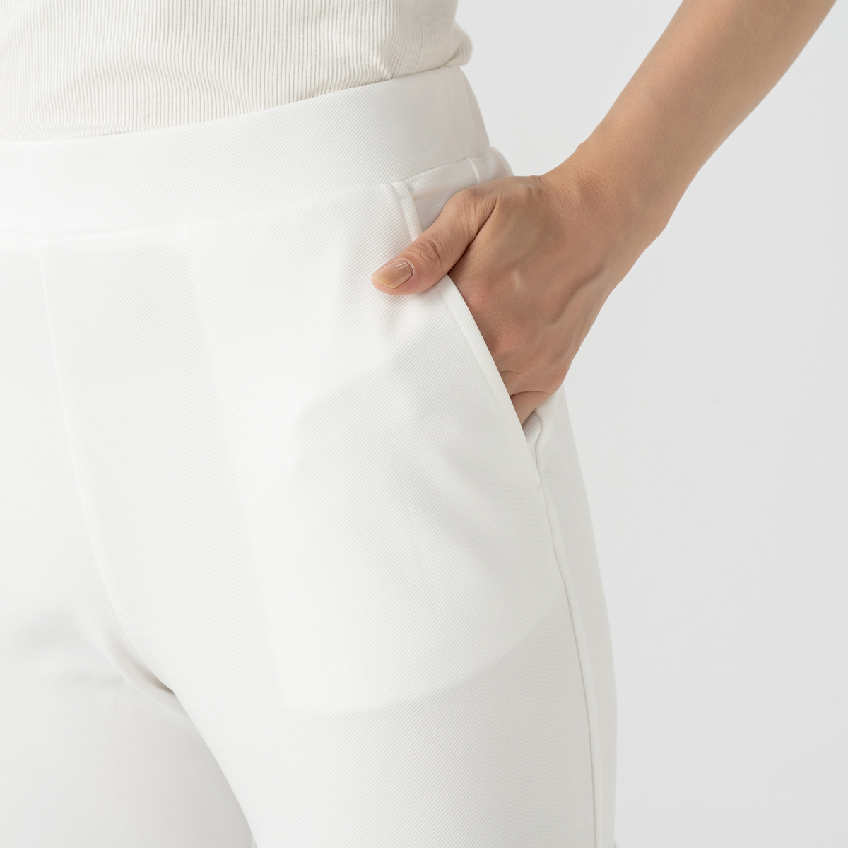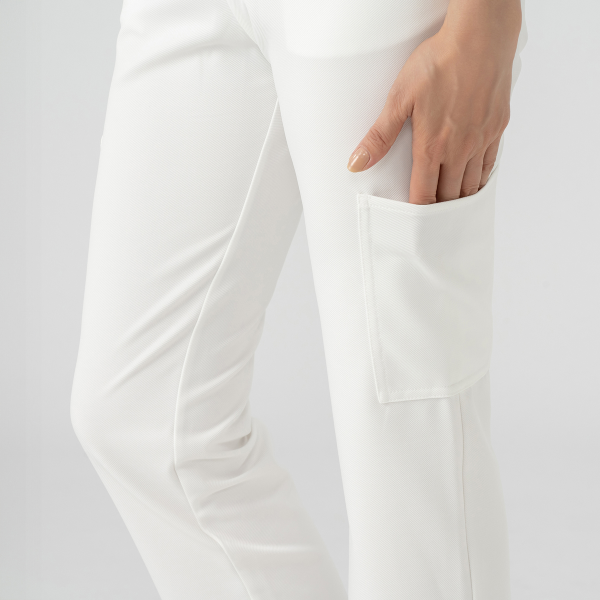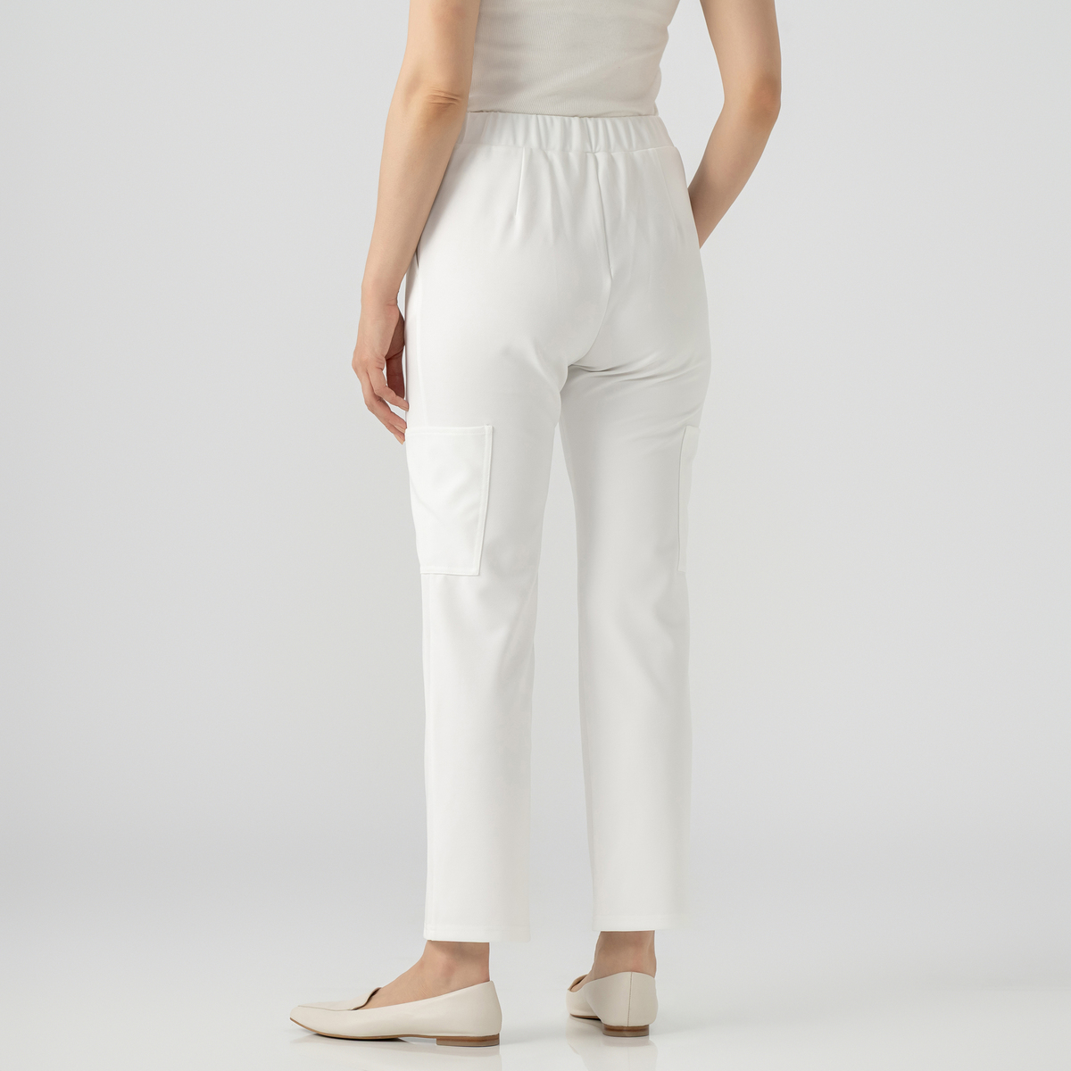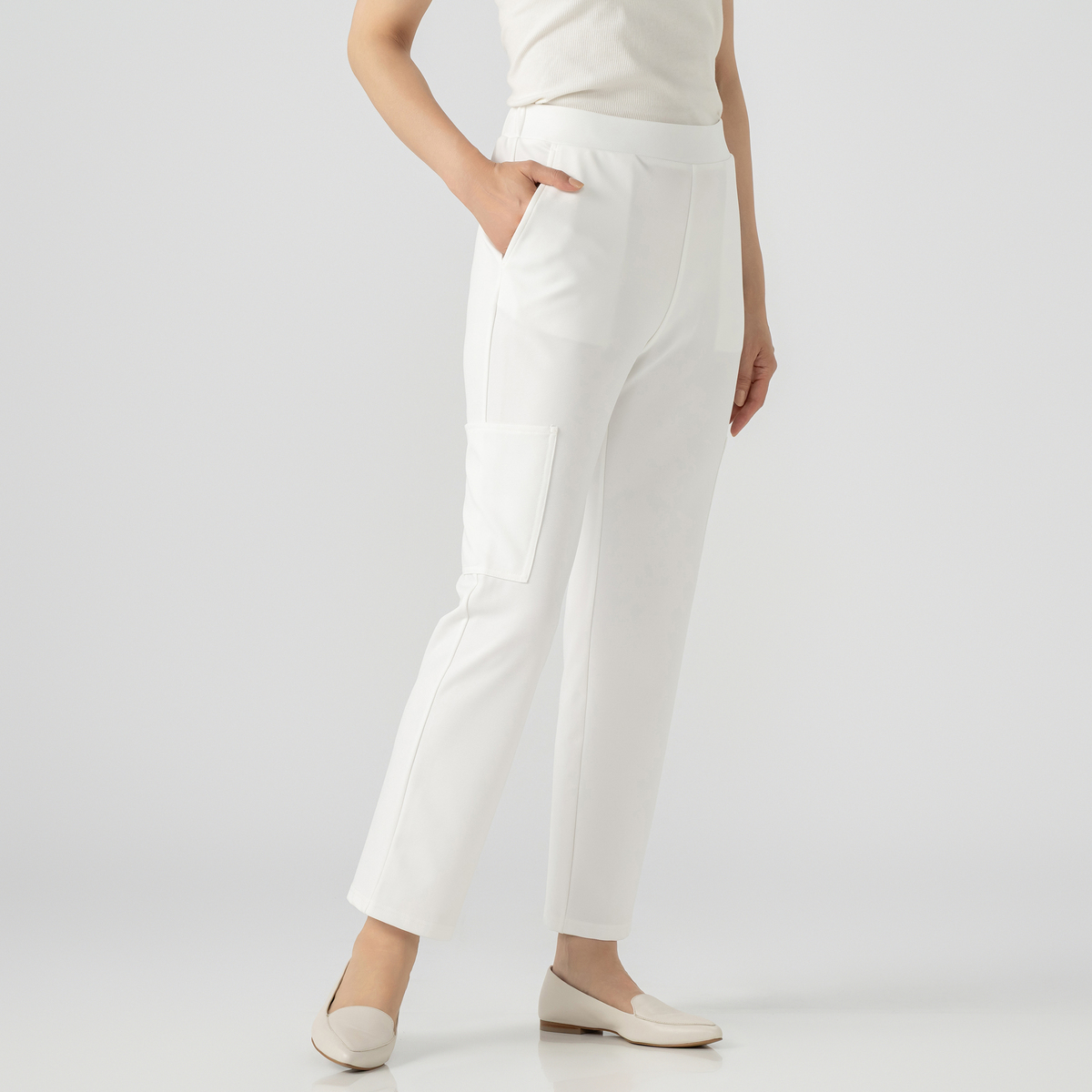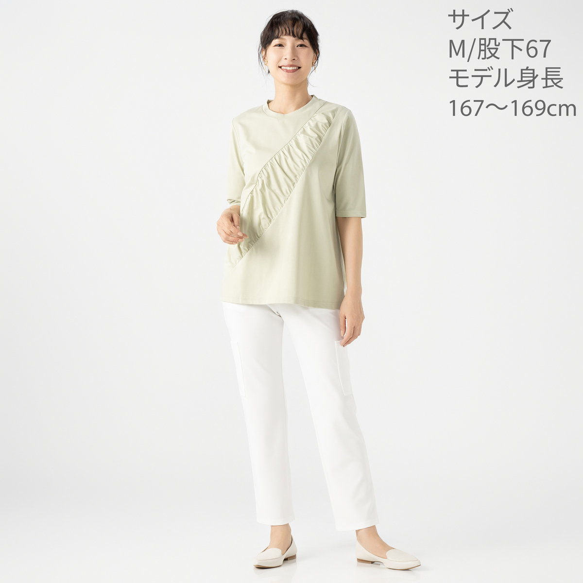 すっきりとしてエレガントなカーゴ風パンツです。カジュアルな要素を取り入れつつ、品のあるシルエットで大人の着こなしに自然になじみます