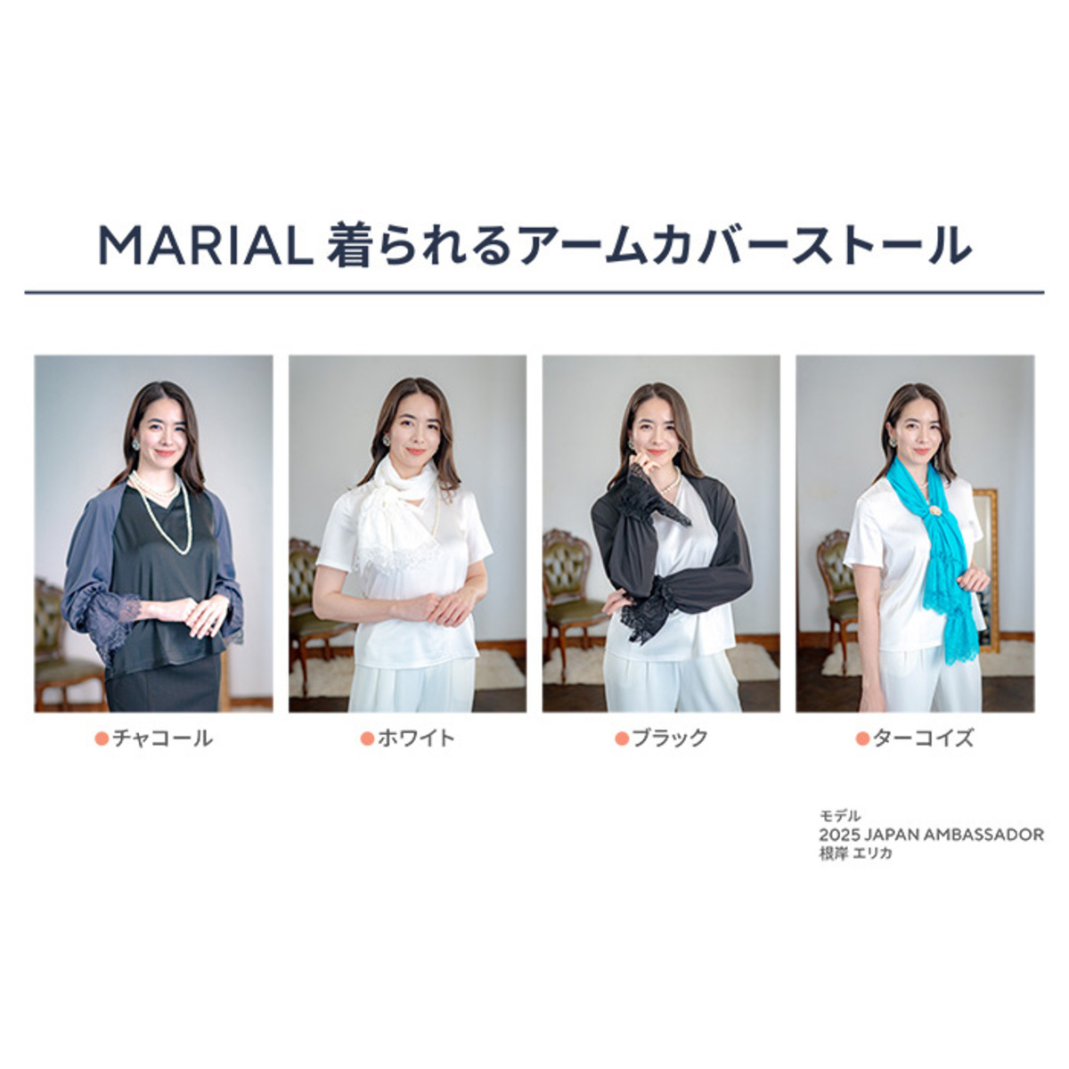 通常、両腕に別々に装着するアームカーバーがウェアラブルに。ストールとしても使える2WAY仕様で、腕を紫外線からプロテクトするだけでなく、首元もUVカット。乗り物内やレストラン、劇場や百貨店などで羽織モノとして着たり、首に巻いたり、様々なシーンで重宝します