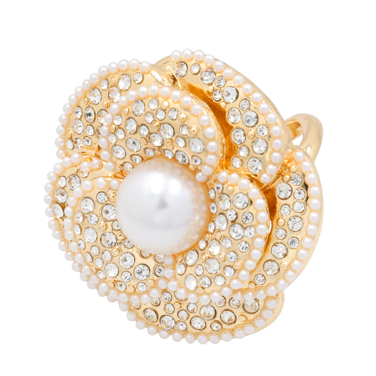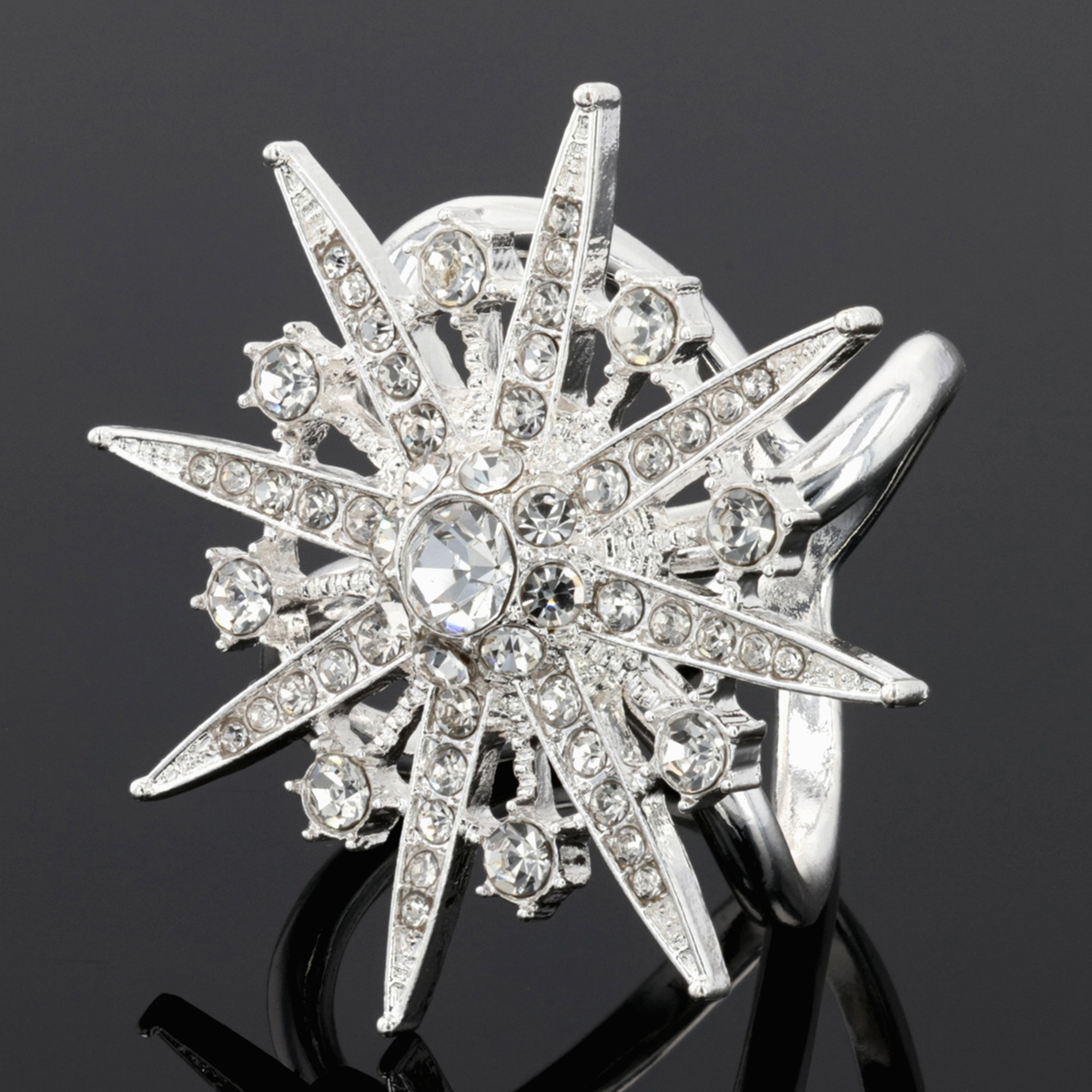 [サイズ(約)] 幅4×高さ4cm [重量] 約40g [素材] 土台:合金 ストーン:ガラス/アクリル [注意事項] ※スカーフ・ストール等を通す際は無理な負荷がかからないようにご注意ください ※滑りやすい素材や生地の厚さによっては外れる場合がございますのでご注意ください ※本品はガラスを使用しており大変繊細な作りになっておりますので、強い衝撃を与えないようご注意ください。また、商品に割れが生じた場合は使用をおやめください ※金属アレルギーの方は使用しないでください。皮膚に異常を感じた際は直ちに使用を止め、専門医にご相談ください ※ご使用時にはスカーフや衣服との摩擦や引っ掛けにご注意ください ※本品が汚れた場合は乾いた柔らかい布でふき取ってください 【中国製】