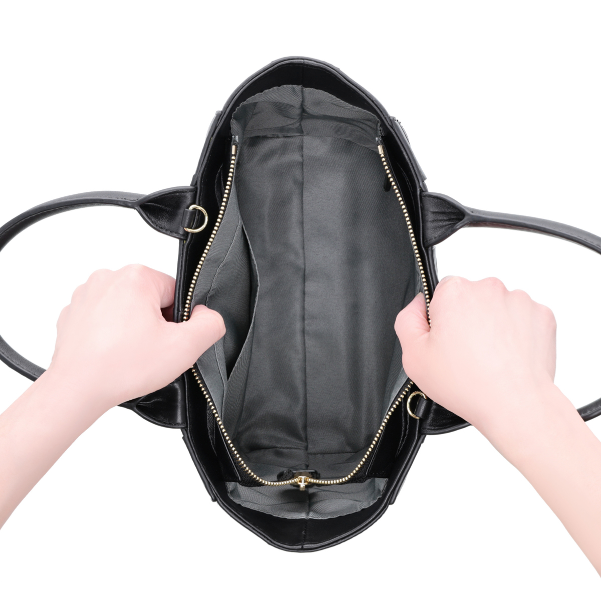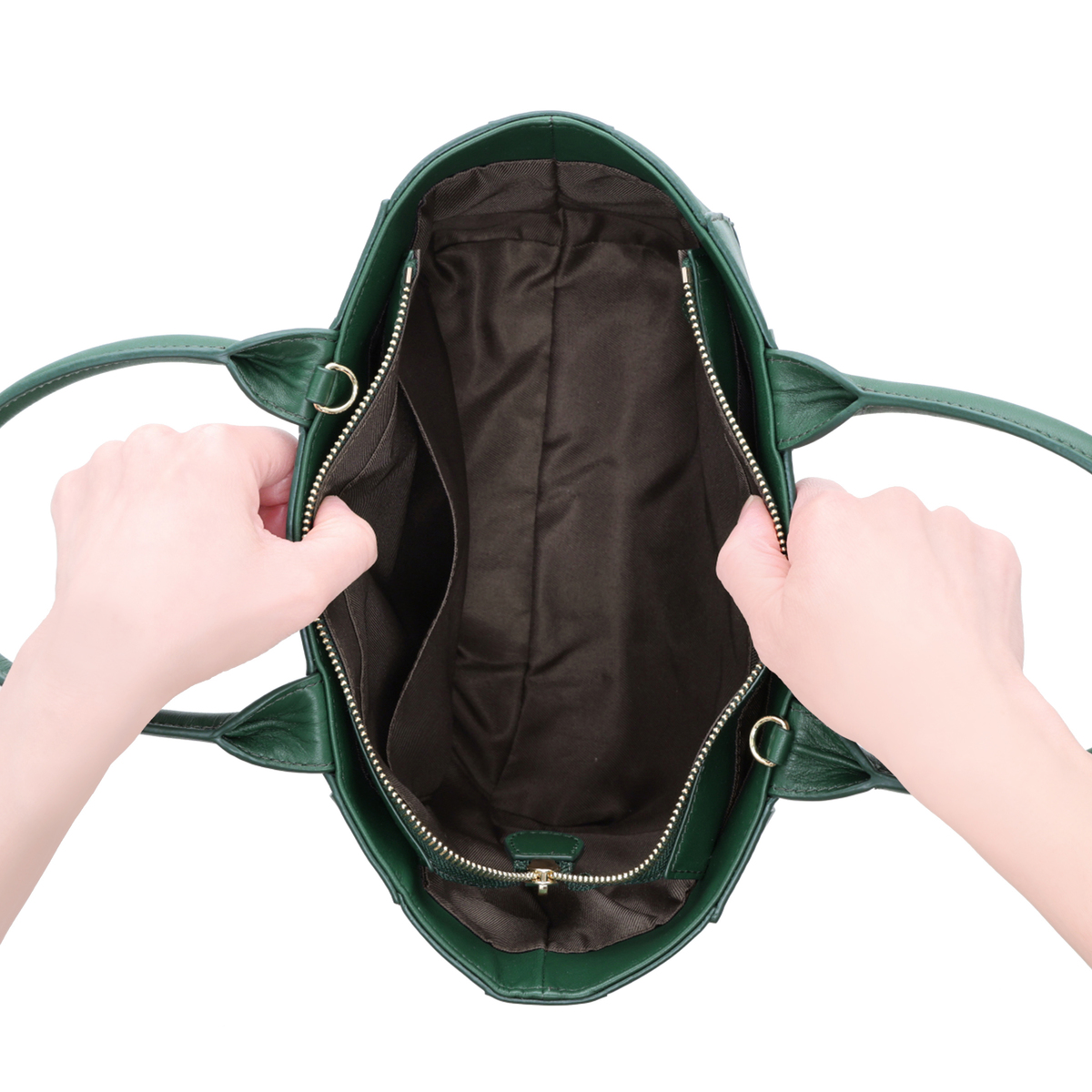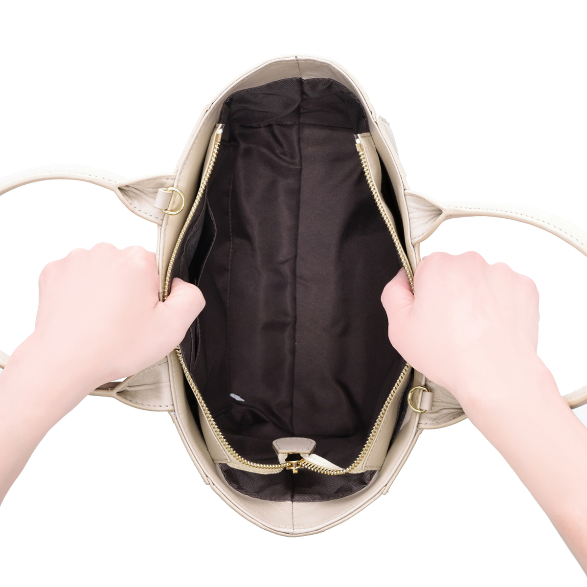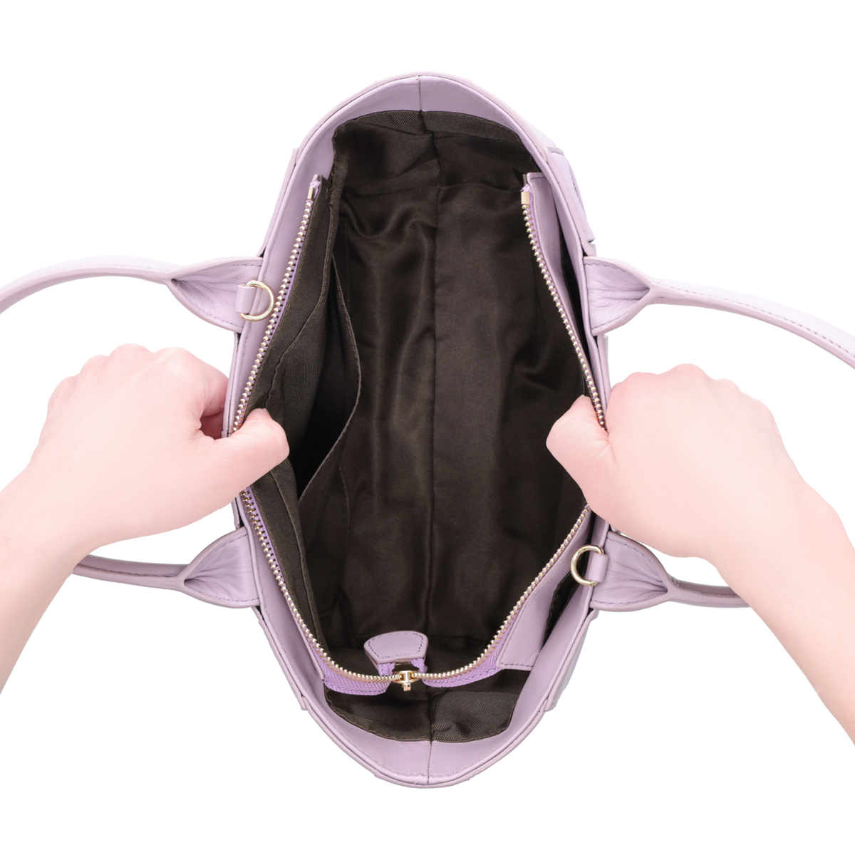 [サイズ(約)] 縦21.5×横33(上部)24(下部)×マチ9cm ハンドル立ち上がり:13.5cm ショルダー立ち上がり:55〜60cm [重量(約)]※付属品含む 490g [素材] 表地:羊革 裏地:ポリエステル [仕様] 付属(取り外し可):ショルダー×1 開閉:ファスナー式 底ビョウ:有 [ポケット] 内側:あおりポケット×2 ファスナーポケット×1 オープンポケット×1 外側:無 【ベトナム製】