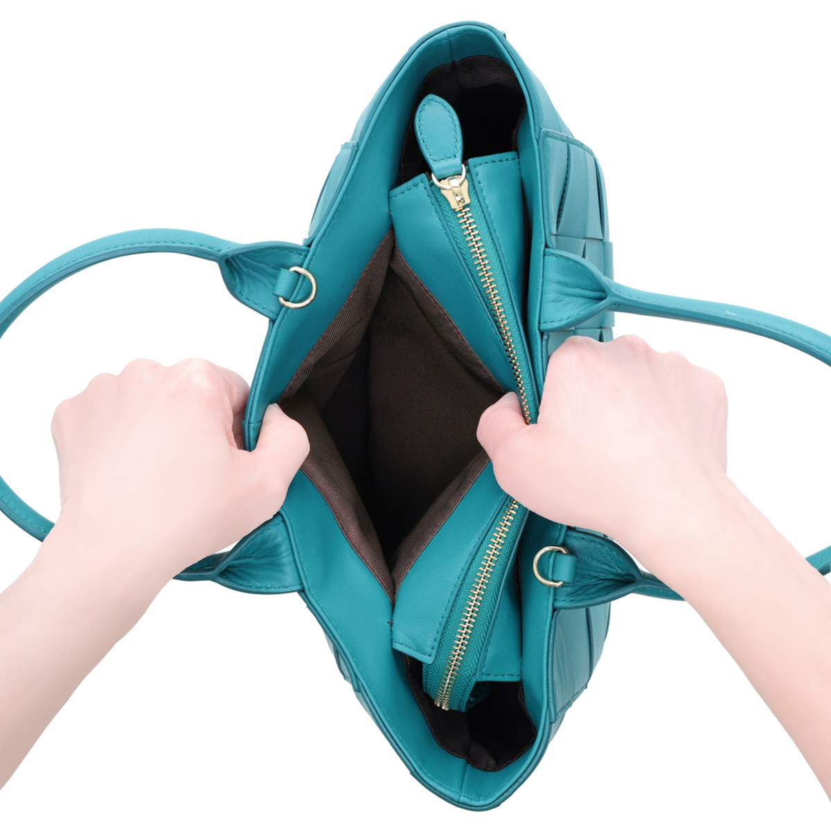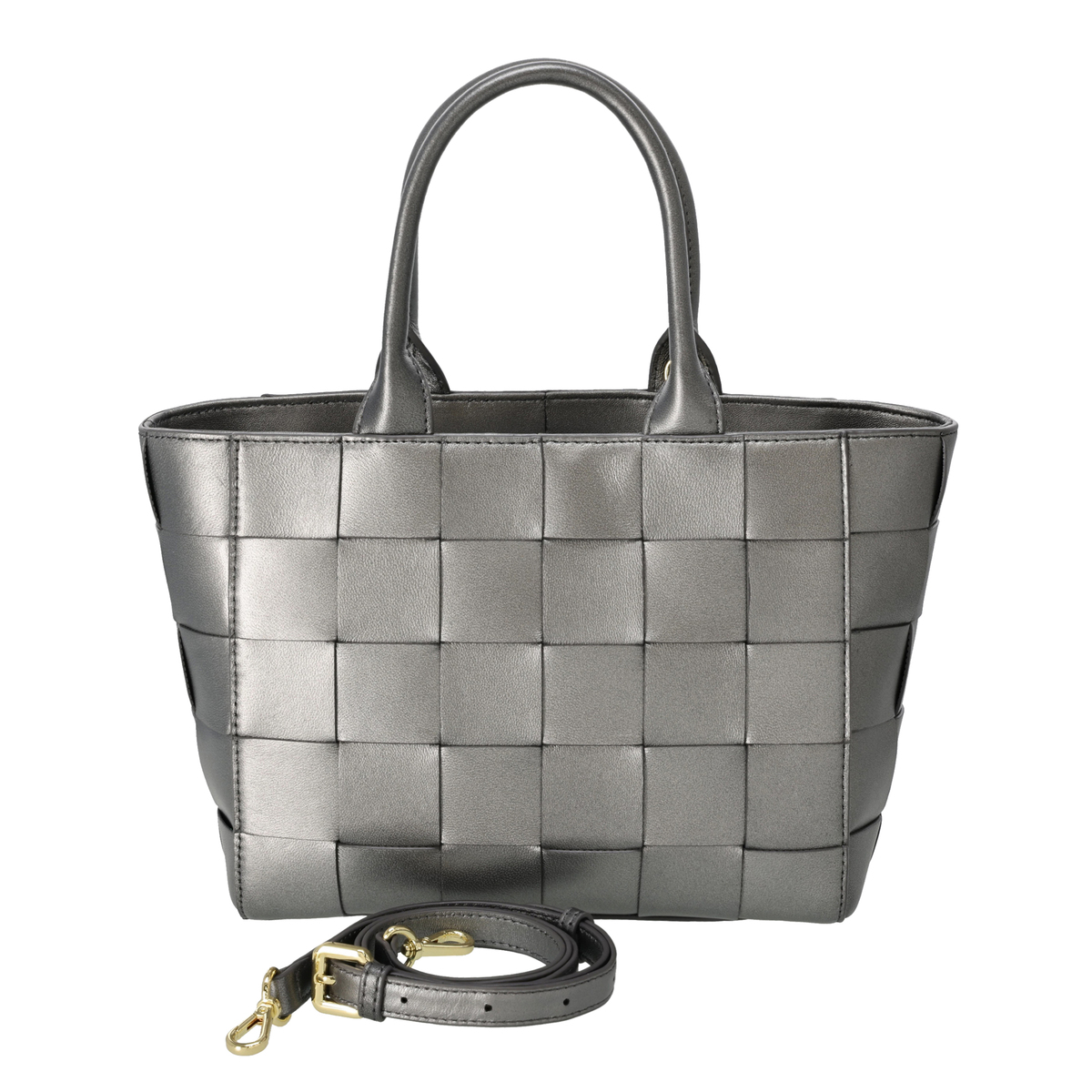 太幅のメッシュデザインが特徴の2WAYトートバッグ。発色が良く柔らかな質感のイタリア製羊革を使い、手編みで丁寧に編み込みました