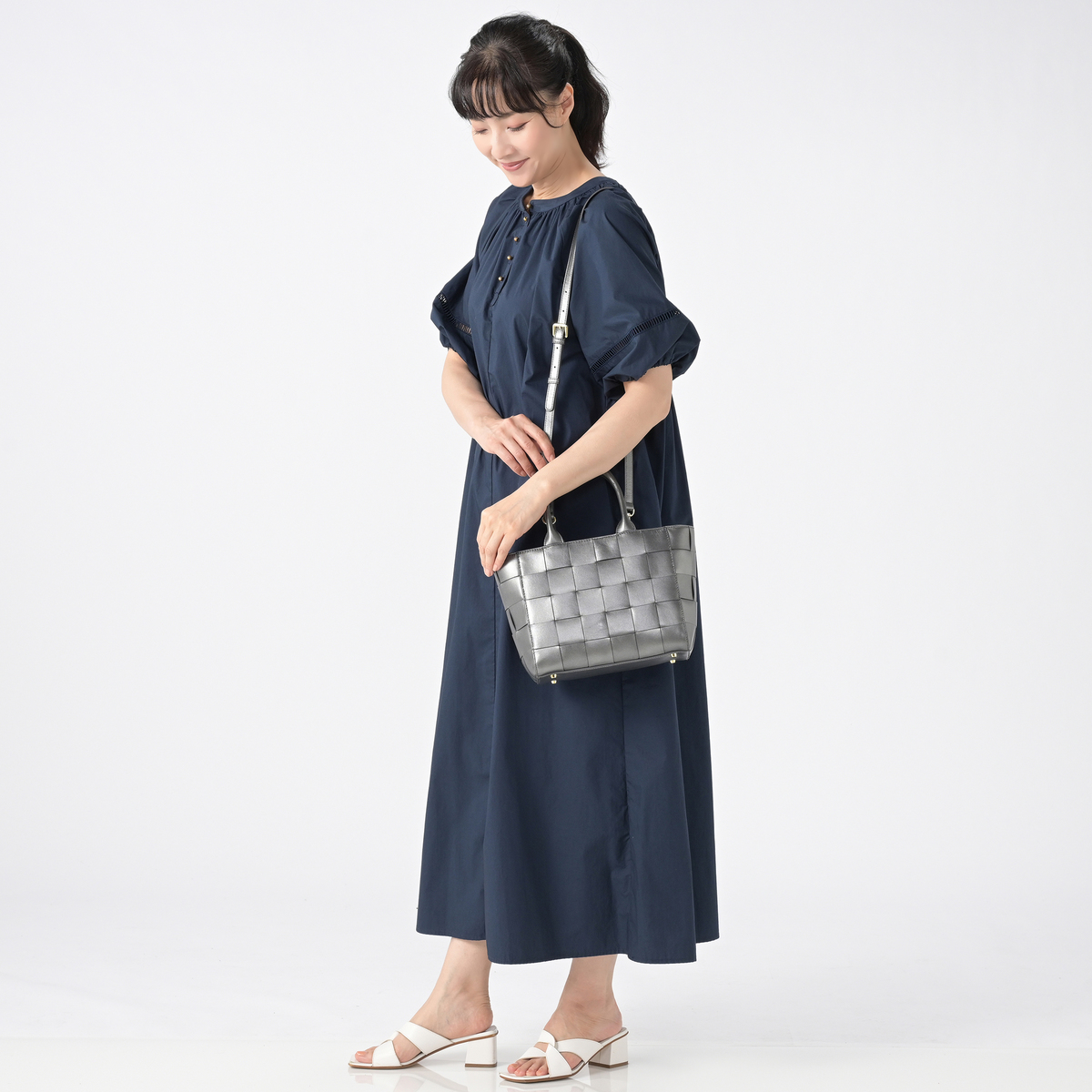 こちらのバッグが好きで以前にも購入しました。でも、もう少しだけ大きいのが欲しいと思っていました。 今回希望の大きさにバッチリのバッグが紹介されてうれしいです。以前は黒でしたので今回はシルバーに! 色も形も、もちろんデザインもお気に入りです。