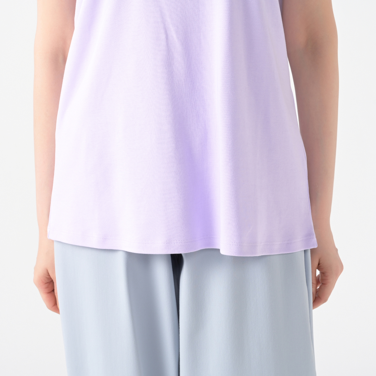 シルクのような光沢感のある、スーピマコットン100%のスムース素材を使用。肌触りが良く、UVカット、接触冷感、毛玉になりにくい機能性も備えています。お手持ちのシャツやカーディガンなどを組合せて、単体でも着回しに活躍してくれます