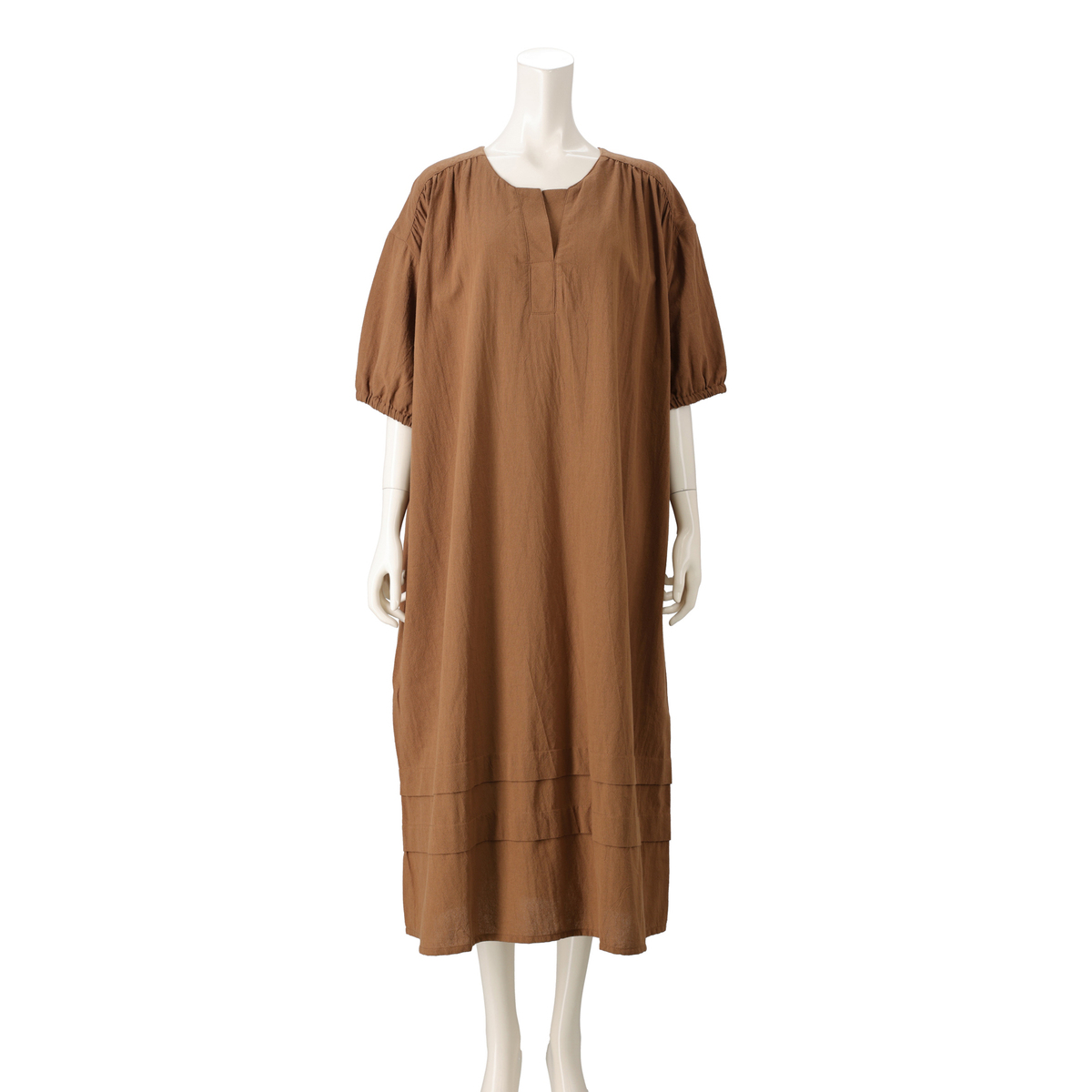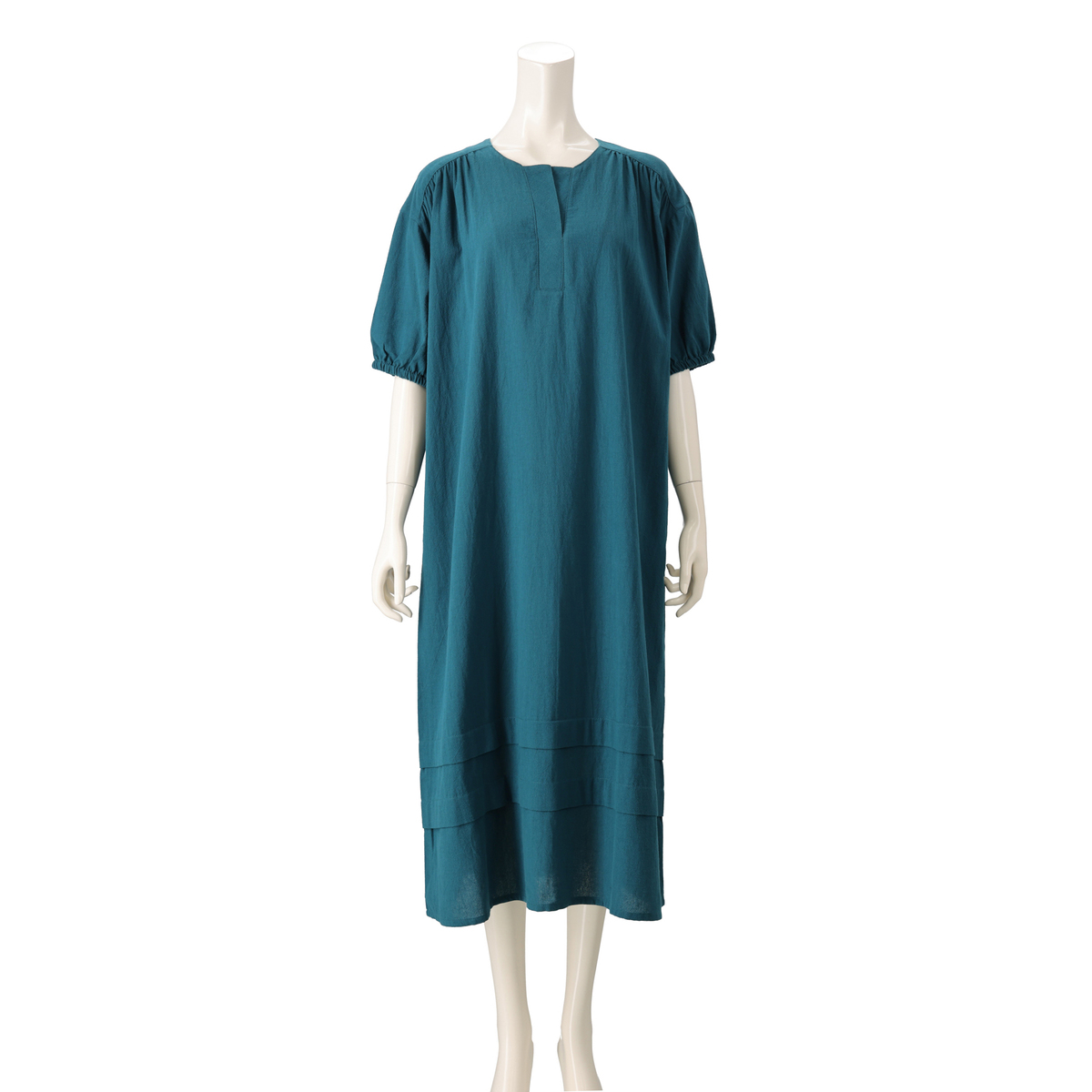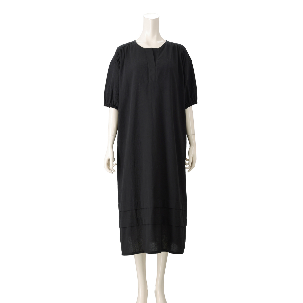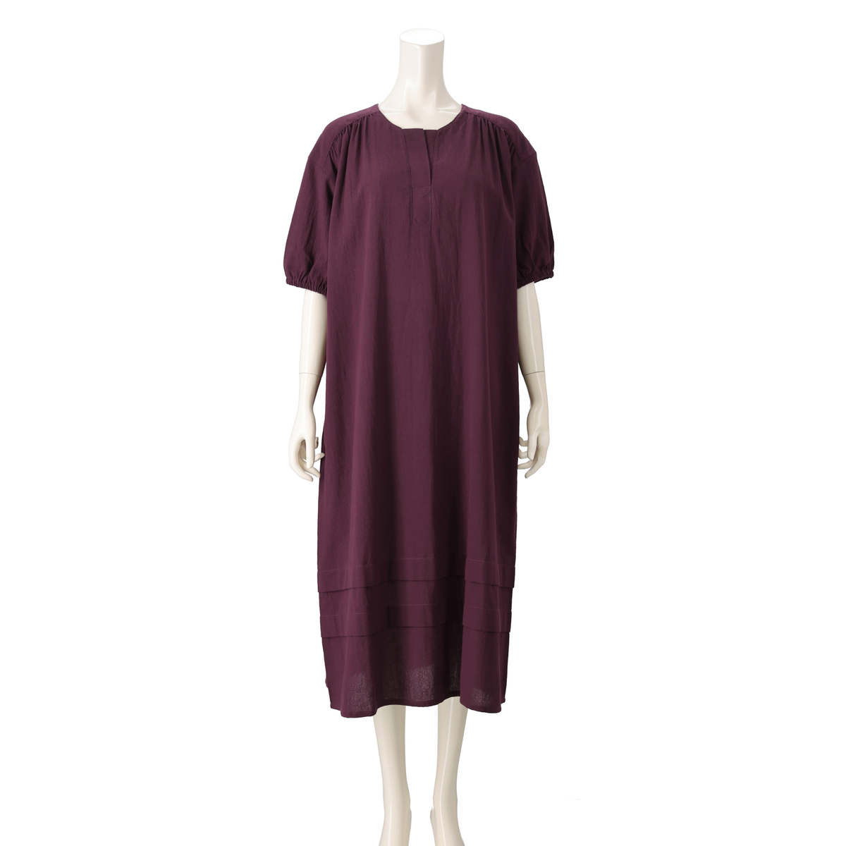 着心地の良いコットン素材のワンピース。ストーンウォッシュ加工をする事で自然なシワ感の凹凸が出て、肌にまとわりつきにくくサラリとした清涼感のあるドライタッチの風合いに。薄手ながら適度なふくらみがあり、軽やかで透けにくい仕上がりです
