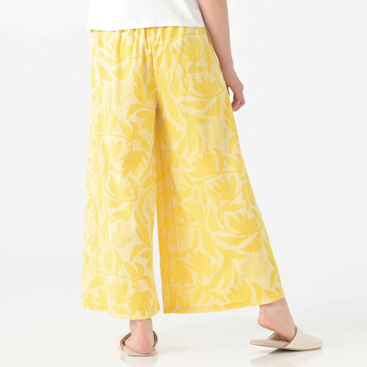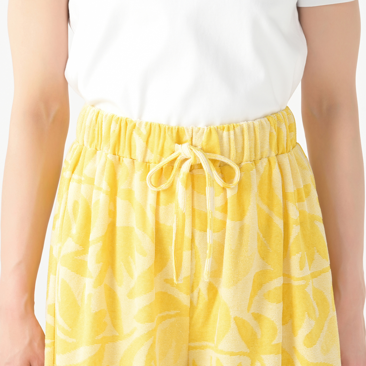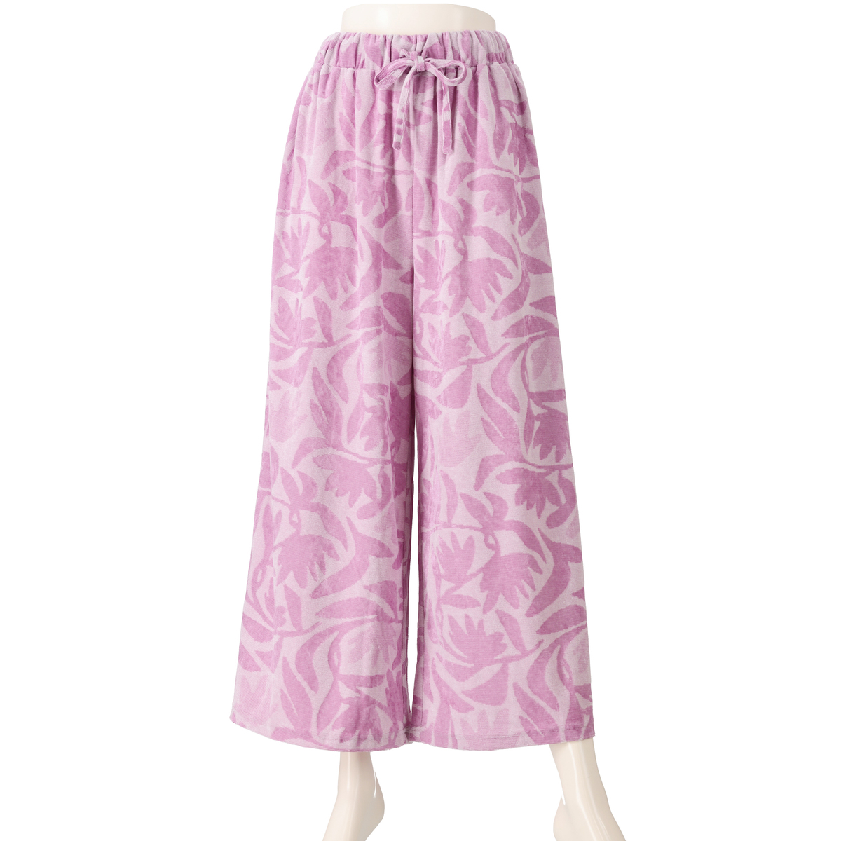 [商品寸法(ヌード寸法)cm] サイズ ウエスト ヒップ 股下 MーL:64(64〜77) (87〜100) 61 LーLL:70(69〜85) (92〜105) 63 サイズ 前股ぐり わたり幅 MーL:35 38 LーLL:37 39.5 [ウエストゴム] 全体に有 [素材] ベースパイル:綿100% 柄パイル:ポリエステル100% 地糸:ポリエステル100% [お手入れ] 洗濯機洗い可 [注意事項] ※商品寸法の誤差は多少発生します。ご了承下さい ※最初は肌や他の衣類等に毛羽が付着することがありますので、一度お洗濯してからご使用下さい ※色が濃い商品は洗濯時に色落ちすることがありますので、他の衣類等と一緒にせず、出来るだけ単体で洗って下さい ※麻、絹、レーヨン混の商品は素材の特性上、濡れた状態で強く摩擦されると毛羽立ち、変色(白化)することがありますので注意下さい ※洗濯の際、表面パイルが他の物に引っかかり抜けることがありますので、必ず洗濯ネットに入れて下さい ※濡れたままで放置されると他の物に色が移ることがありますので、洗濯終了後は形を整えてすぐに陰干しして下さい ※色が変色することがありますので、塩素系漂白剤は使用しないで下さい ※縮むことがありますので、乾燥機は低温で使用して下さい ※炎に接すると表面の毛羽に引火することがありますので、ご注意下さい ※洗濯ネットを使用して下さい ※乾燥機は低温で使用して下さい 【中国製】