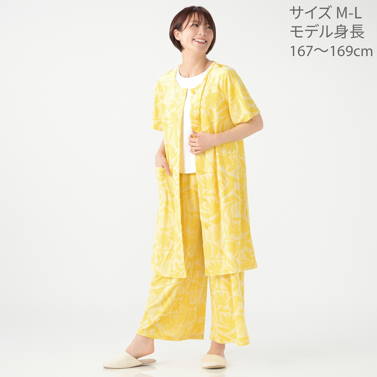 色合いがきれいだし柄物でかわいいと思い、外着として購入したのですが、タオル地でハウスウェアなら問題なしですが、お出かけ着としては無理でした。 残念ですが返品させていただきました。