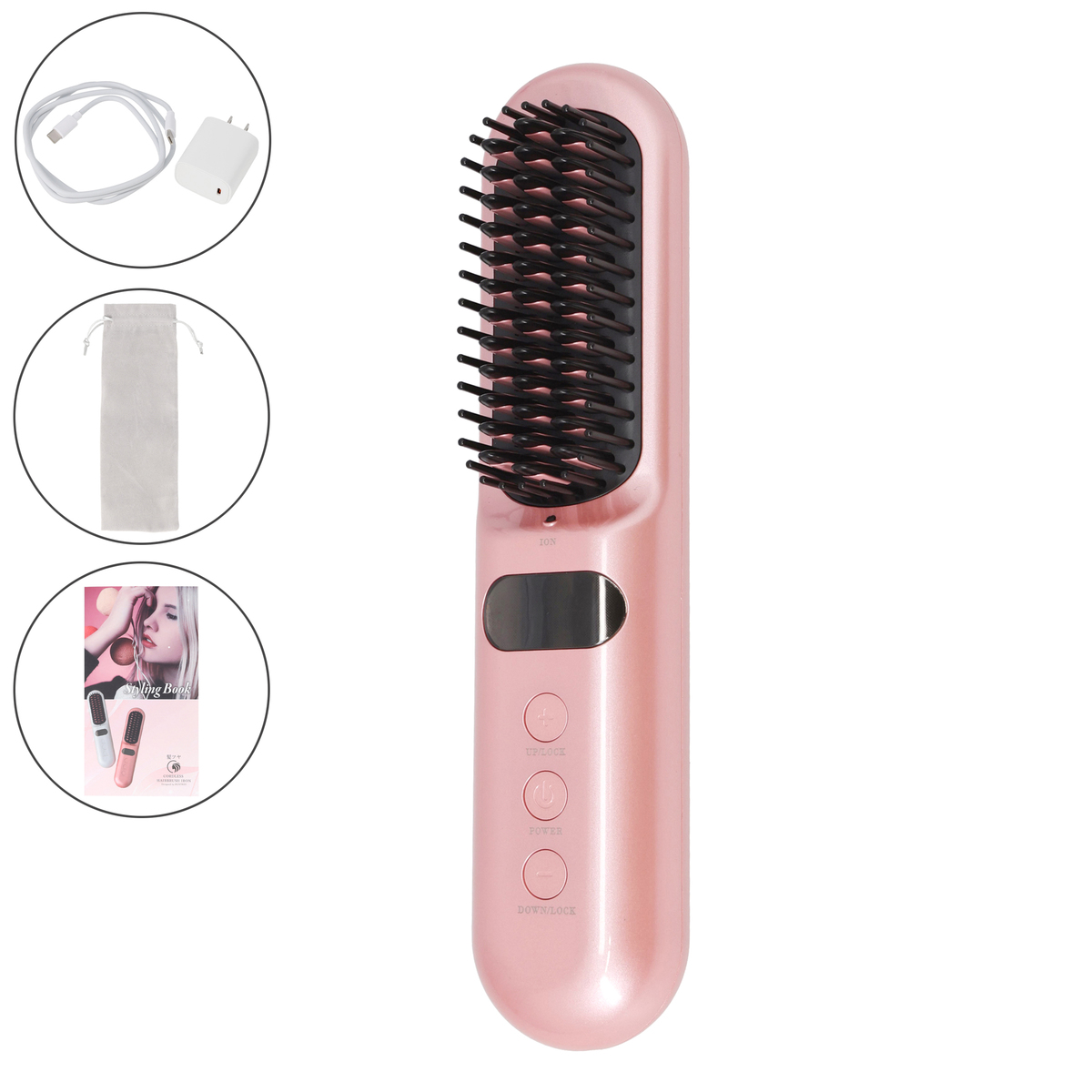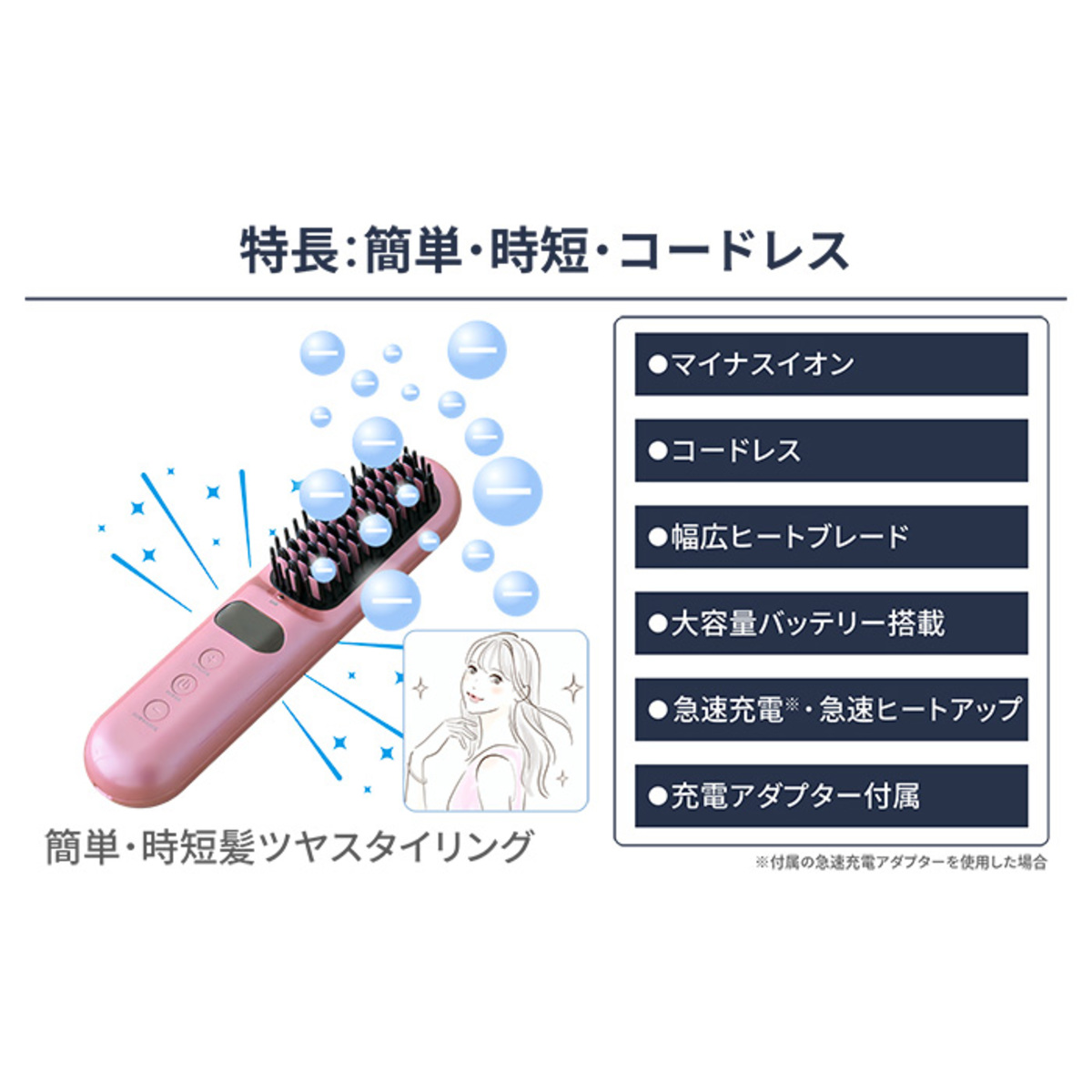 [商品内容] ・本体 ・収納ポーチ ・充電用USBケーブル(USB TypeーC) ・充電用電源アダプター ・スタイリングブック [サイズ] 約幅4.7×奥行4.4×高さ21cm [重量] 約295g [材質] 本体:ABS、PU ブラシ部:PA46、アルミニウム合金 [充電時間] 約3時間 [使用可能時間] 110分(150℃設定時) [その他機能] ・30分経過後自動OFF機能搭載 ・電源ロック機能搭載 【中国製】 [注意事項] ※ブラシ部の内側のアイロン部は高温になります。やけどの恐れがありますので直接触れたり、髪を巻き込む時に指や地肌にプレートが触れないように注意してご使用ください ※本製品をご使用になる前に事前にブラシで髪をとかしてからご使用ください ※髪の毛が絡まった場合は、直ちに本製品の電源をオフにして髪の毛をほどいてください ※故障の原因になりますので水洗いはしないでください ※使用後充電ケーブルを接続したまま保管しないでください ※本体の汚れは柔らかい布などで軽く拭き取ってください。ベンジンやシンナー類は器具や塗装を傷めるので使用しないでください ※ブラシやプレート部に汚れが付着した場合は綿棒などで拭き取ってください。この際綿棒の繊維が残らないようにご注意ください。この際綿棒の繊維が残らないようご注意ください ※ブラシ部にホコリや髪の毛が付着しないよう使用後は必ず取り除いてください。ホコリや髪の毛、整髪料、皮脂汚れが付着していると煙や異臭の原因になります ※使用後は必ず電源をオフにしてセーフティーロックを有効にしてください ※付属のUSBケーブルと充電アダプター以外使用しないでください ※充電が終了したら必ずコンセントから充電アダプターを抜いてください。火災・感電の恐れがあります ※濡れた手で抜き差しをしないでください。感電の恐れがあります ※充電アダプターをタコ足配線しないでください。火災の恐れがあります ※USBケーブルや充電アダプターが傷んだり、差し込みがゆるいときは使用しないでください。感電・ショート・発火・故障の原因になります ※USBケーブルを破損、加工をしないでください。また束ねたりねじったり無理に力を加えないでください。火災・感電の原因になります