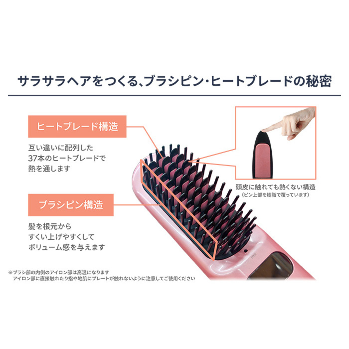 ヒートブレード搭載のピンが1本1本発熱。とかすだけで髪に熱が伝わりスピーディーに効率よくスタイリング。外側の細いピンは発熱しません。ヒートブレードピンの周りにはブラシピンを配列。髪を根元からすくい上げやすくして、ボリューム感を与えます