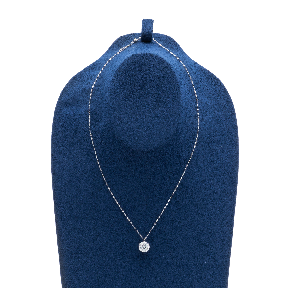 2ctUPの合成モアッサナイトをセッティング。モアッサナイトの輝きとキラめきを引き立てる、シンプルな6本爪のペンダントです。華やかなペタルチェーンを使用しました