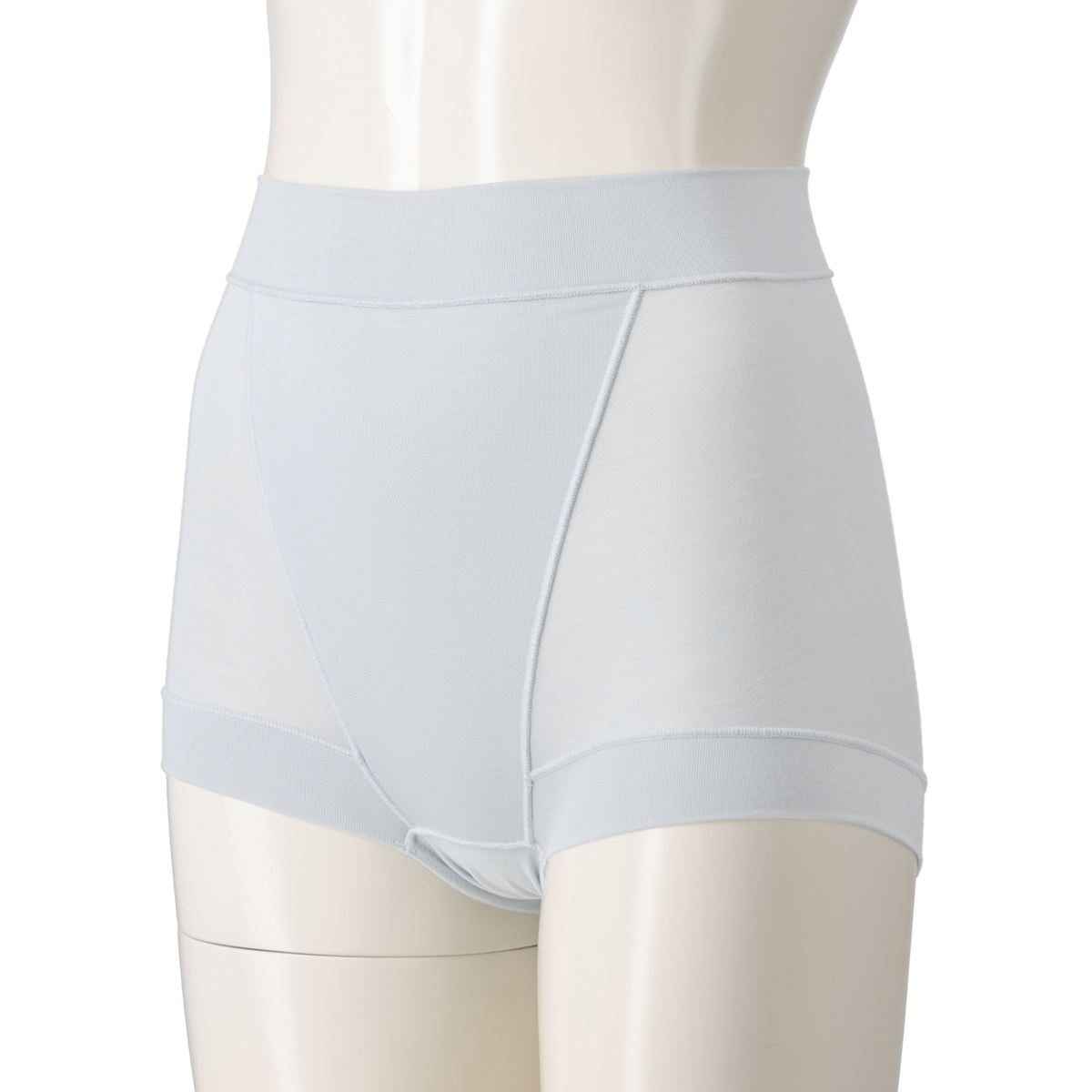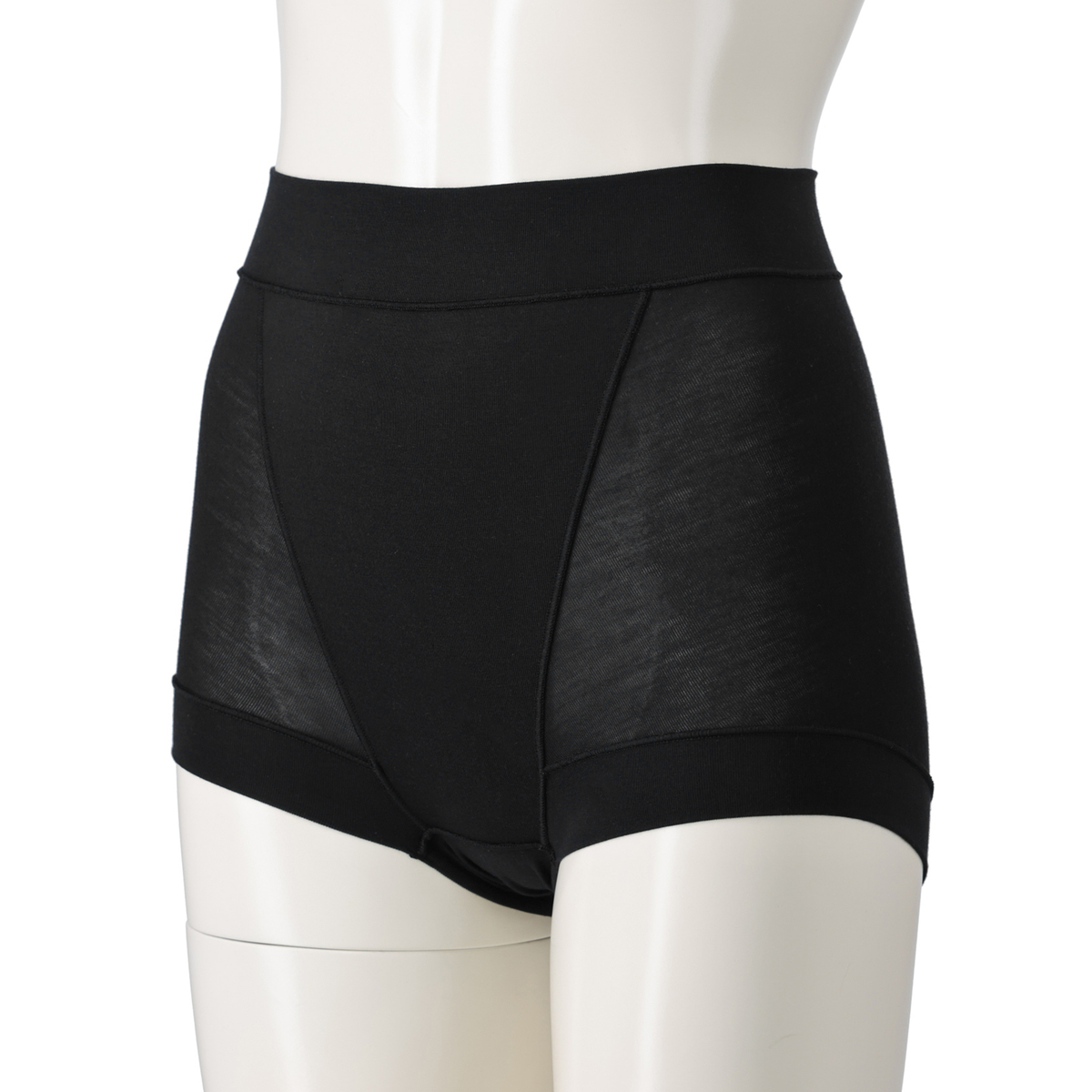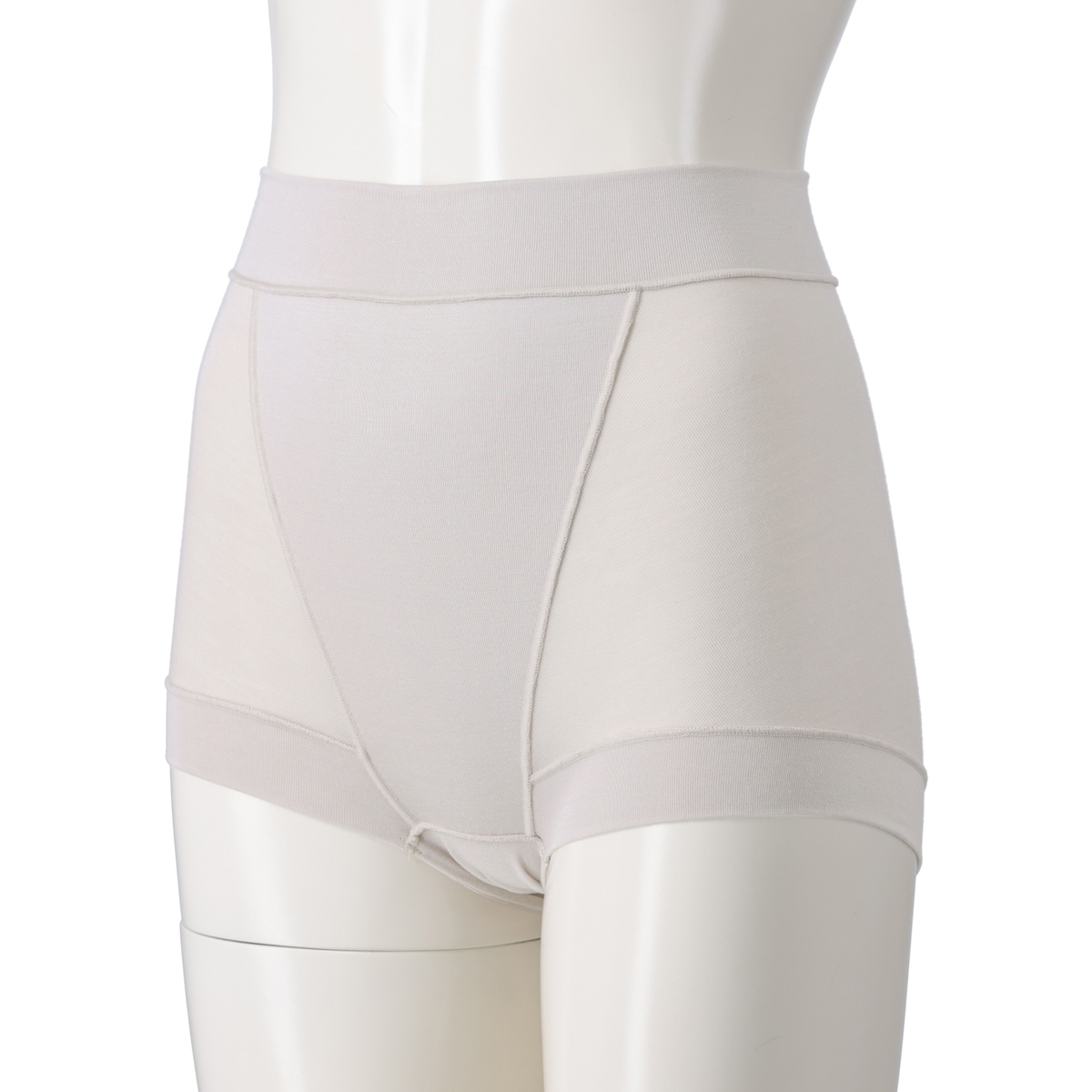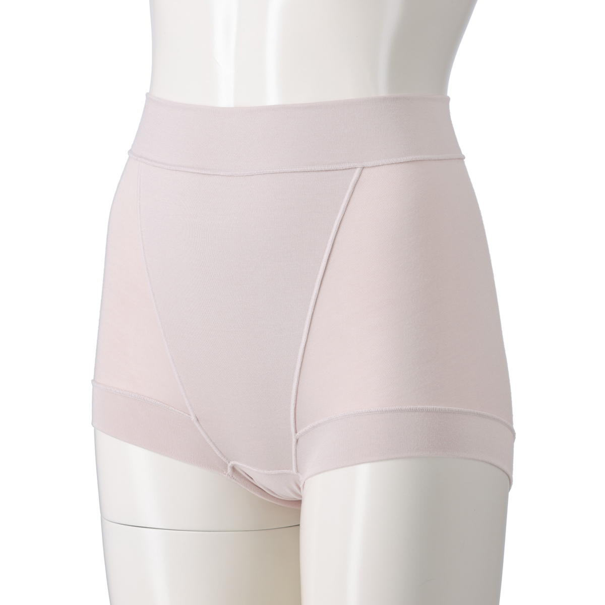 薄手のシルクレーヨン混ベア天竺素材で軽いはき心地の一分丈ショーツ。フロント部分はシルクレーヨンベア天竺の二重構造で、お腹をソフトに押さえます。ゴムを使用せず、伸縮性のあるシルクレーヨン混ベア天竺でヒップと足口をすっぽり包み込む立体設計です