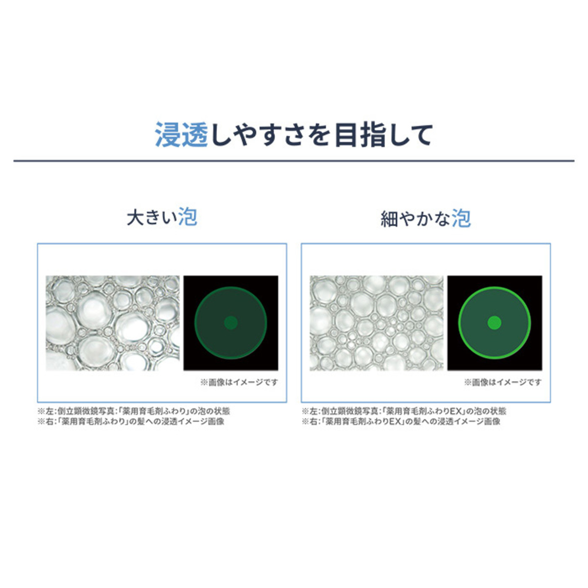 洗い流さない泡タイプの育毛剤です。 「泡」が髪と頭皮に密着し、髪の芯部まで成分をしっかり届けます。