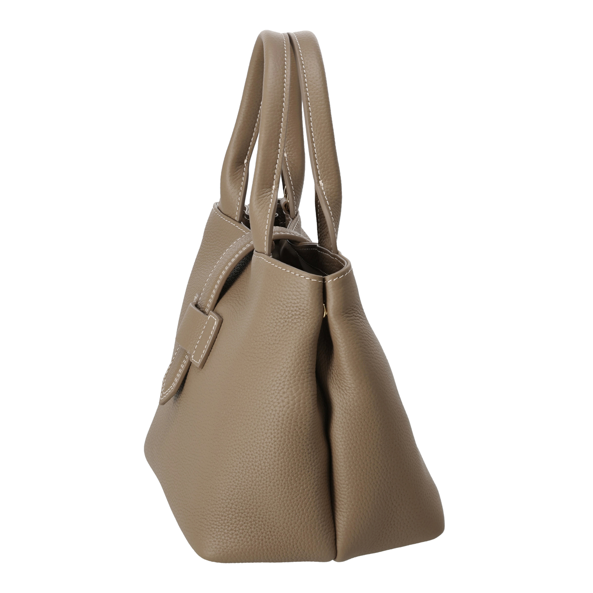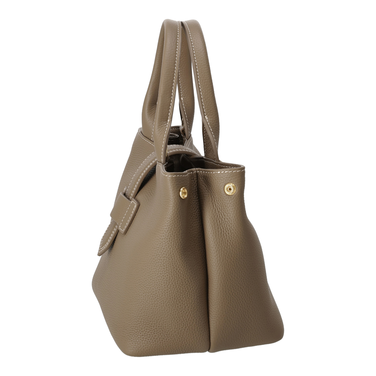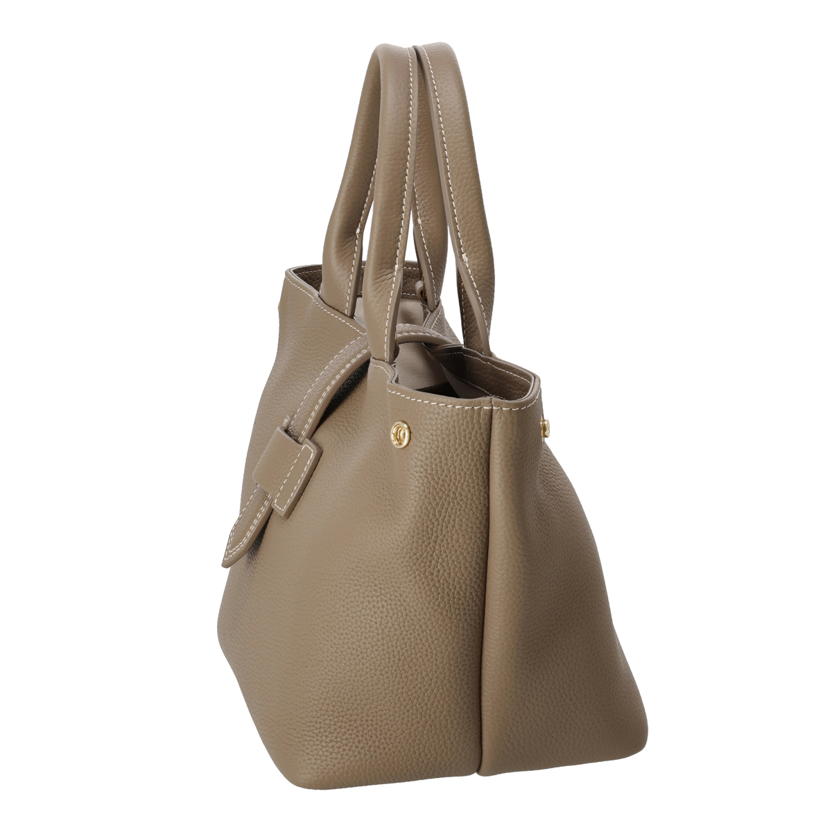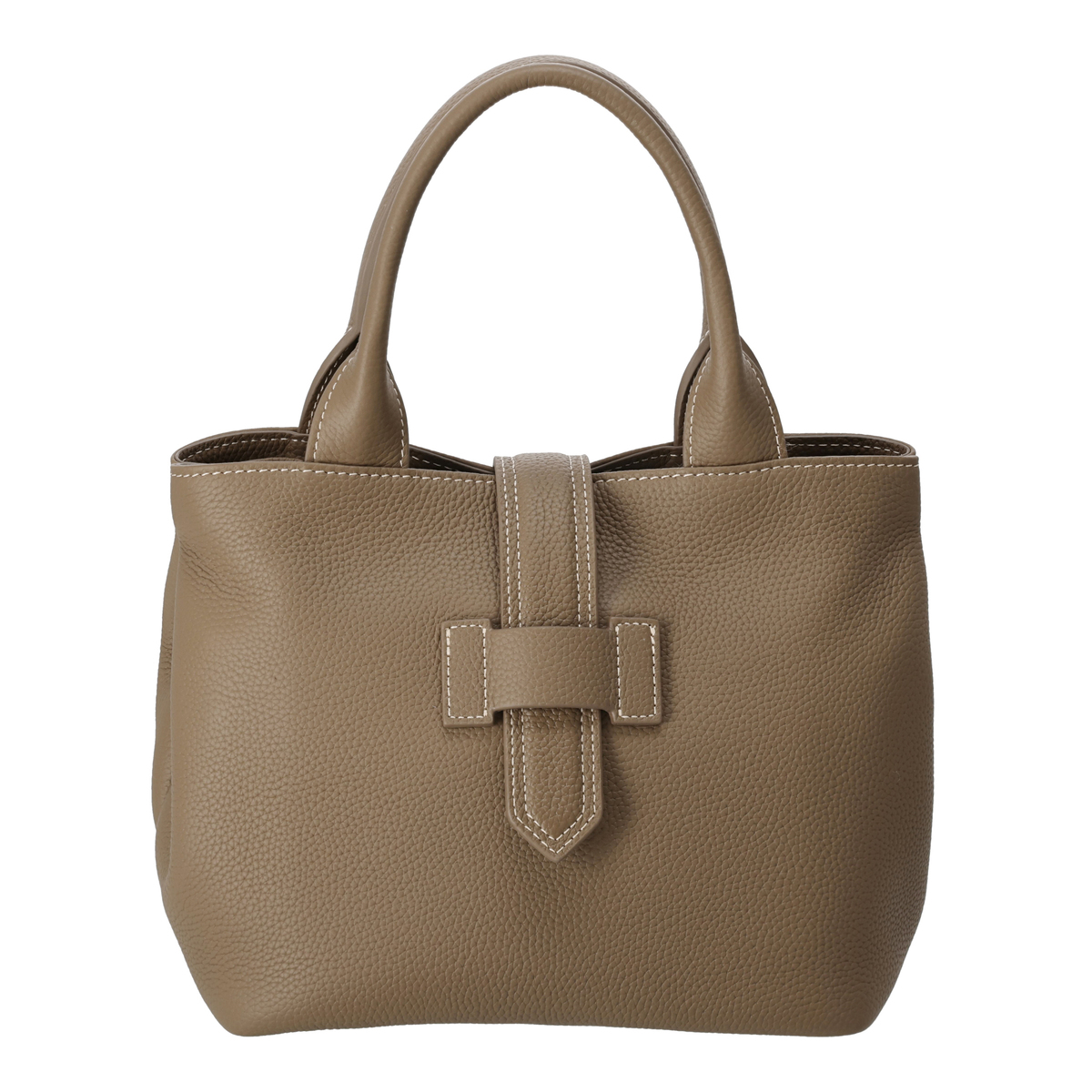 表面に凹凸のあるシュリンクレザーを使用した2WAYトートバッグ。エレガントで気品漂うベルトデザインがアイコンに。サイドホックと内側のベルトで、形状のアレンジも。ステッチ使いが絶妙で、上品な印象を与えてくれます