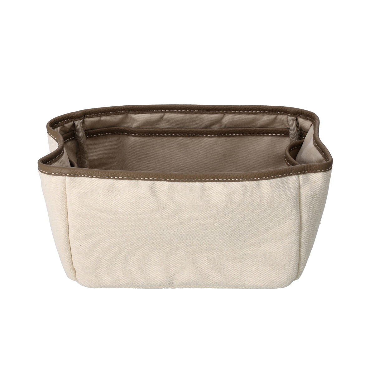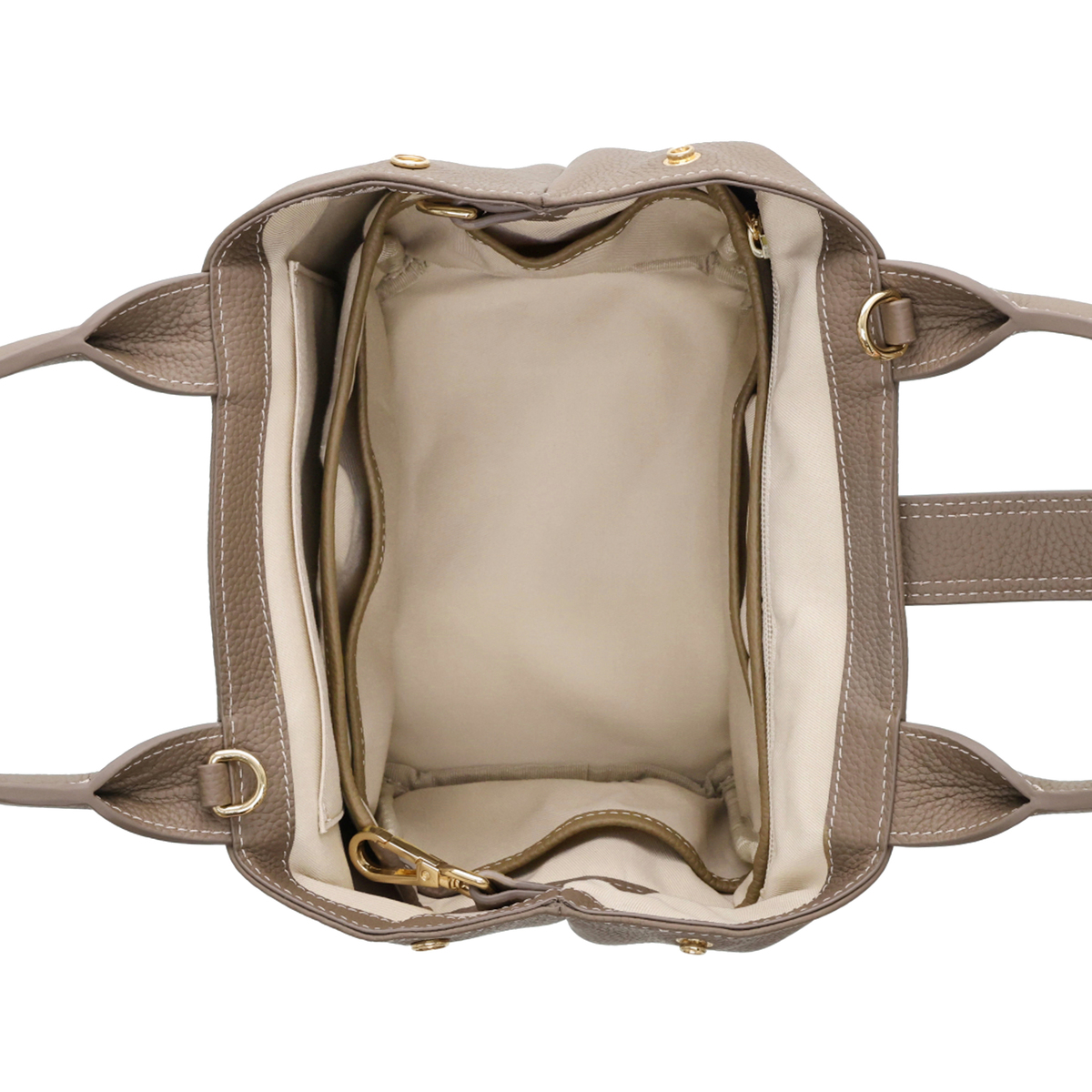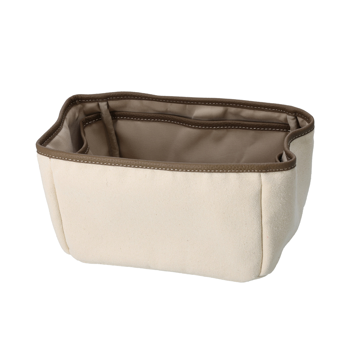 着脱可能なバッグインバッグは、すっぽりバッグに収まるサイズ感。バッグと同色の牛革でパイピングを施した上品なデザインです。内側にはポケット付きで、小物の整理も便利にできます