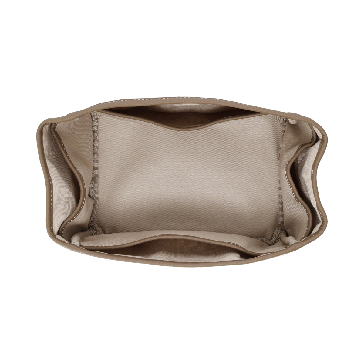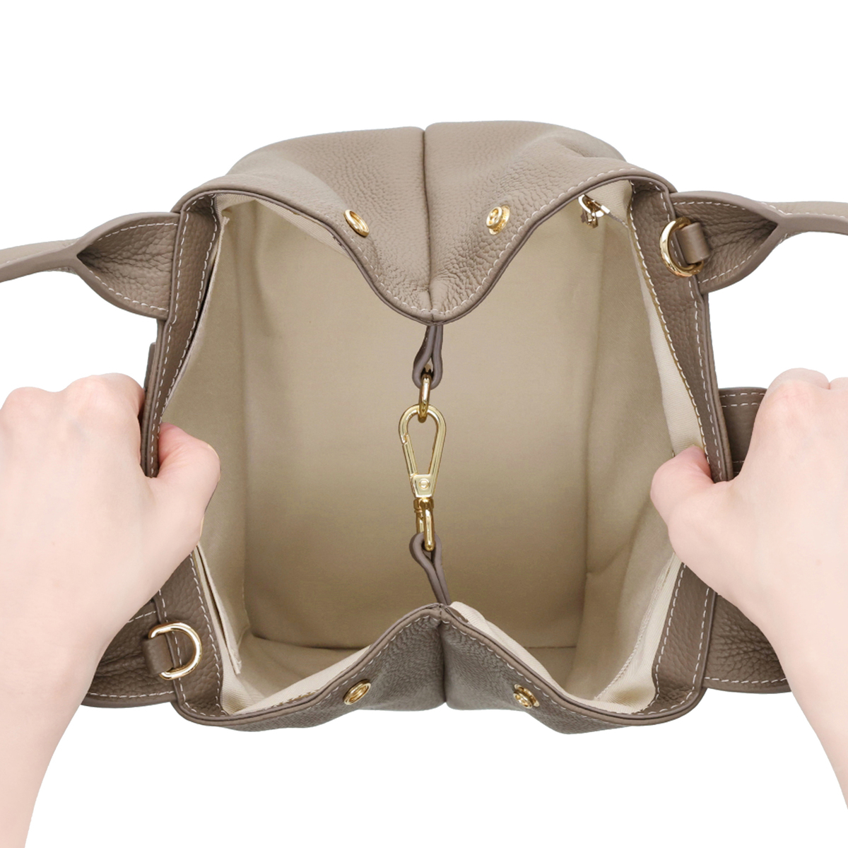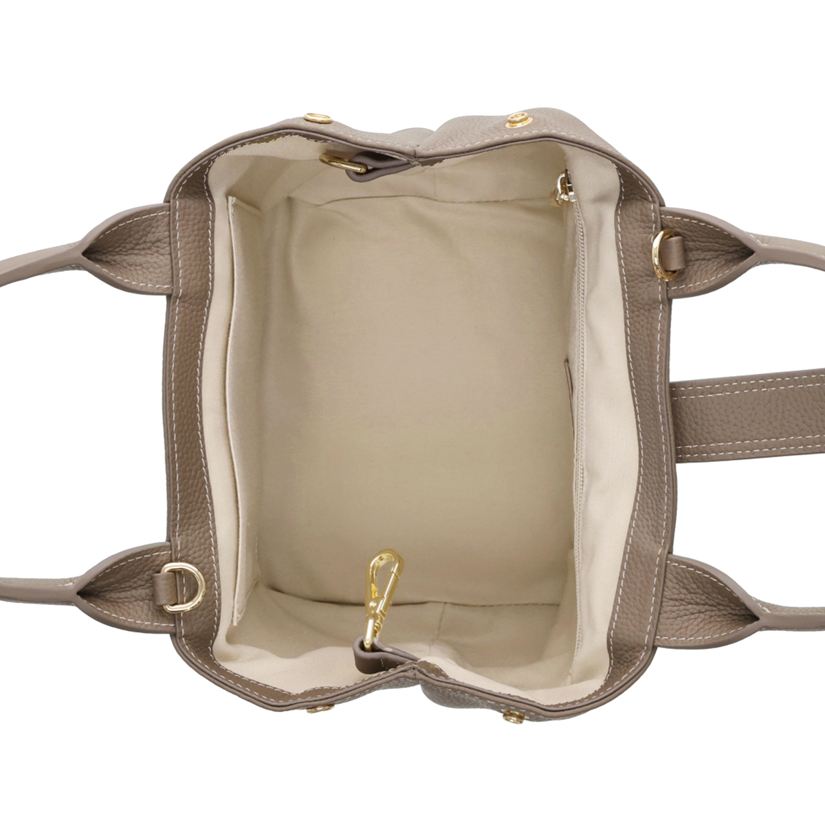 着脱可能なバッグインバッグは、すっぽりバッグに収まるサイズ感。バッグと同色の牛革でパイピングを施した上品なデザインです。内側にはポケット付きで、小物の整理も便利にできます
