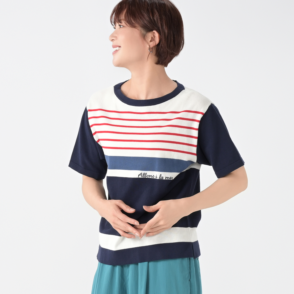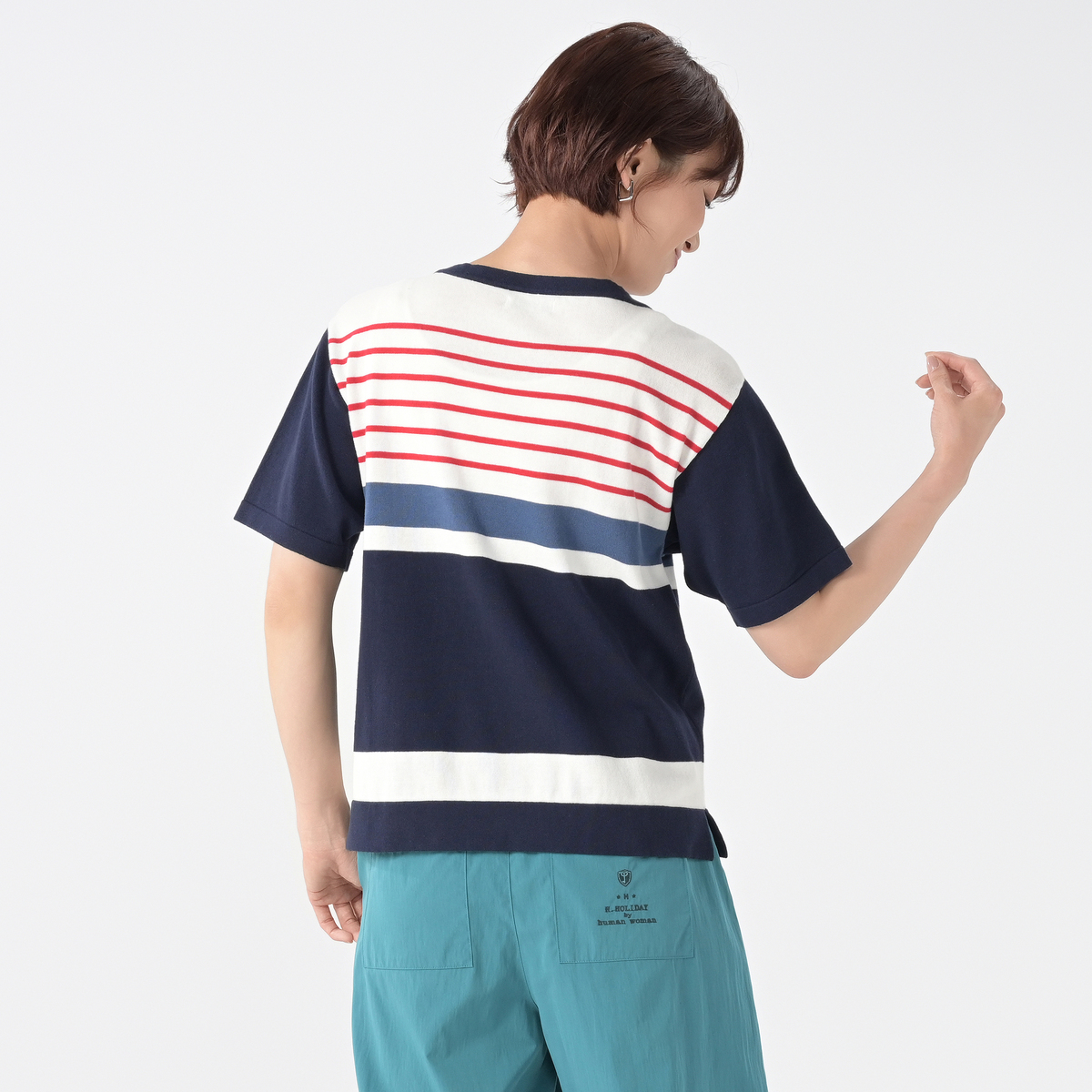 No. 741949 H.HOLIDAY サラサラ強撚綿ボーダーニットプルオーバー
