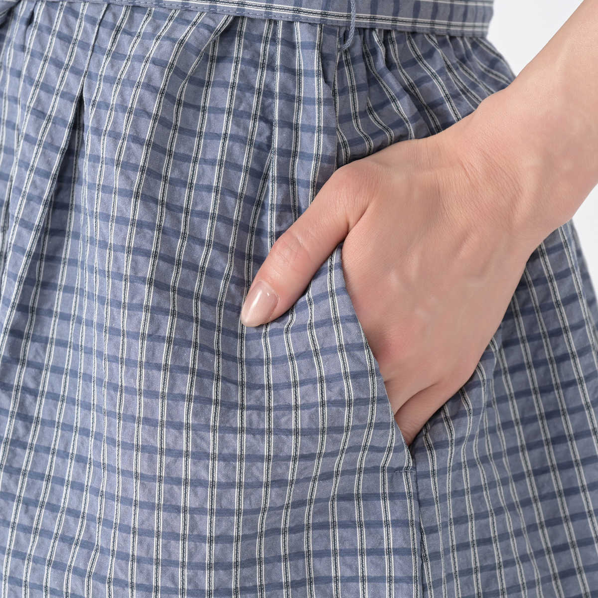 黒のチェック柄に惹かれて購入しました。 柄は、ほぼ満足 生地がサラッとしていて、夏のワンピースには向いています。 しかし、ゴワゴワ感が強くて、少し不快です。 生地にしなやかさが欲しかったです。 身長は、161センチですが、丈も長めでした。