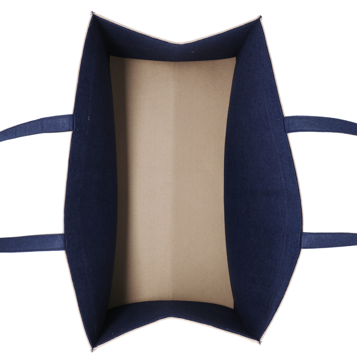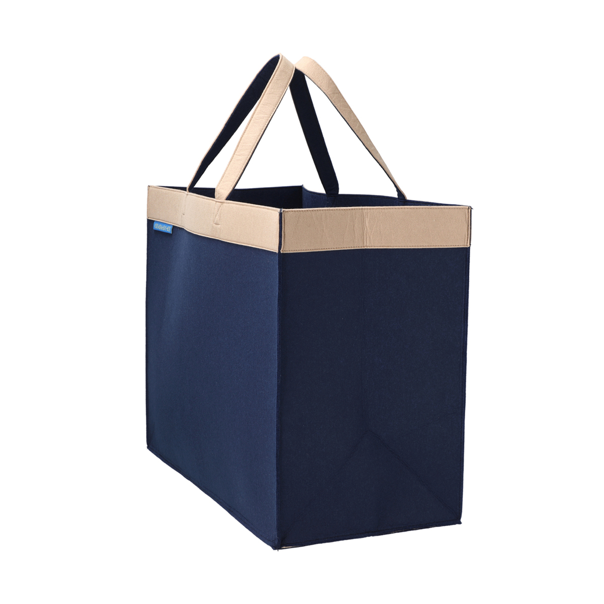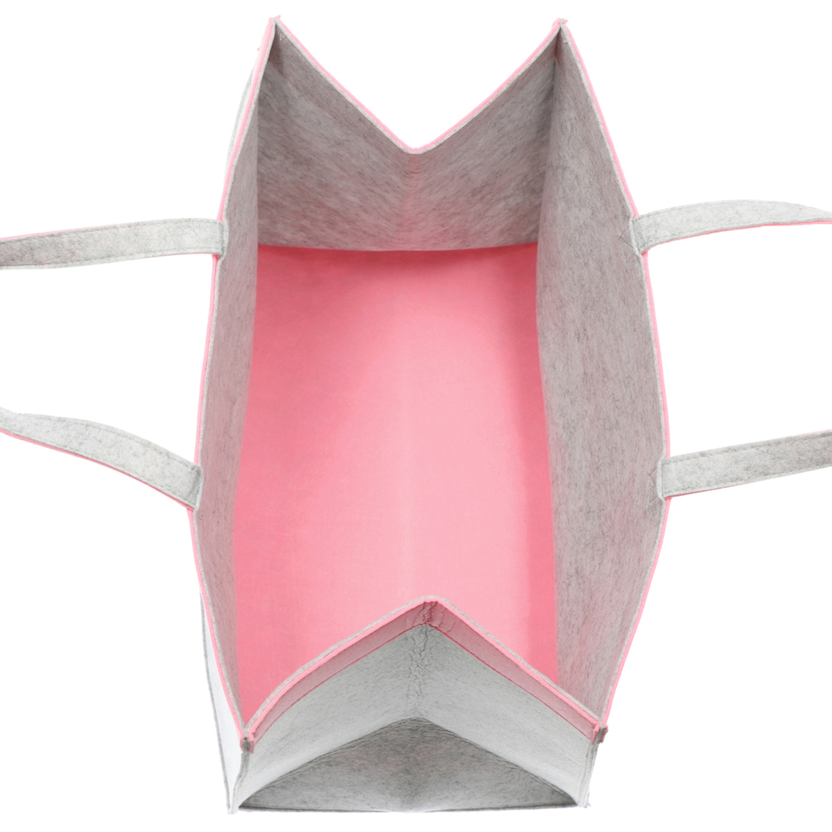 柔らかいフェルト素材の収納バッグ。持ち手付きで持ち運びも可能。開口部、把手、底部分はおしゃれなバイカラーに。使用しない時は折りたたんでコンパクトになり、隙間などに収納できます