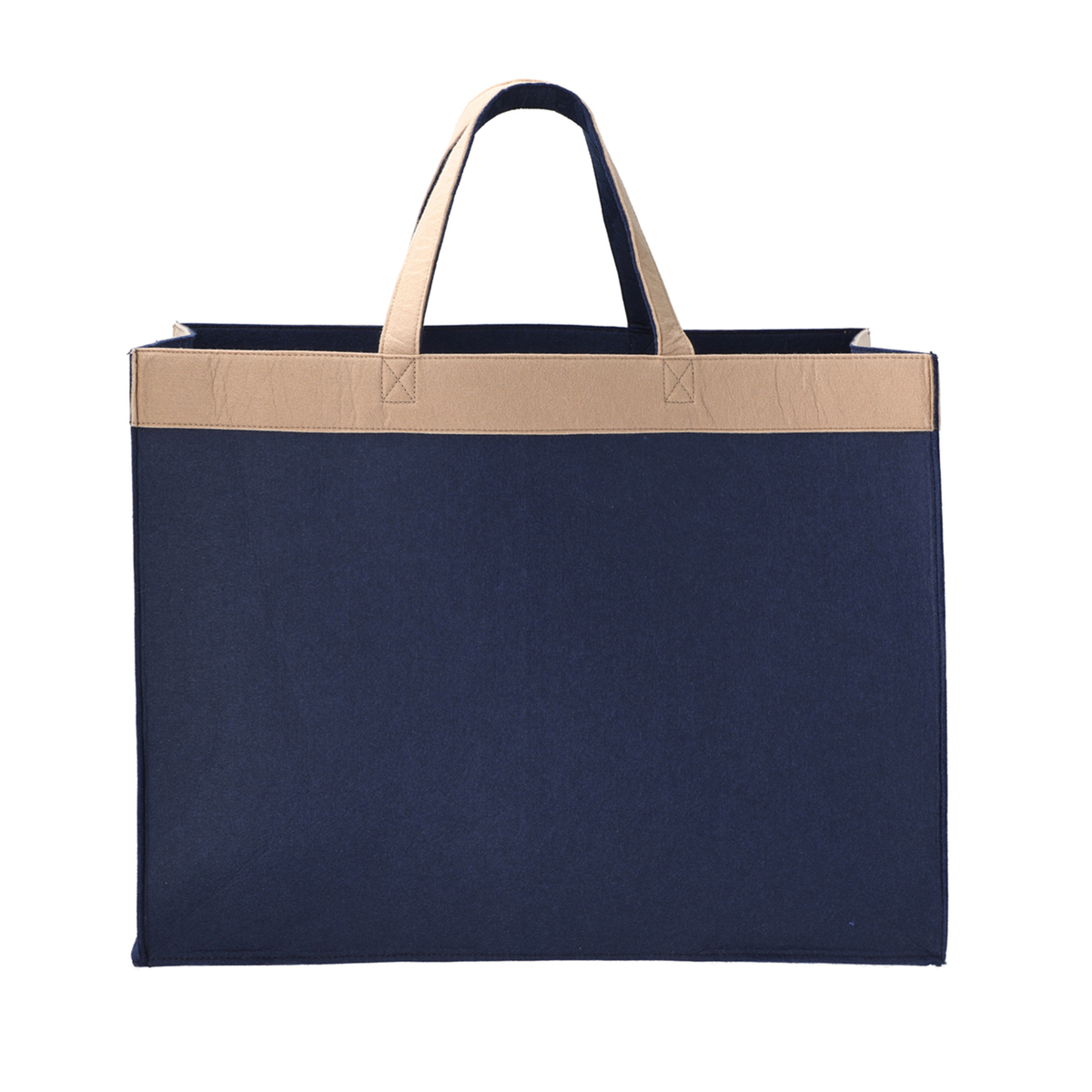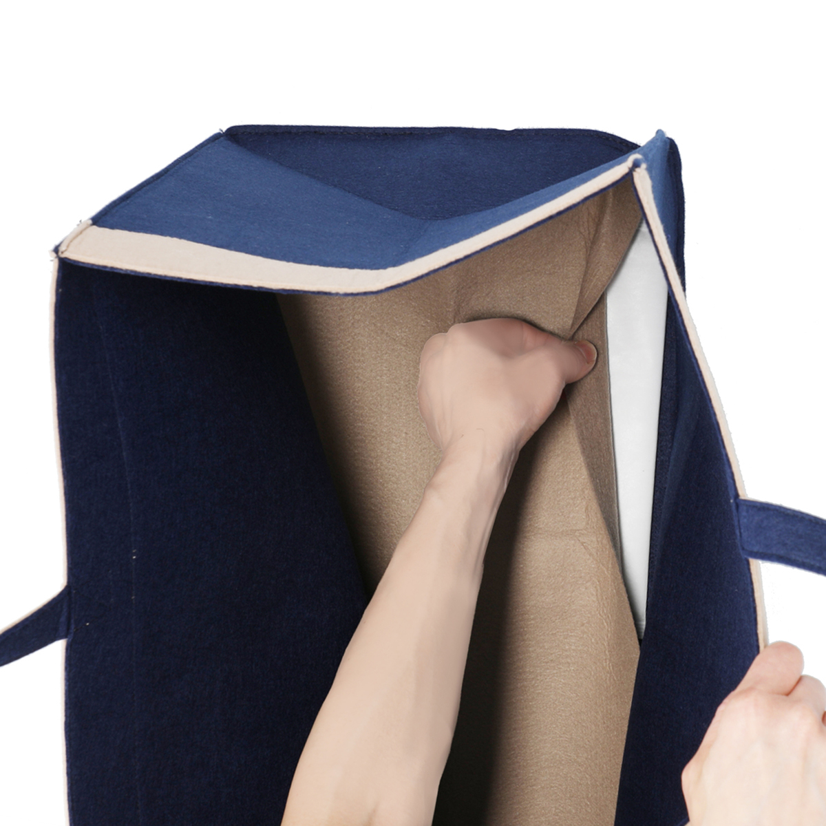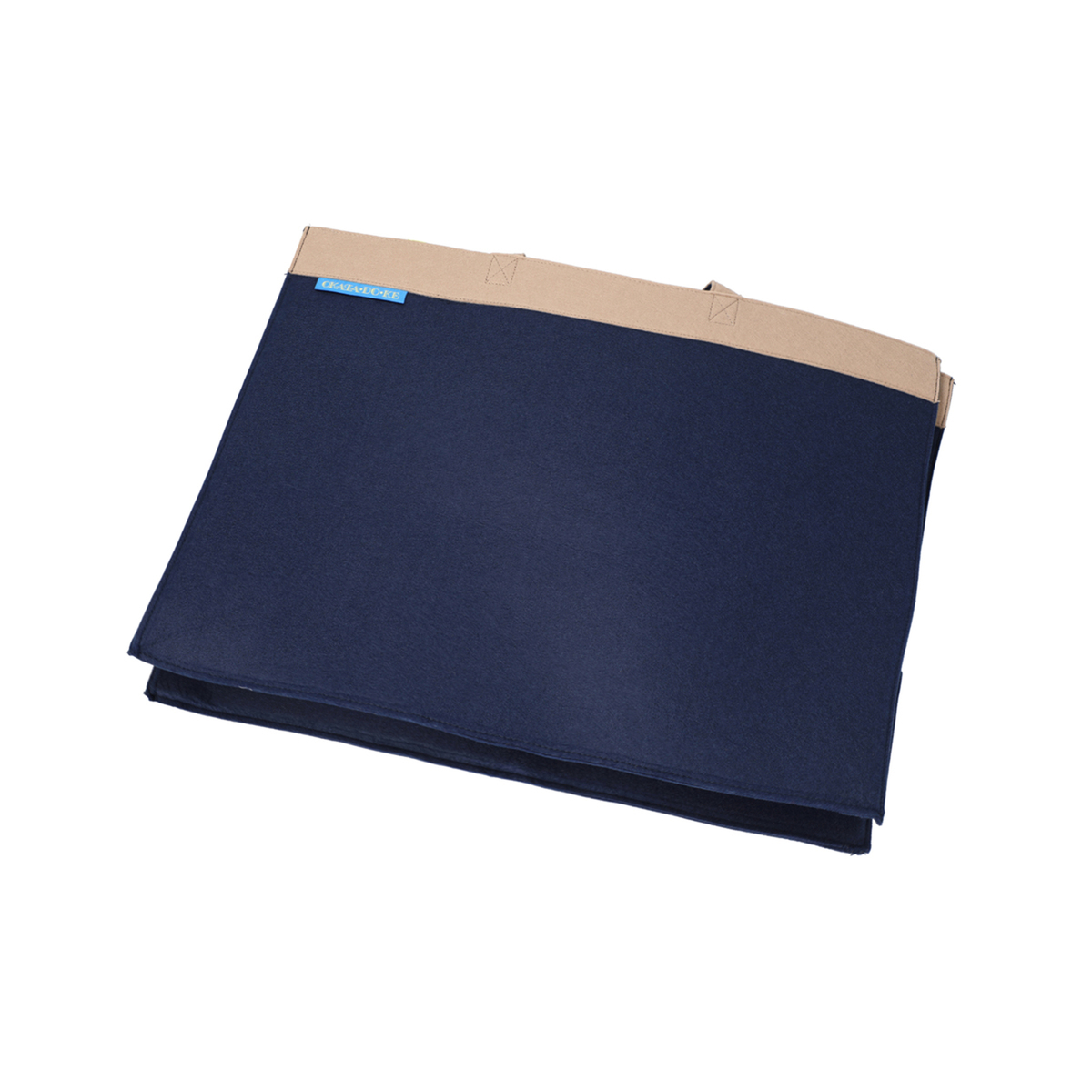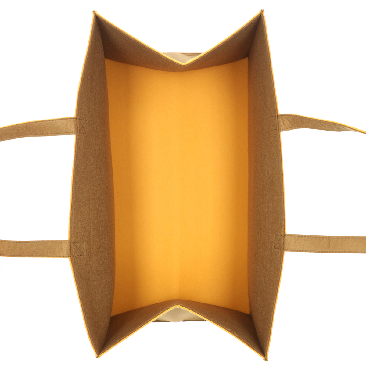 柔らかいフェルト素材の収納バッグ。持ち手付きで持ち運びも可能。開口部、把手、底部分はおしゃれなバイカラーに。使用しない時は折りたたんでコンパクトになり、隙間などに収納できます