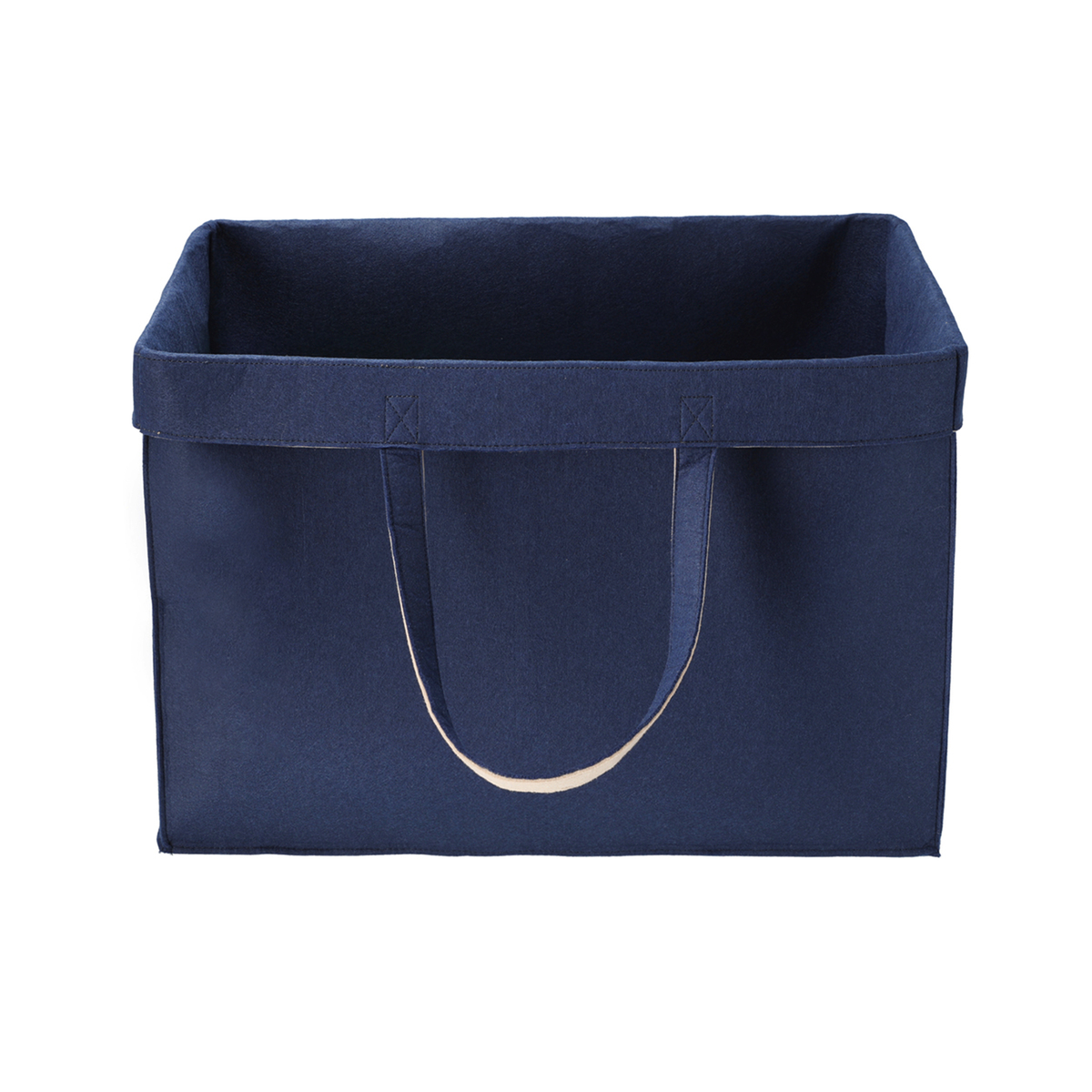[商品内容] ・本体 ・吸湿材 [サイズ(約)] 本体:50×40×26cm ハンドル立ち上がり:20cm 吸湿材:24×11×0.3cm [容量] 約47L [重量(約)] 本体:395g 吸湿材:40g [材質] 本体:ポリエステル 吸湿材:分類外繊維 [耐荷重] 約20kg [注意事項] ※素材の特性上、若干の遊び毛が付着していたり、繊維が固まっている箇所があります ※本商品は、梱包状況によりしわが発生することがありますが、使用上問題ありません ※吸湿材は透明の袋から出してご使用ください ※小さなお子さまが、誤った使い方をしないよう十分に注意してください ※変形変色、カビ等の原因になりますので、本体を直接濡らしたり、濡れた物を収納したりしないでください ※強い摩擦や水濡れにより色移りが生じる場合があります。色移りした場合は、すぐに洗濯をしてください。白や淡色のお洋服等を収納の際にはご注意ください ※ペットボトルや化粧水など液体が入った物を収納する際には、液漏れに十分ご注意ください ※耐荷重目安を超える荷物を入れないでください ※重い物を入れた場合は持ち手の取扱いには十分にご注意ください ※素材の特性上、耐荷重目安範囲の重さであっても、フェルト生地が破れたり、持ち手が切れる場合がございます。十分にご注意ください ※持ち手は強く引っ張ると破損するおそれがありますのでご注意ください ※詰め込みすぎると本体が破損するおそれがありますので、ご注意ください ※思わぬ事故の原因となりますので、本品や外装袋を頭からかぶったり、本品の中に入って遊んだりしないでください ※高温・高湿状態及び直射日光・ライトの下で使用または放置されますと黄変する場合がありますので、ご注意ください ※火気や熱のそばでのご使用はお避けください ※素材の特性上、サイズや色合いが若干異なる場合があります ※汚れた場合は固く絞った柔らかい布で優しく拭いてください ※本来の用途以外のご使用はお避けください ※廃棄される際にはお住まいの自治体の定める方法に従って廃棄してください 【中国製】