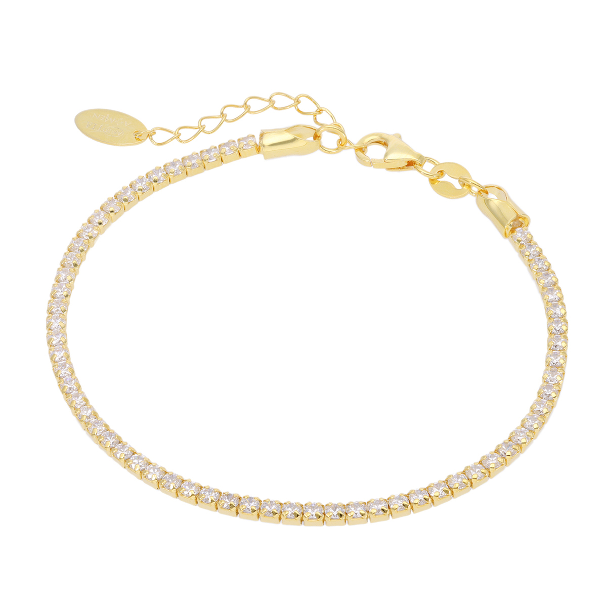 使いやすいシンプルなデザインのテニスブレスレット。全周に配したストーンが動きに合わせて美しく輝き、どんなシーンでもお使いいただけます