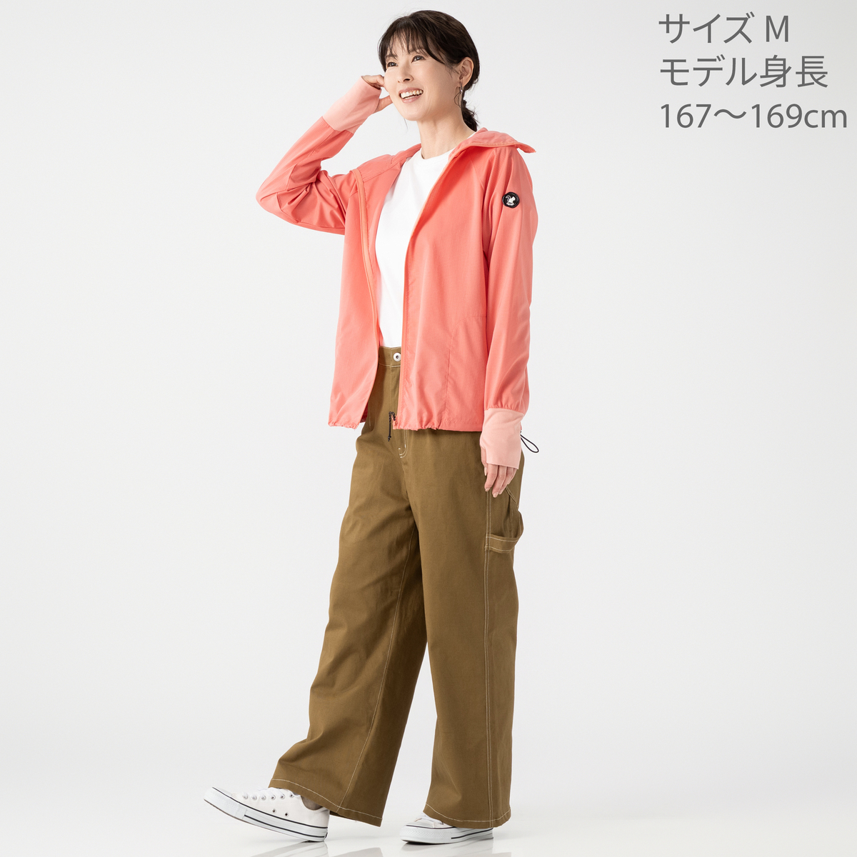 155cm Mサイズ購入 生地感は薄くて持っている接触冷感タイプの品よりサラッとして身体に張り付かない着用感も気にいっています。アースカラーが好きで薄めのカーキを選び届いて以来のお気に入りになっています 友人達からの評価もとても良く同じ物が欲しいと何人かに言われてお勧めしました 来年度も購入したいので色柄違いなどの再販 お願いします