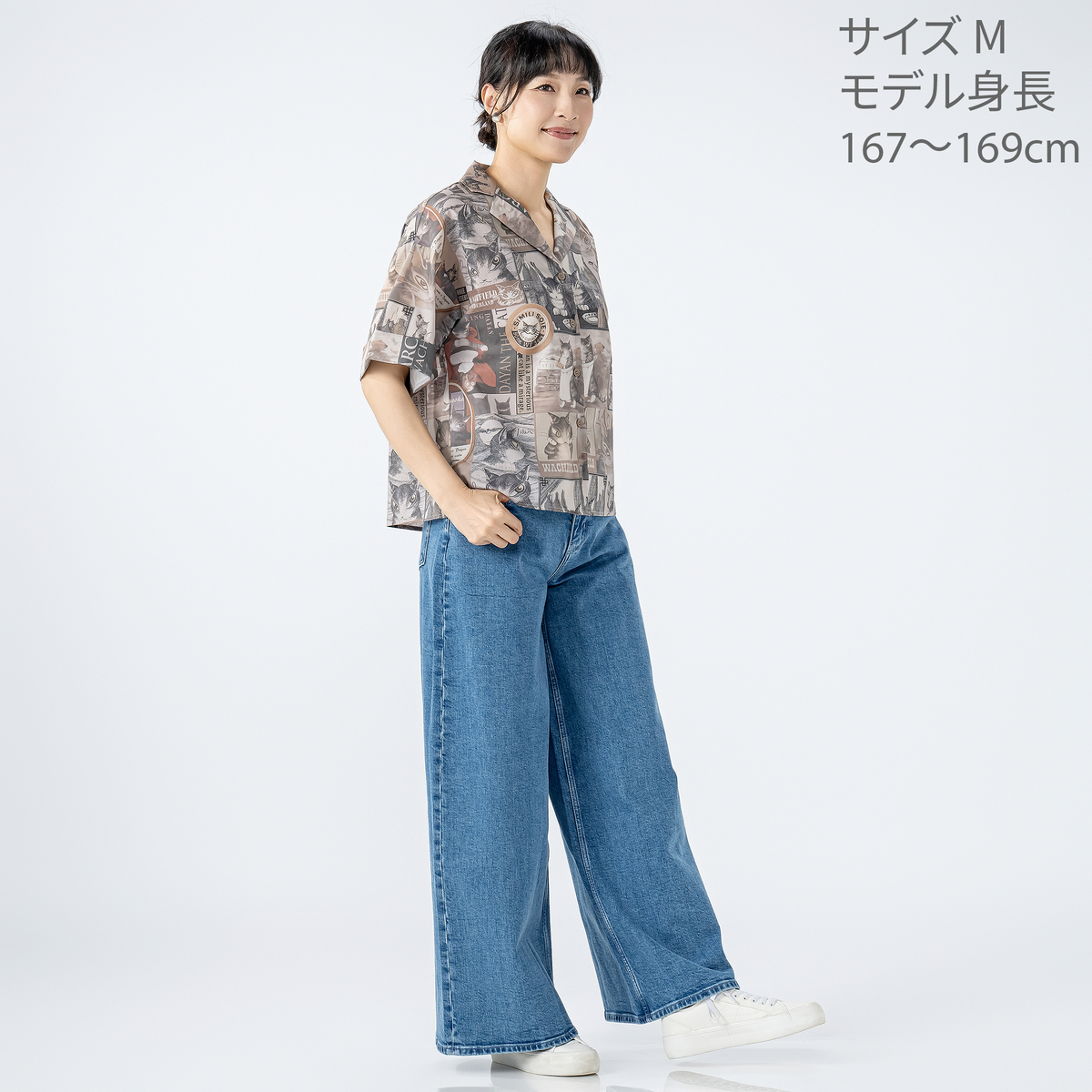 ゆとりのあるシルエットで、リラックス感のある着心地。短めの丈感でウエスト位置を高く見せ、スタイルアップ効果が期待できます
