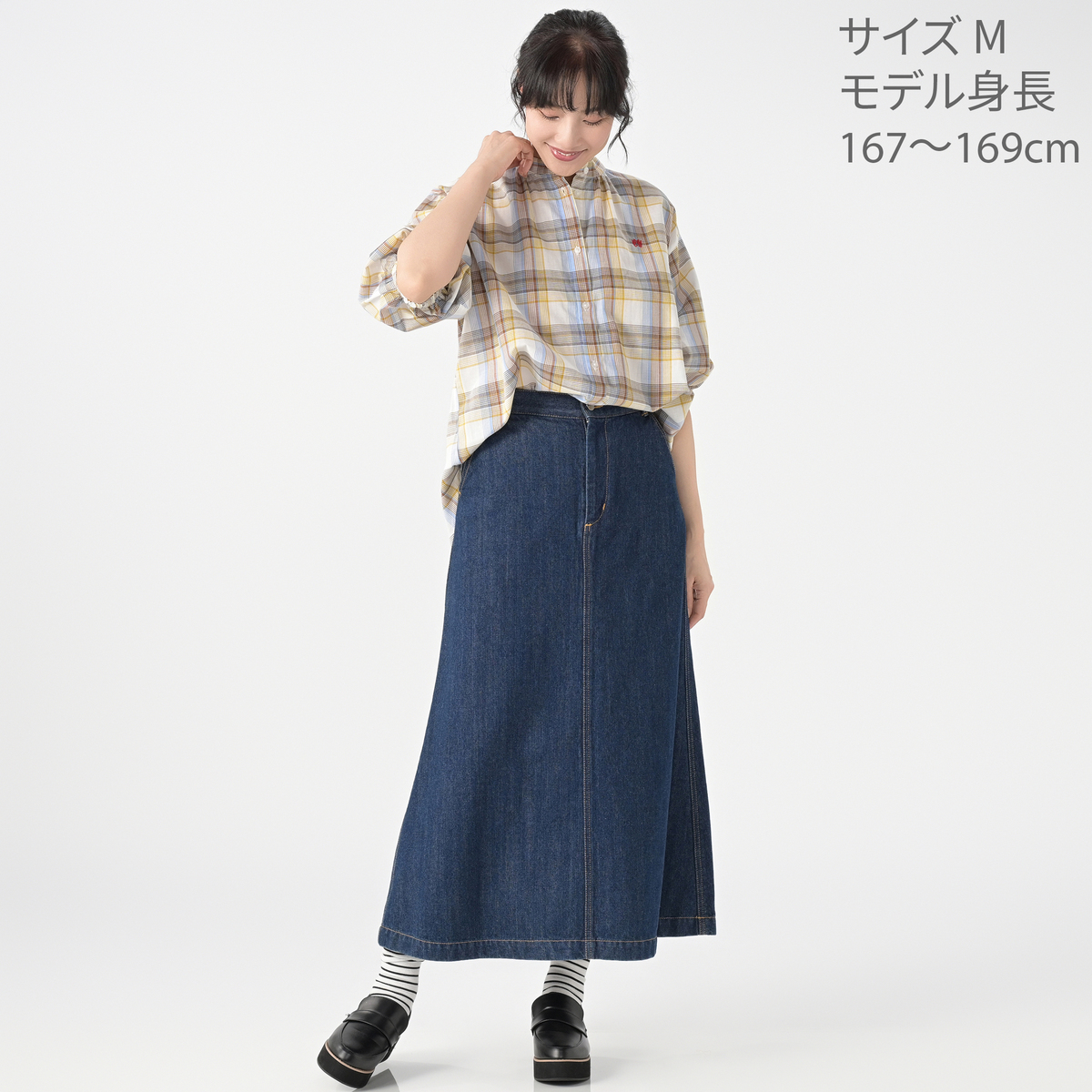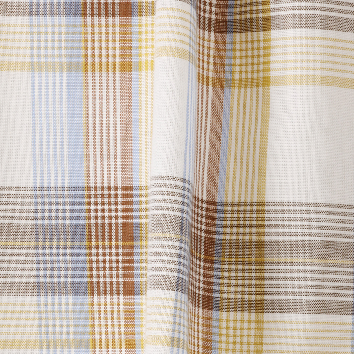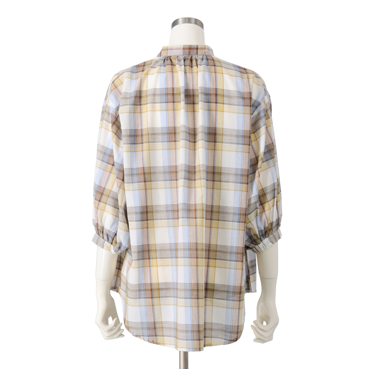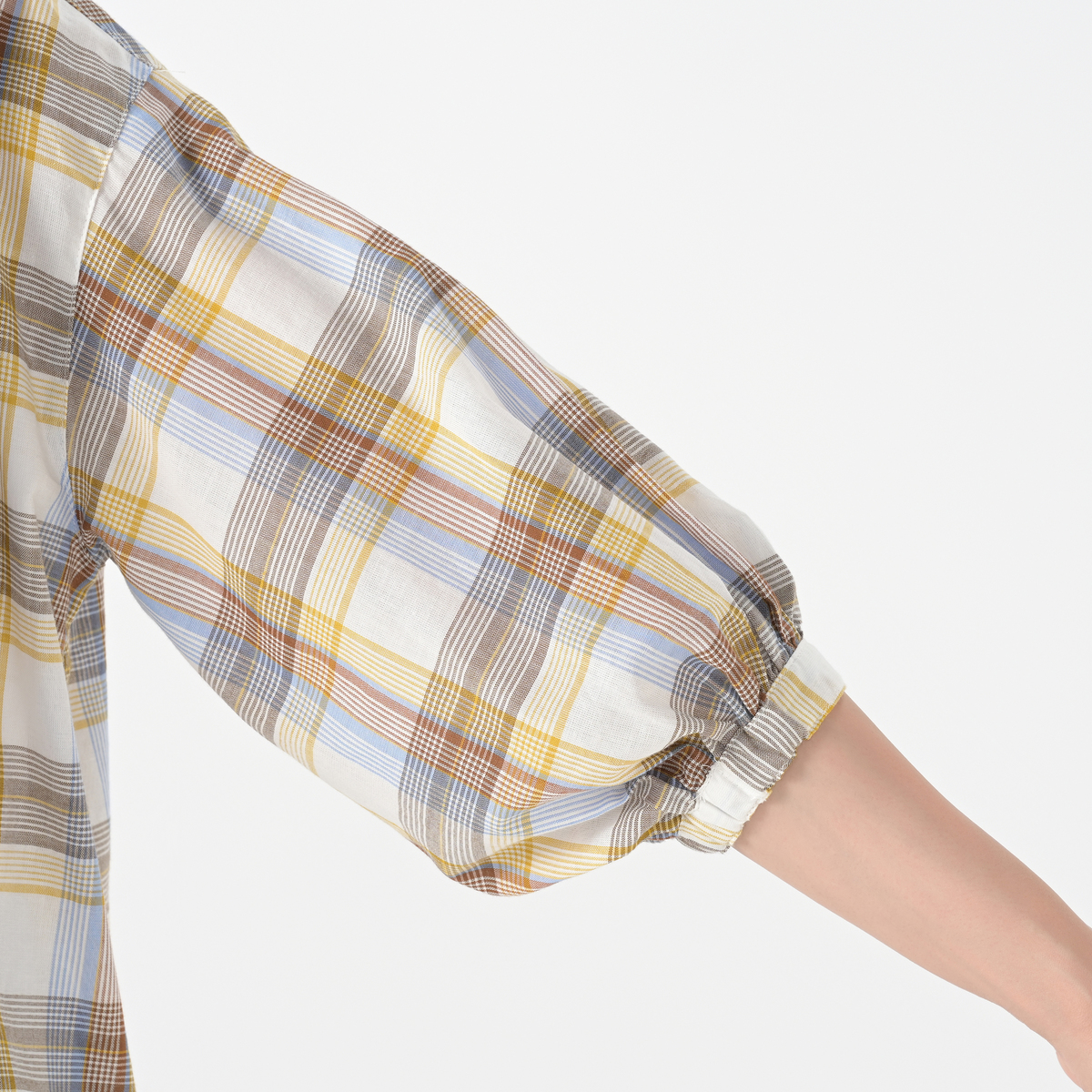 リネンのような風合いの甘撚りの先染めチェック生地を使用。ほどよい透け感が涼しげな印象を与えます