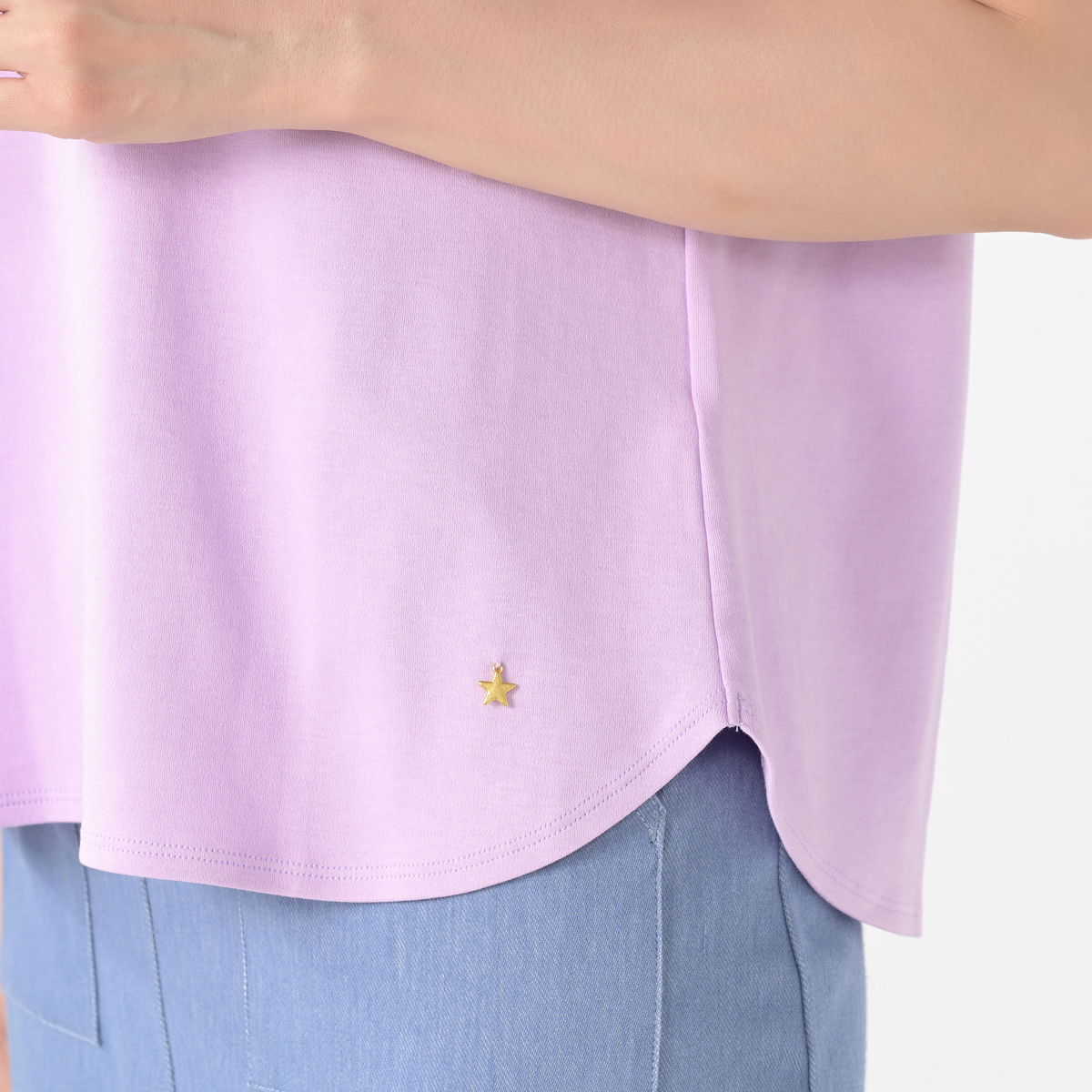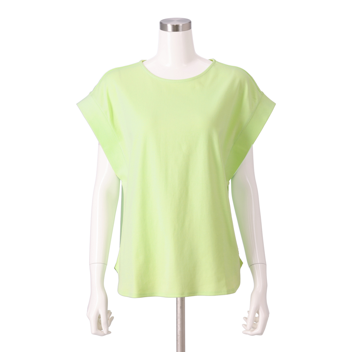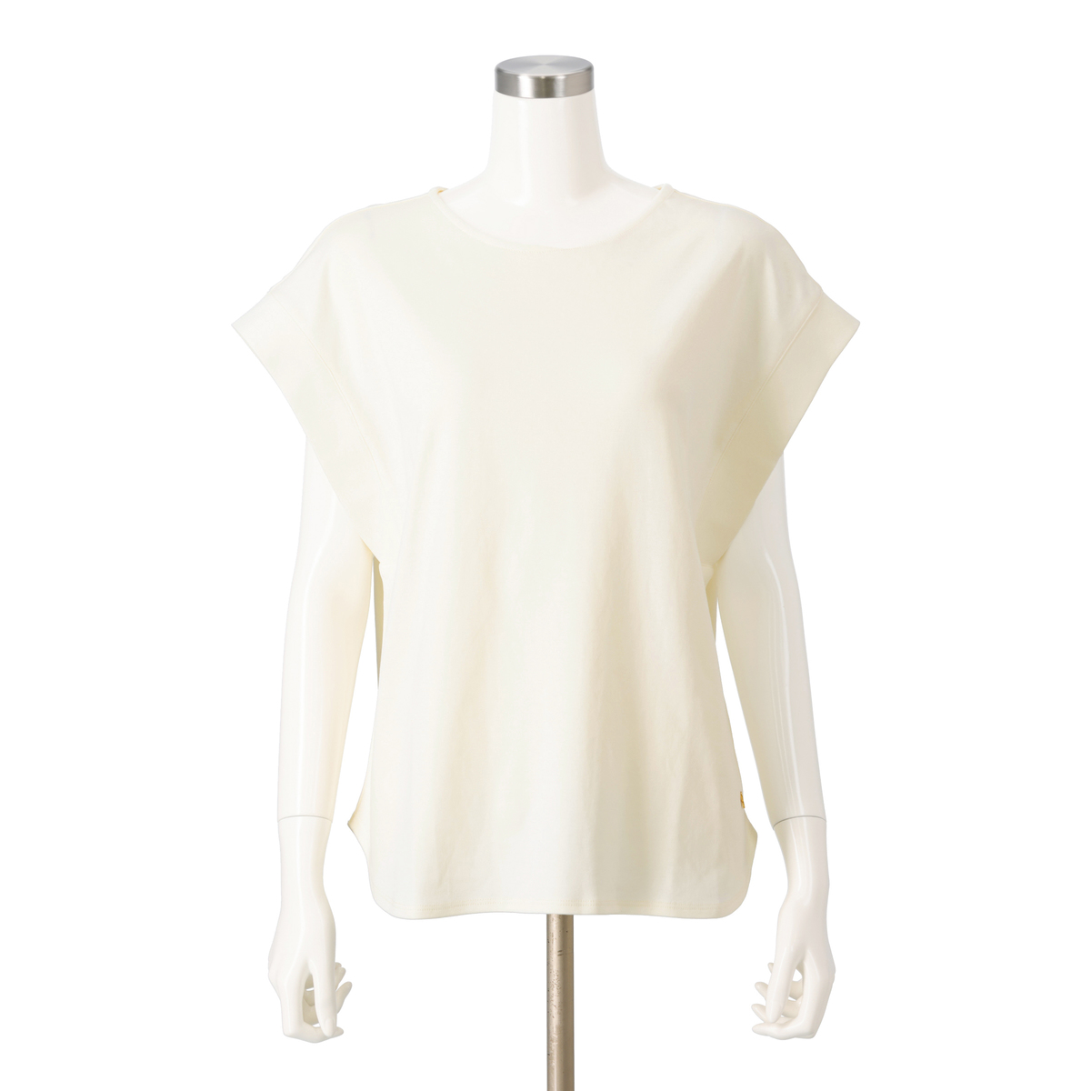 腕をすっきり見せてくれる袖口が特徴のTシャツ。後ろにヨーク切替を施し、後ろ姿も美しく。1枚で着てもおしゃれに決まるデザインです