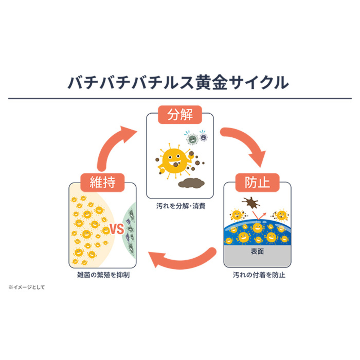 キッチン、お風呂、洗濯槽の排水トラップや排水管のイヤなニオイなど、水回りでお悩みのご家庭へ。バチルス菌が酵素活性により有機物、たんぱく質、デンプンなどを分解。生きた菌がバイオフィルムを除去し、イやなニオイもスッキリ。