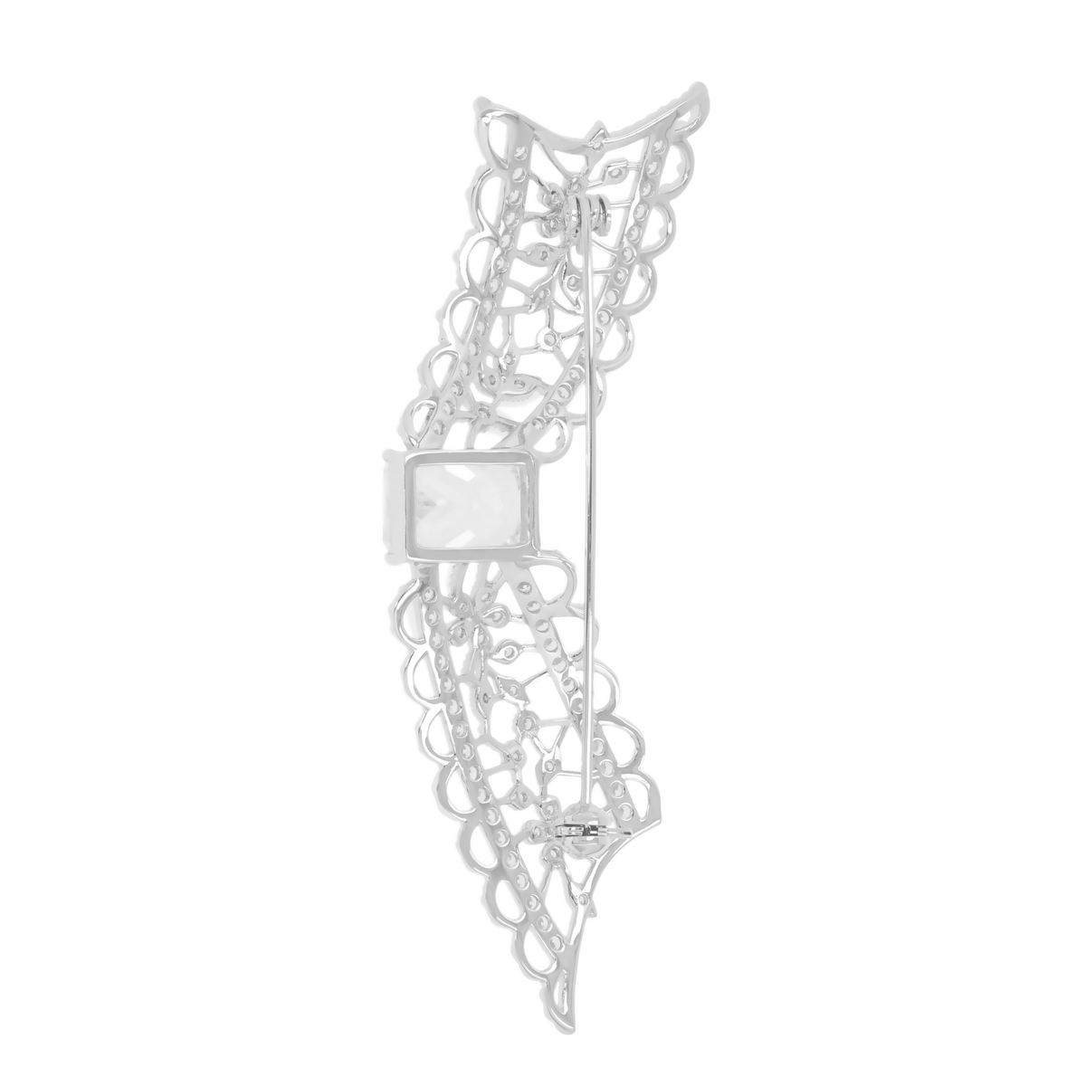 大粒のキュービックジルコニアがメインのレース調のブローチ。繊細なデザインながら、ゴージャスで存在感があり胸元を華やかに彩ります