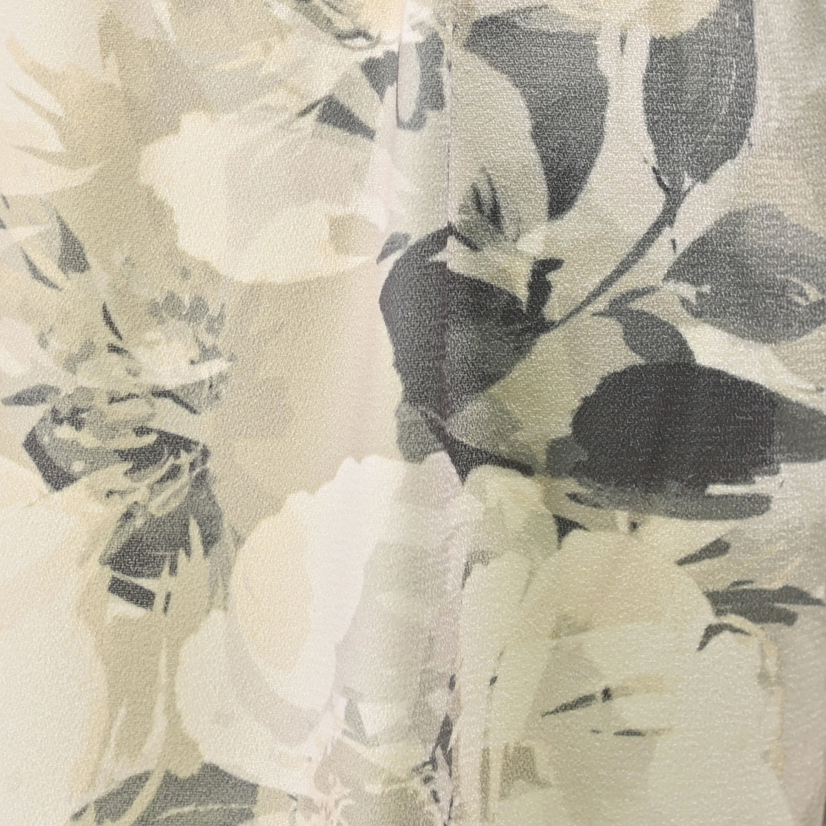 なめらかな肌触りと落ち感を生かしたストレートワイドシルエットのパンツです。足のラインを拾いにくく、分量感がありながら涼しげな着用感。厚めのジョーゼット素材を使用しているので、シワになりにくいのもポイントです