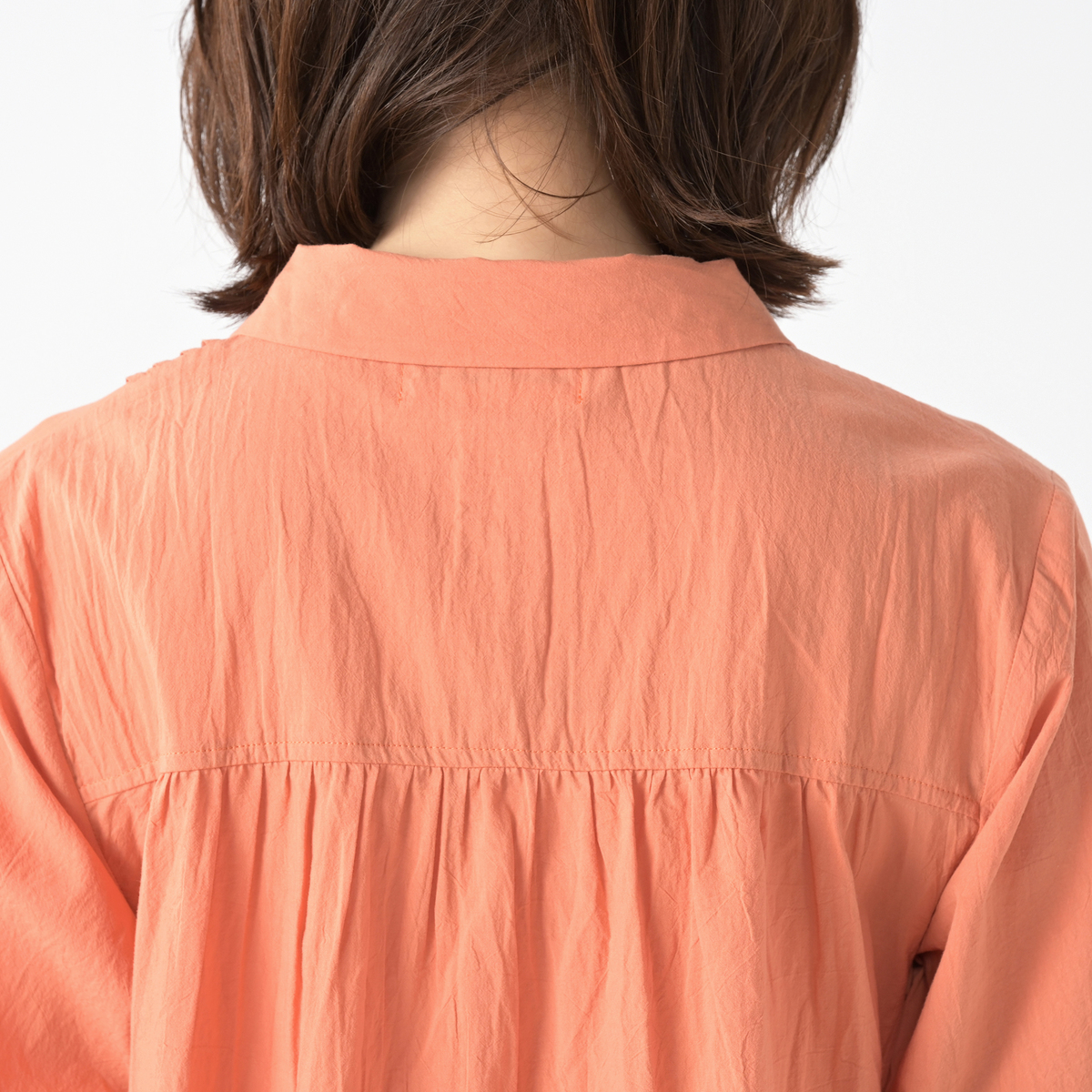 リラクシーでふんわりしながら、ほのかな甘さを添えたシルエット。長めの着丈が気になる腰周りをカバーします。涼し気で暑い季節も着回しでき、汚れが気になったらネットに入れて洗濯機洗いできる気軽さも魅力です