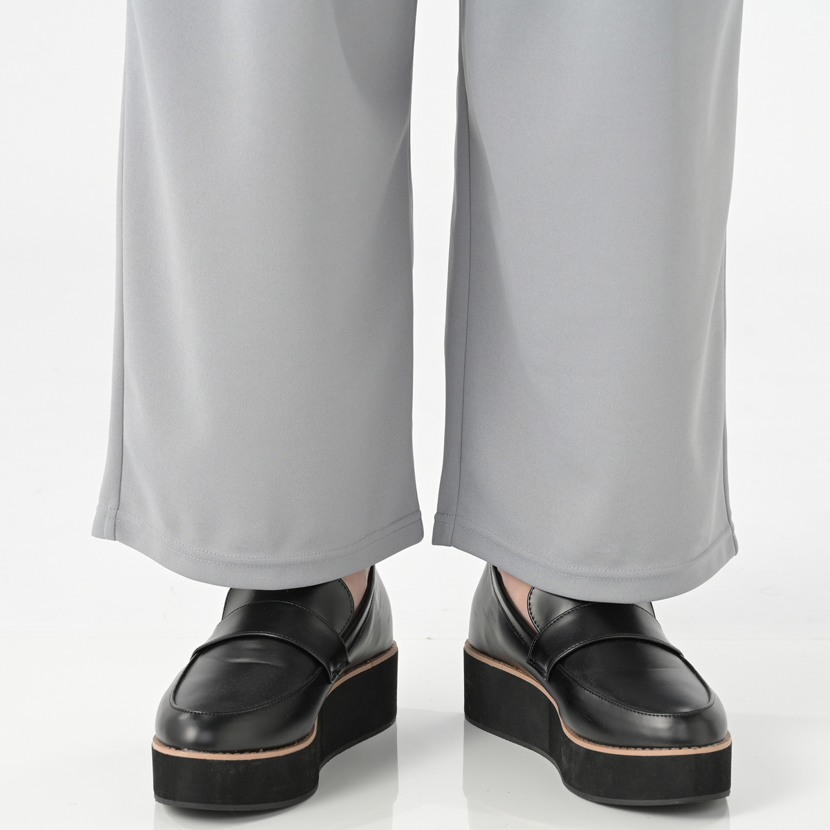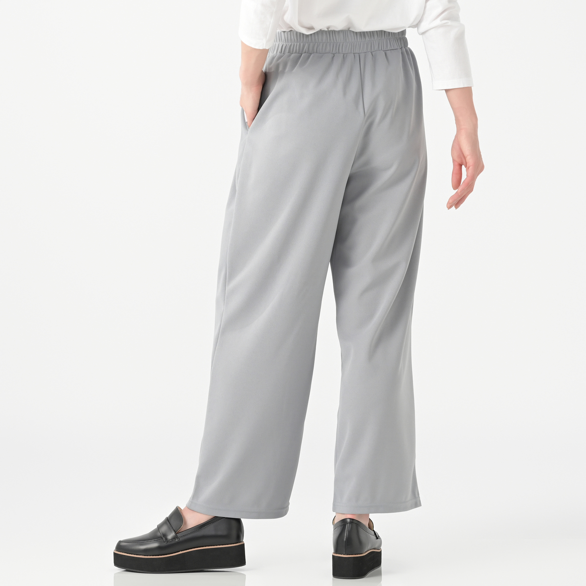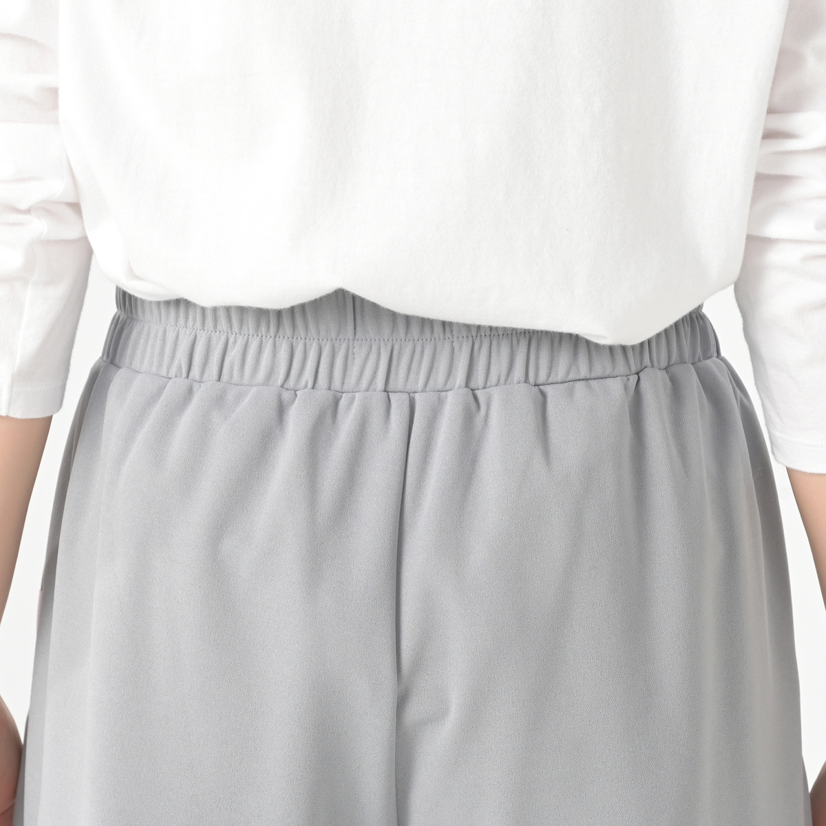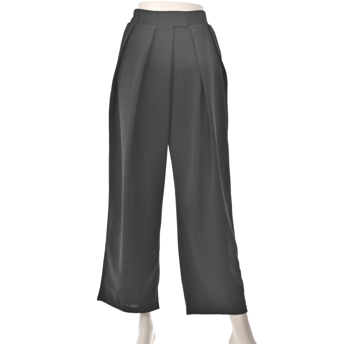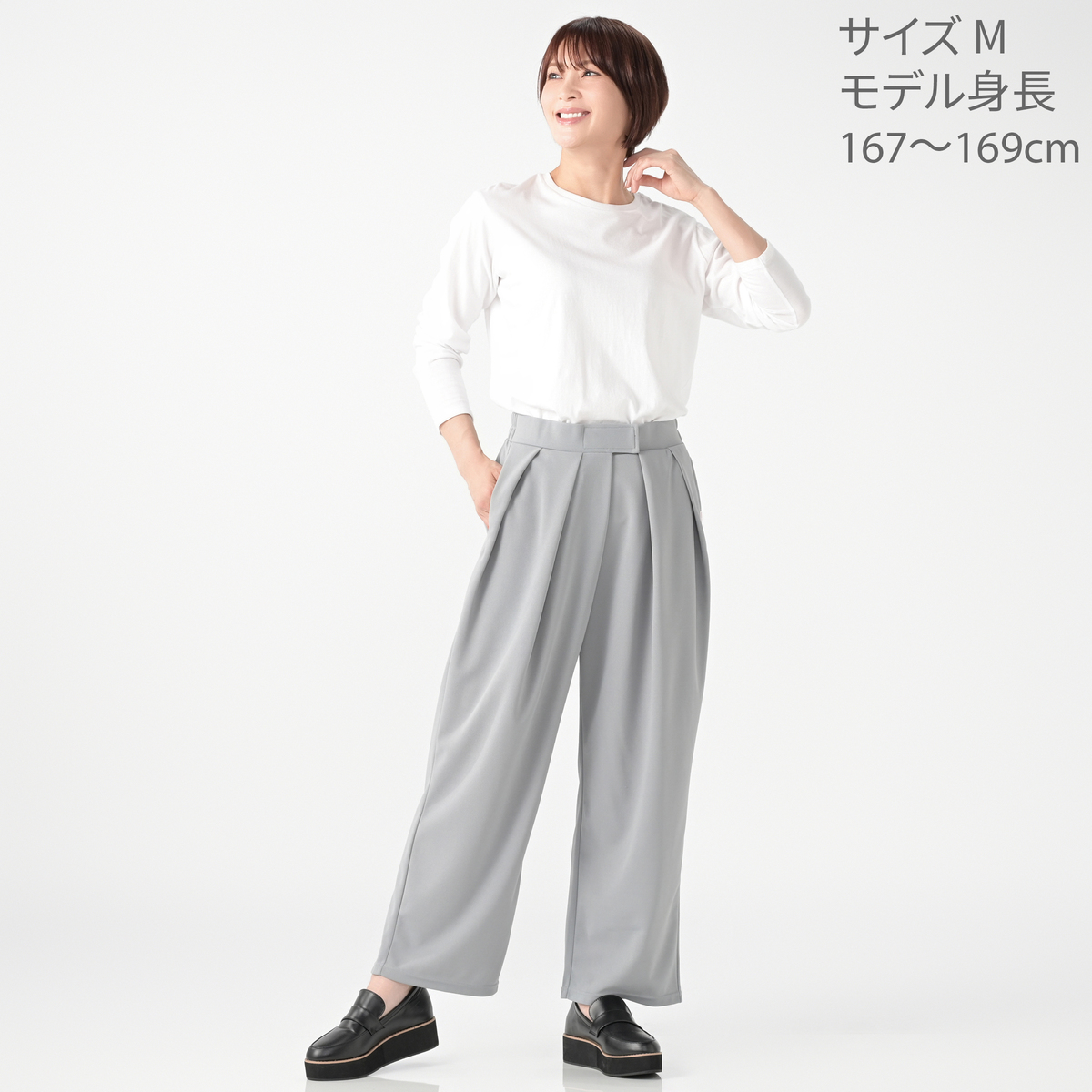 股上深めな安心感ある穿き心地で、身体のラインを拾いにくく、腰周りやヒップラインも目立ちにくくなる為、体型もカバーしてくれます。足元まで生地のゆる感が届き、きれいめなフラットシューズ等と合わせればエレガントの相乗効果に期待出来ます
