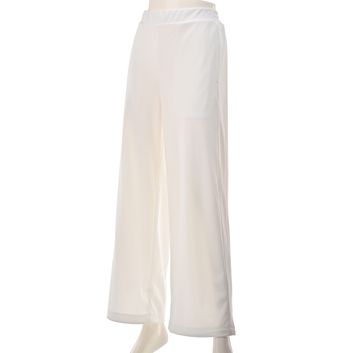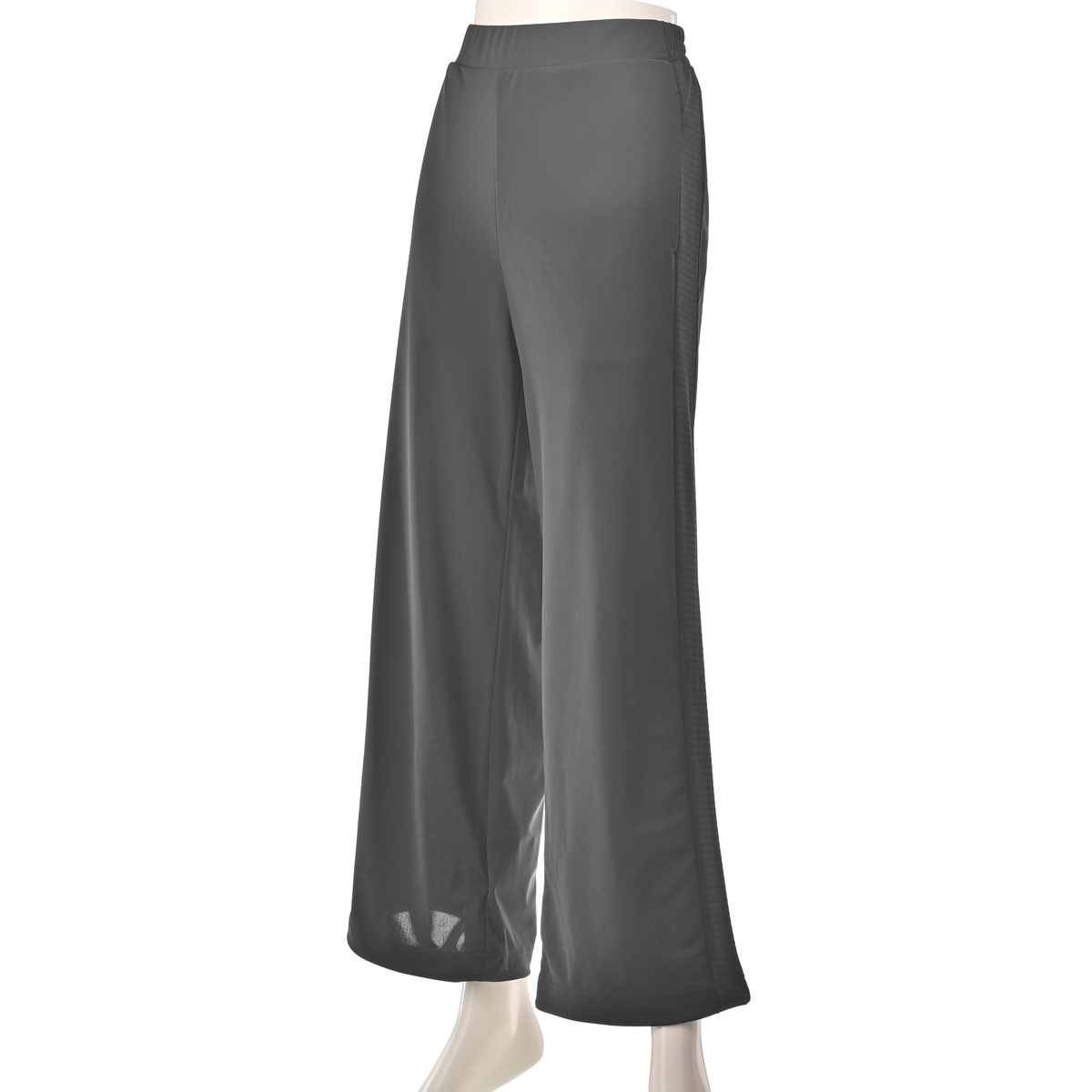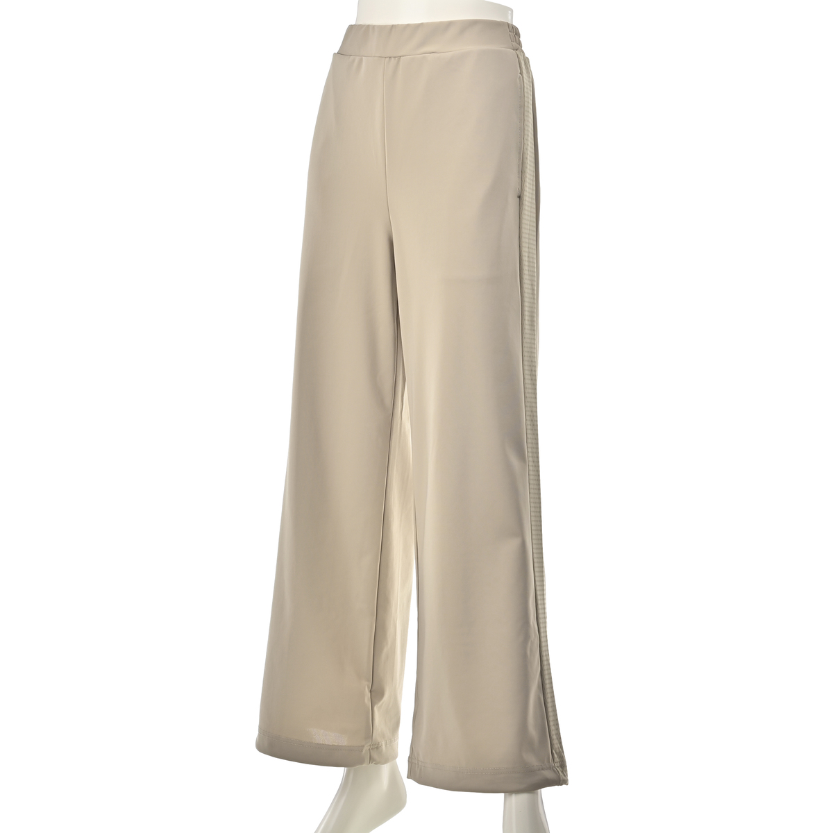 強撚スムース素材で仕立てたワイドパンツ。メッシュのサイドラインがポイントのシンプルなデザインです