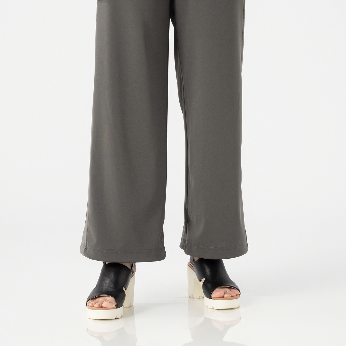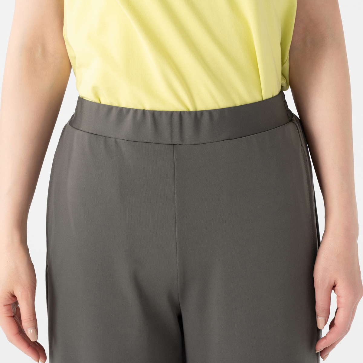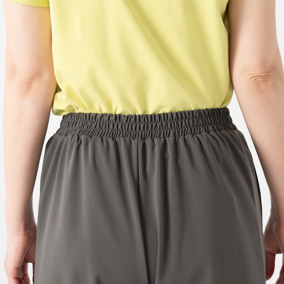 ★私が着ると厚底サンダル必須。足長効果は高いです。 ★裾のスピンドルを絞ればスニーカー合わせが可能になります。が、歩行すると余ったゴムが飛び出して来て危ない。 ★グラファイトグレーを購入。私の目には少しカーキ寄りのグレーに見えます。夏から秋にかけて重くなりすぎない無彩色なので便利かも。 ★日常着のつもりで購入したので、私の生活スタイルには合わないなと思いました。お返しします。