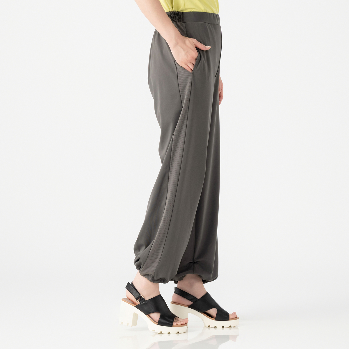 No. 742455 MASAGO 強撚スムースとメッシュ使いワイドパンツ