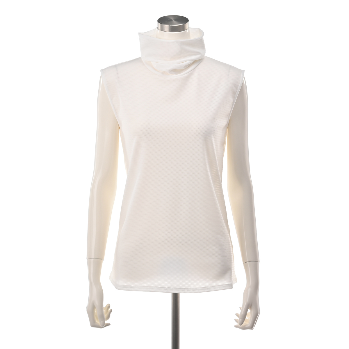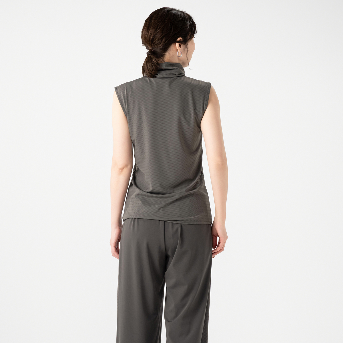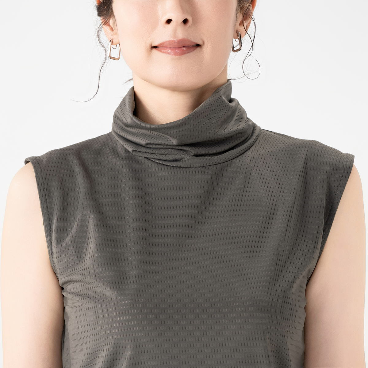 ノースリーブですっきりとした印象を与えながら、ハイネックでこなれ感もプラス。日常の様々なシーンで活躍します