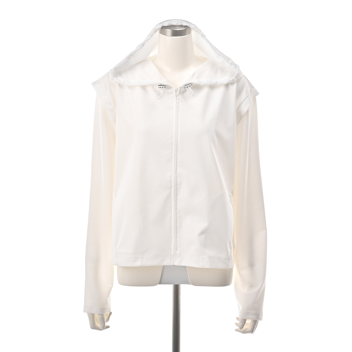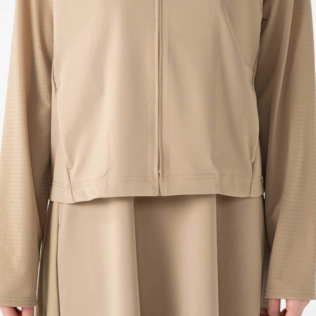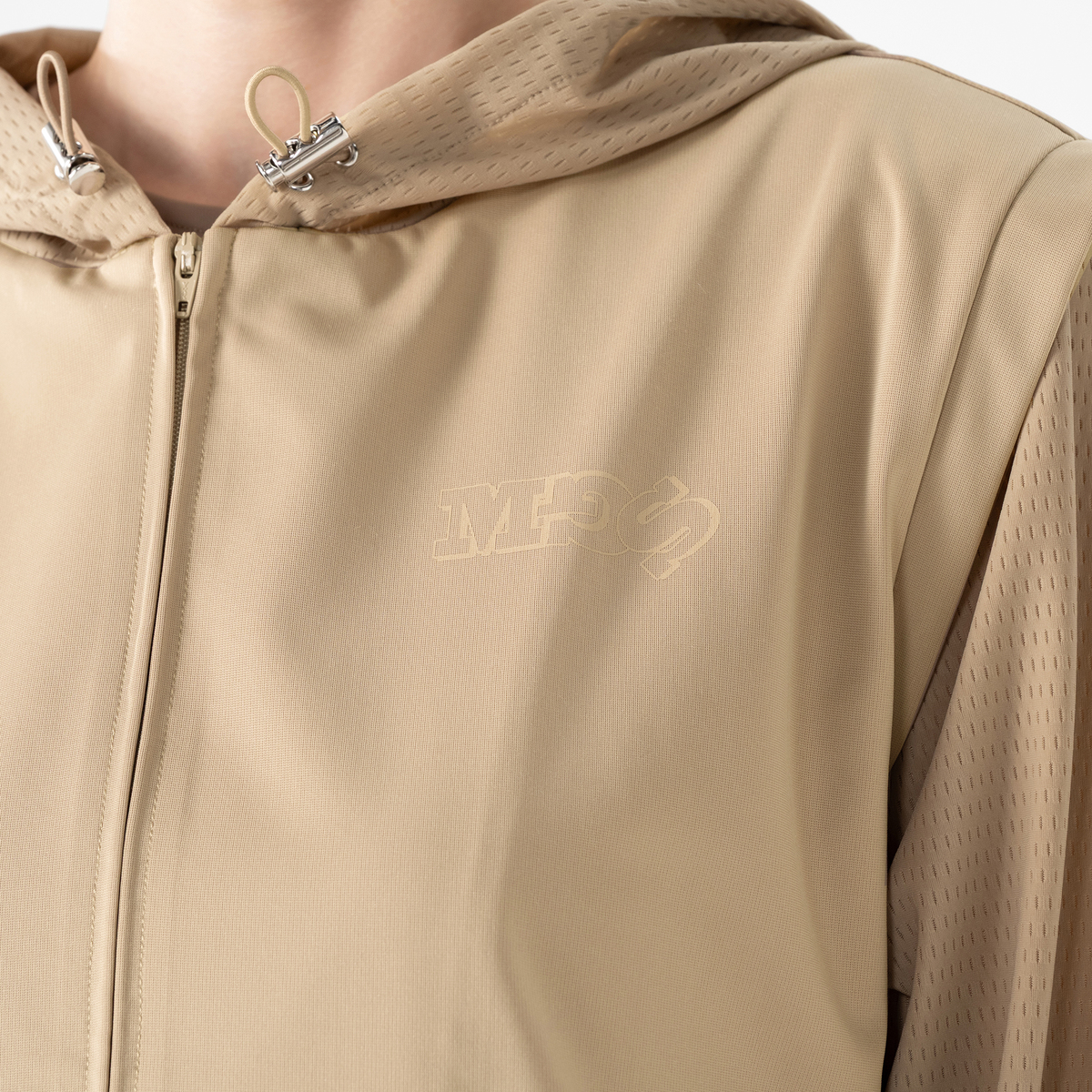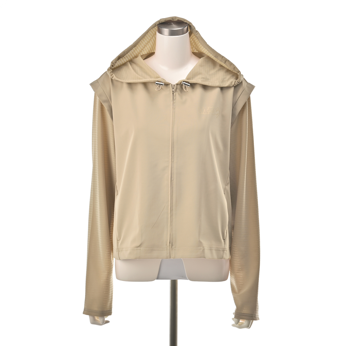 パンツとセットアップにするか悩みましたが購入。生地は申し分無しです。 肩山のタックは袖が取り外せるパーカーに見えて何だかなぁ。袖が長いのは承知ですがこのツルツルの上着で袖まくりができないデザインはストレスになりそうです。ジップは生地と同色ですがフードの金具とのバランスを考えるとチープな気がします。