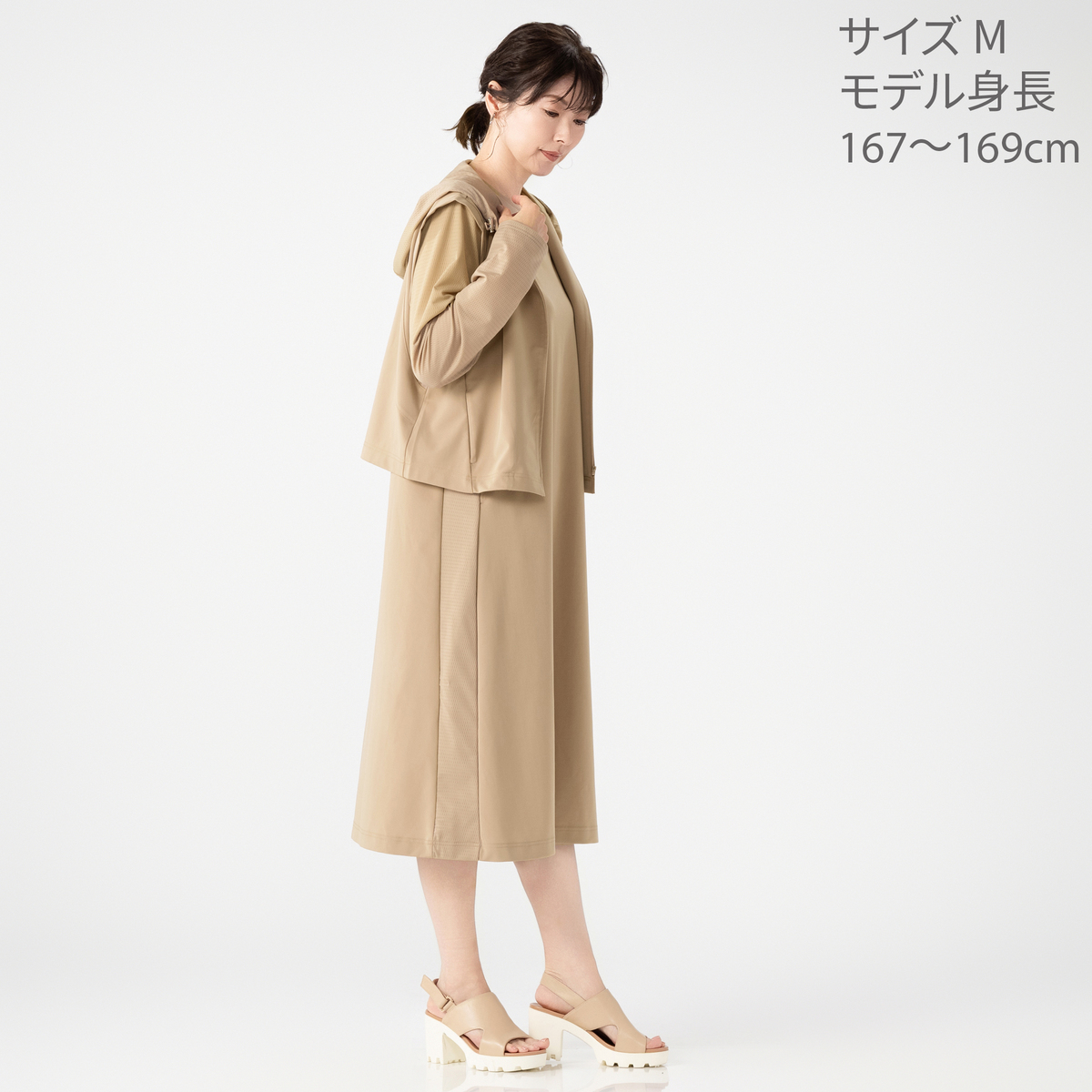 商品番号742455『MASAGO 強撚スムースとメッシュ使いワイドパンツ』とセットアップできるフード付きパーカーです。
