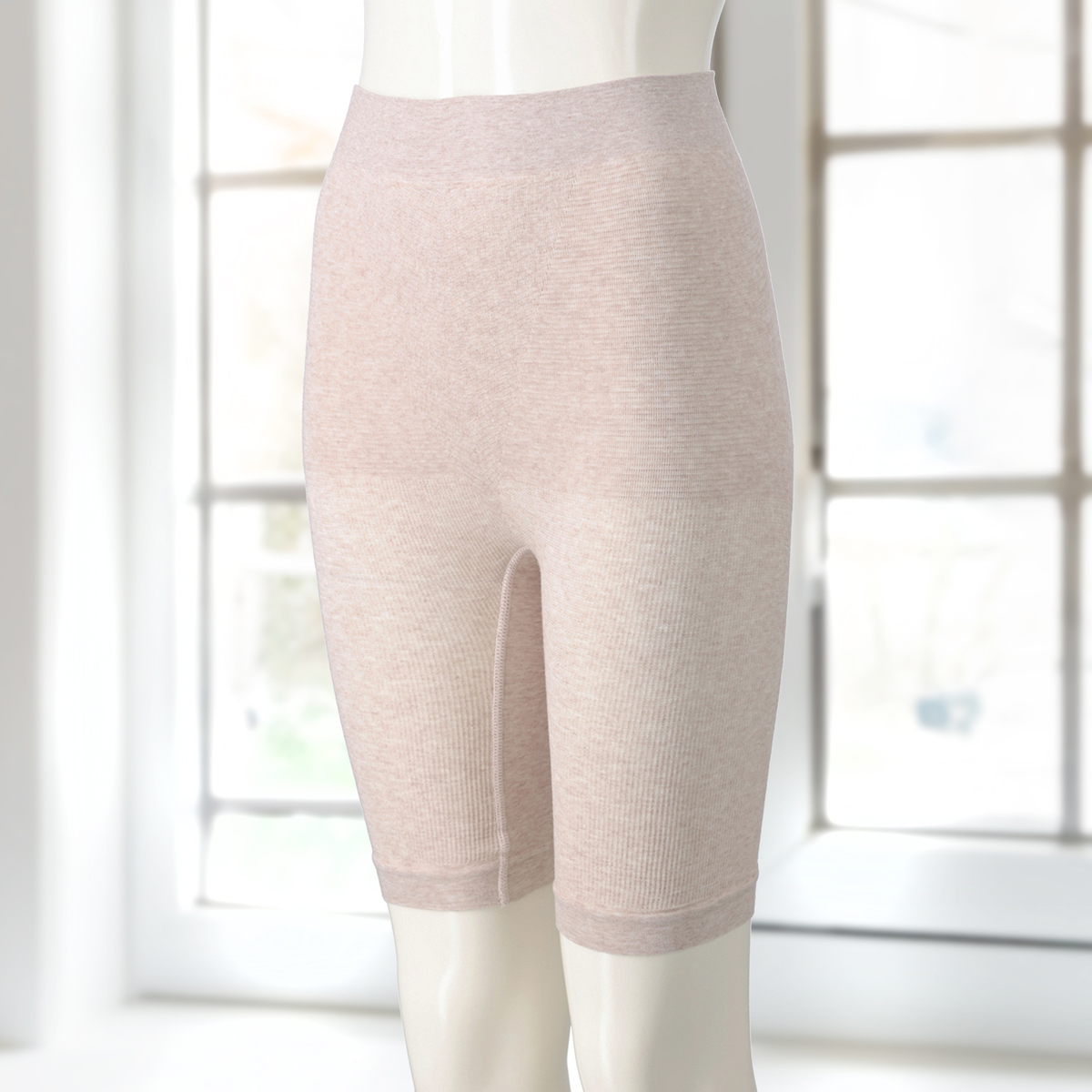 タテヨコ伸縮性に富んだ立体成型編みが体型に合わせるように心地よくフィットし、お肉を優しく包み込み下半身を整えます。マチ部分以外にハギや裏打ちが無く、胴周りは脇線もハギもなく360度シームレスで、肌当たりが快適です