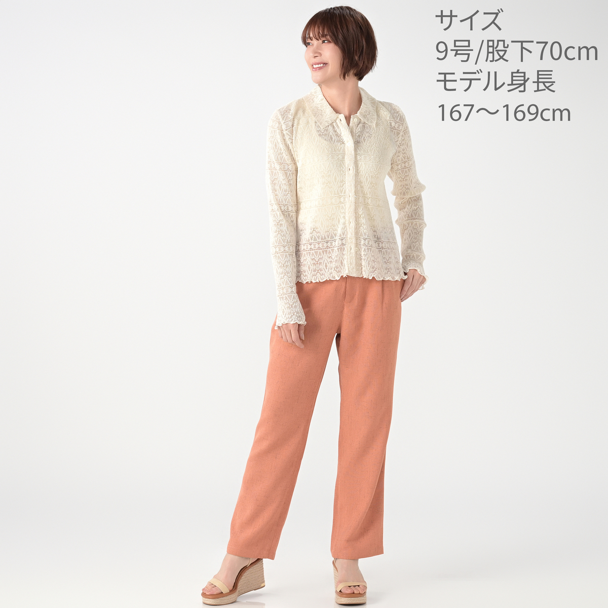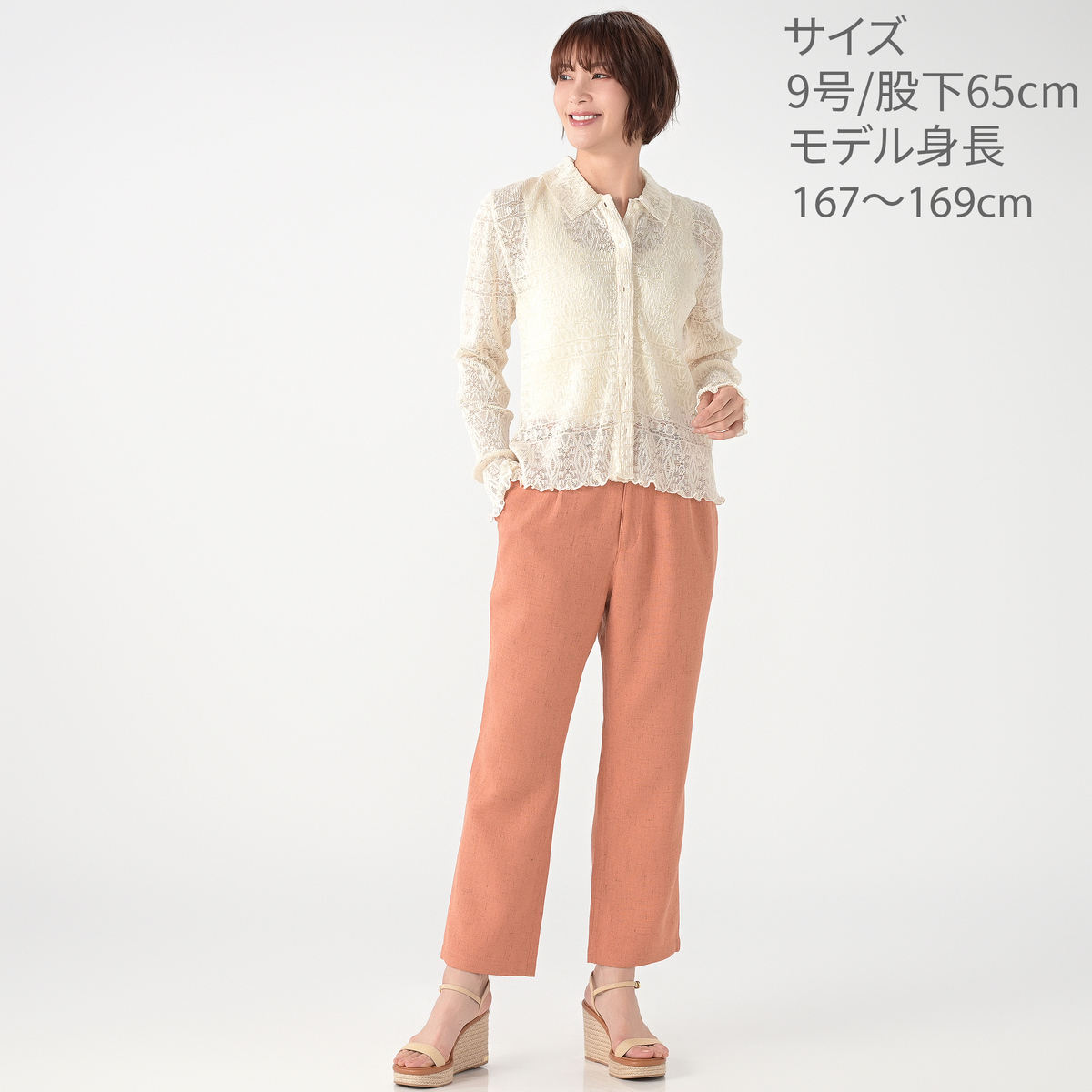 [商品寸法(ヌード)cm] サイズ ウエスト ヒップ 7号:66(61〜66)99(81〜87) 9号:70(65〜70)103(85〜91) 11号:75(70〜75)108(90〜96) 13号:81(76〜81)114(95〜101) 15号:87(82〜87)120(100〜106) 股下:65/70 <股下65cm> サイズ 前股ぐり わたり幅 7号: 31.5 31.5 9号: 32 32.5 11号: 32.5 33.5 13号: 33.5 35 15号: 34 36 <股下70cm> サイズ 前股ぐり わたり幅 7号: 32.5 31.5 9号: 33 32.5 11号: 33.5 33.5 13号: 34.5 35 15号: 35 36 [ウエストゴム] 後ろ全体に有 [素材] 本体:ポリエステル100% テープ部分:綿100% <オイスターベージュのみ> 裏地:ポリエステル100% [お手入れ] 洗濯機洗い可 [注意事項] ※商品寸法の誤差は多少発生します。ご了承下さい ※淡色製品には蛍光増白剤入り洗剤を使用しないで下さい ※洗濯後はすぐに脱水し、形を整えて干して下さい。長時間、水につけたままにしないで下さい ※濃色製品は着用中の摩擦により色移りすることがあります。また、雨や汗等で濡れた状態で着用すると色移りすることがあります。その際はお早めに洗濯をして下さい ※プリント部分を擦ったり、揉んだりしないで下さい ※プリントは強く力を加えたり、洗濯すると脱落することがあります ※アイロン時にはあて布を使用して下さい ※洗濯ネットを必ず使用して下さい ※洗濯の際、色落ちすることがありますので、他の物と分けて洗って下さい ※この製品は、光により退色しやすいので太陽光や蛍光灯等が長時間当たる所で保管しないで下さい ※着用時にベルトやバッグ、周囲の壁など、表面の粗いものとの摩擦や引っかかりに注意して下さい ※この製品のプリントは永久的なものではありません。着用や洗濯により、脱落しやすくなります ※素材の特性上、過度な力が加わると縫い目が開いたり、生地が破れる場合がございます。お取り扱いには十分ご注意下さい 【中国製】